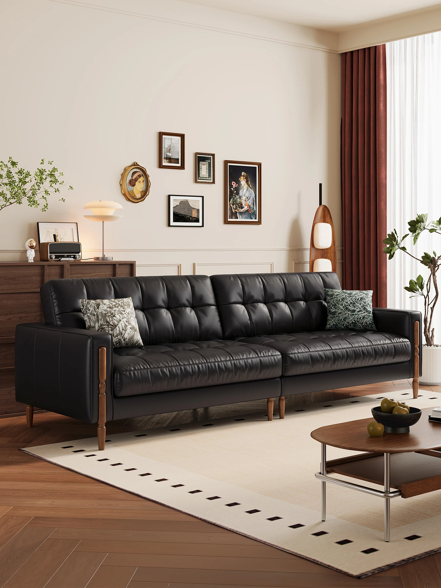 2024年新款!フレンチヴィンテージスタイルのブラックソファー - 本革製、モダンシンプルなデザインで、リビングルームにぴったり。洗練された雰囲気で、贅沢なひとときをお楽しみください!