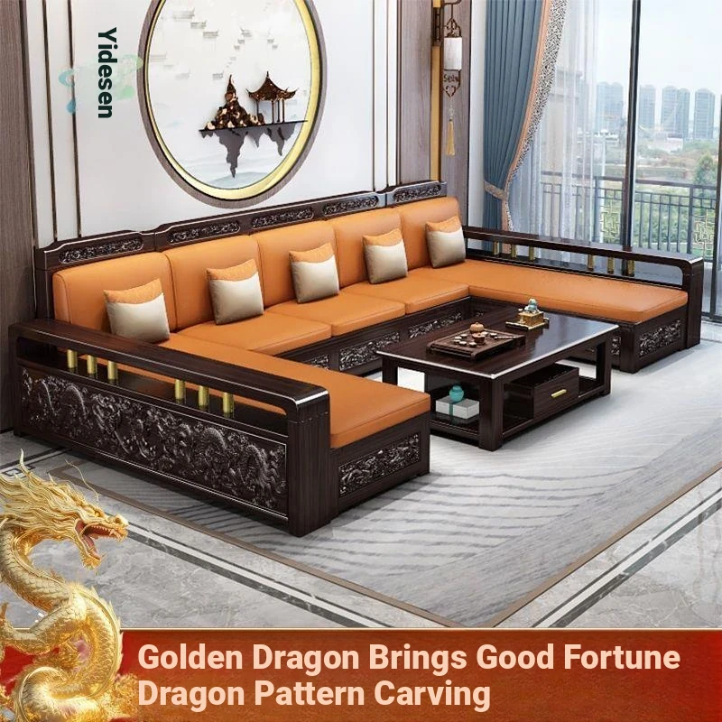新中式デザインの北米産ブラックウォールナットソファセット - モダンでシンプルな高級感溢れるリビングルームのための無垢材ソファ、ヴィラにぴったりな家具です。