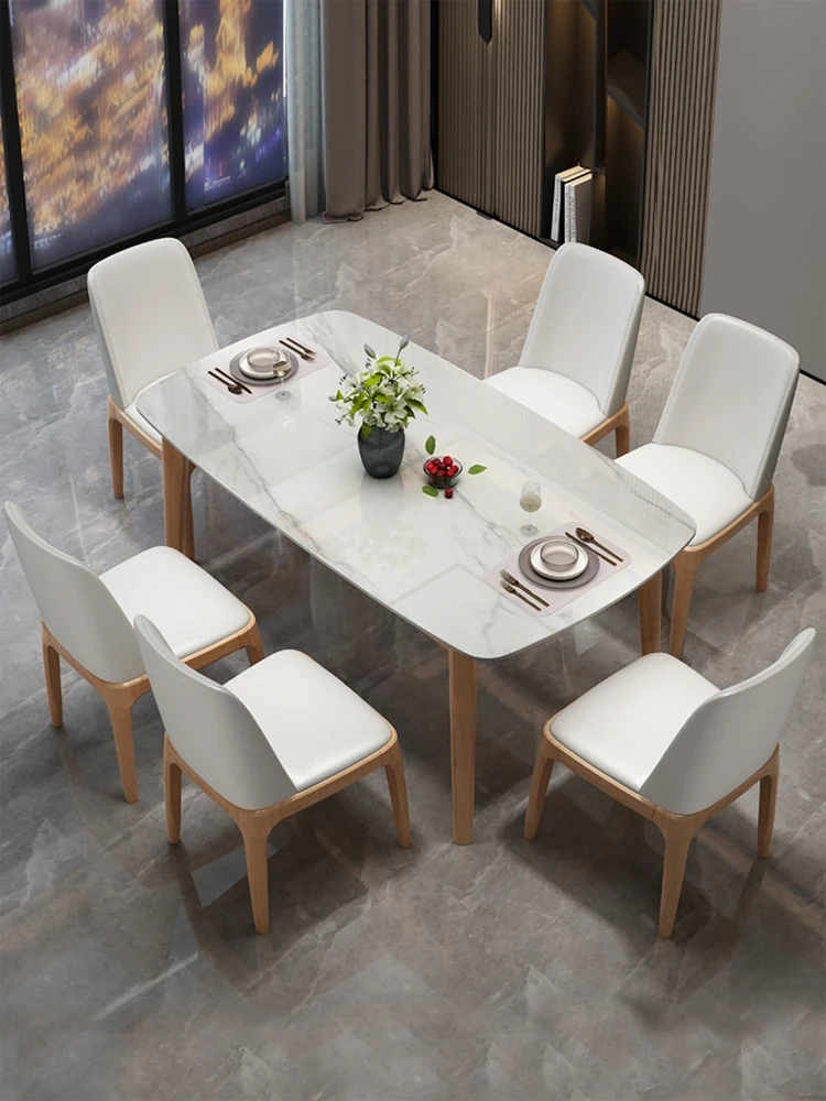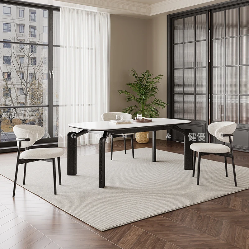現代的ミニマリストデザイン!ホワイトアッシュ無垢材使用の全托岩板小飛象ダイニングテーブルとコンパクトなチェアセット - 小さな家に最適なスタイリッシュな食卓を演出!