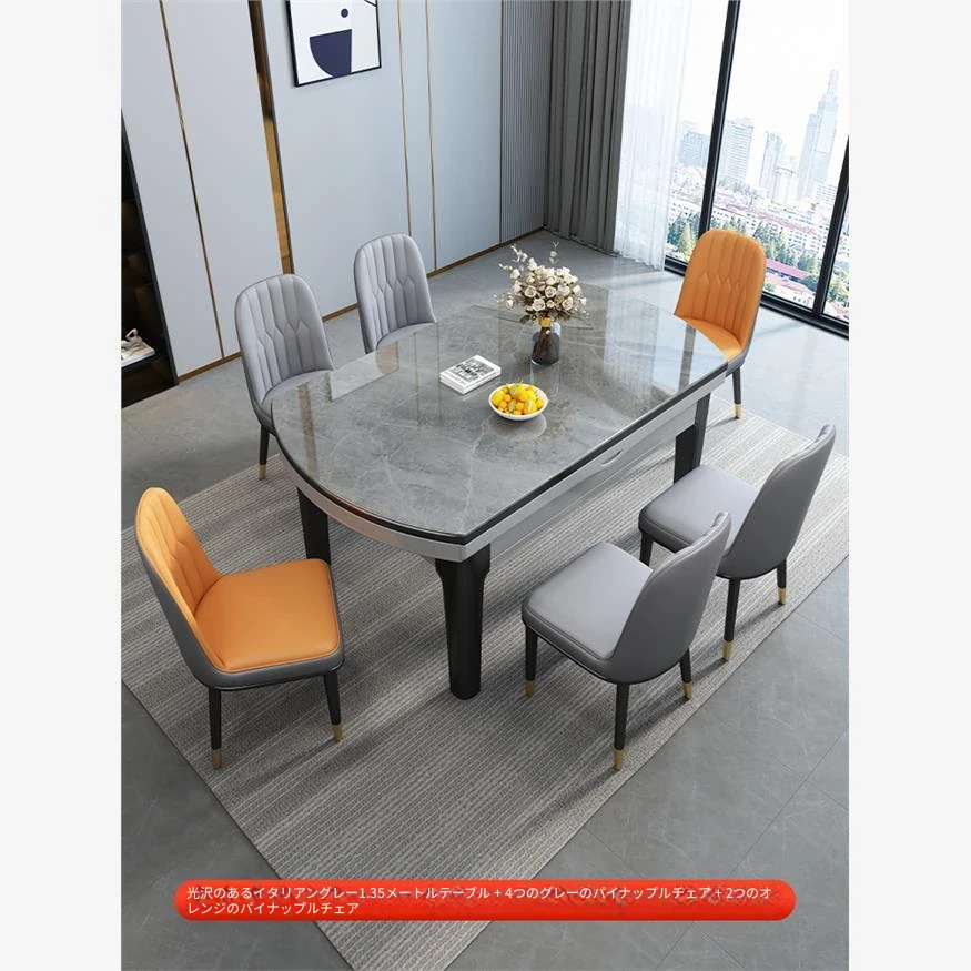 イタリア製のラグジュアリーな大理石ダイニングテーブル&チェアセット!モダンでシンプルなデザインの長方形天然木テーブル、家庭での特別なひとときを演出します。おしゃれな食卓をぜひご体験ください!