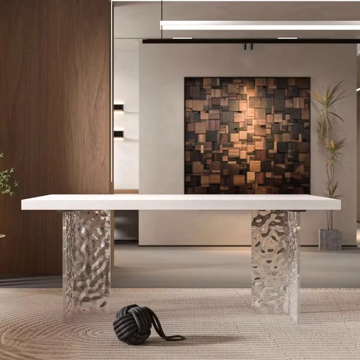 健優美の下掛け岩板水波紋アクリルダイニングテーブルと実木全托底板の小型家庭用ダイニングチェアセット!スタイリッシュで空間を有効活用し、心地よい食事のひとときを提供します。