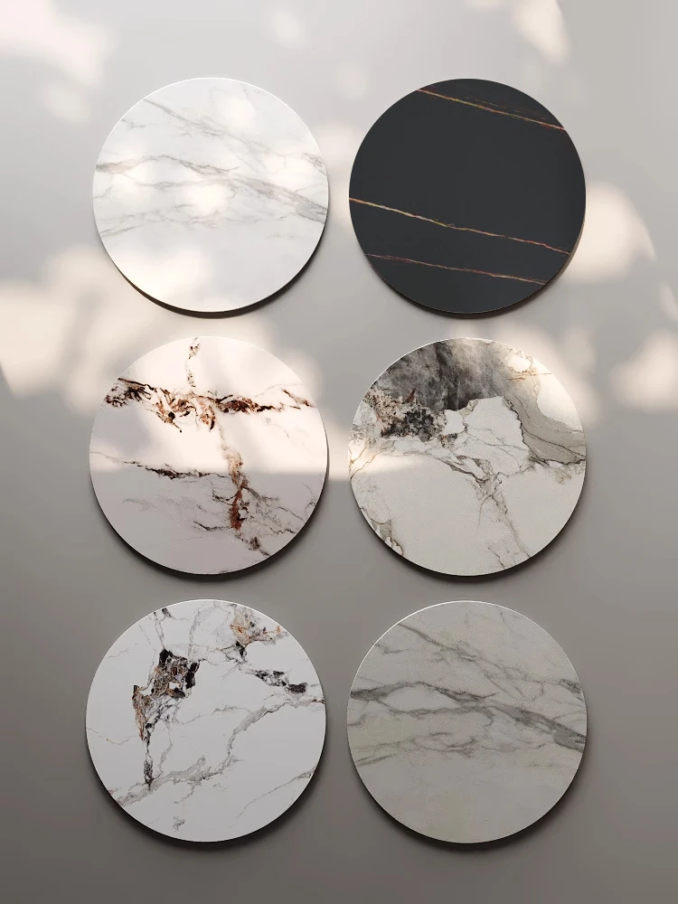 イタリアンスタイルの岩板ダイニングテーブル、ラグジュアリーでモダンなデザイン。コンパクトな小型住宅に最適!電磁調理器内蔵、便利な回転トレイ付きの多機能円形テーブル。おしゃれで使いやすい一品です!