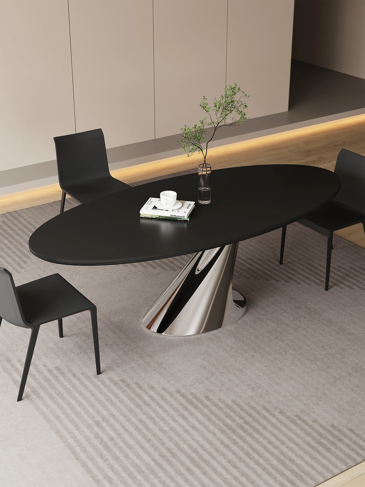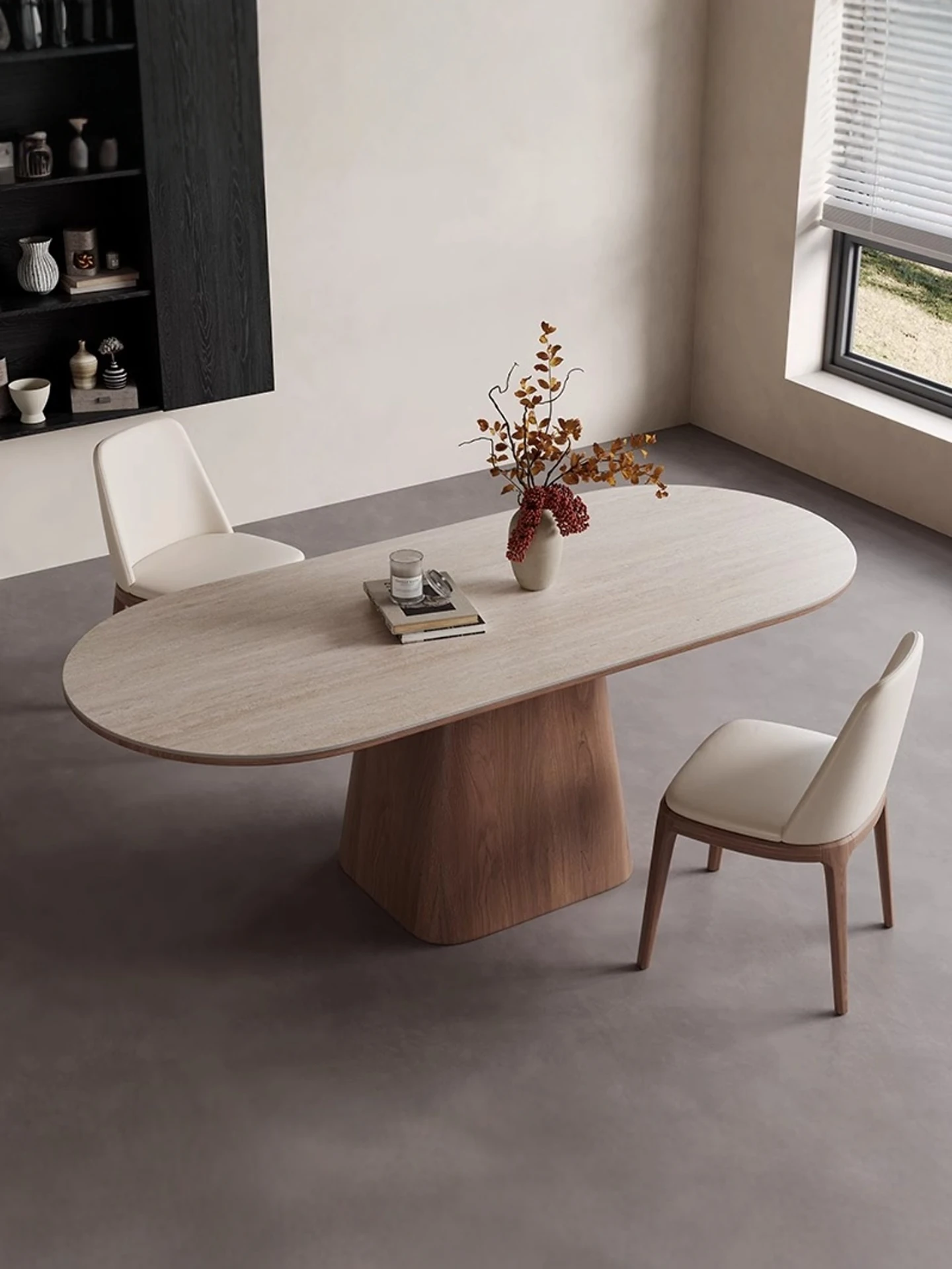 スワン イタリアンミニマリスト ストーンテーブル&チェアセット 家庭用エレガントオーバル型レトロヴィンテージダイニングテーブル