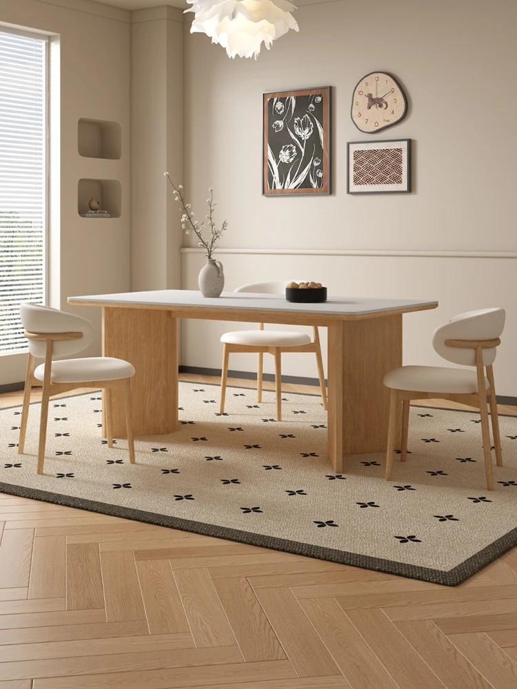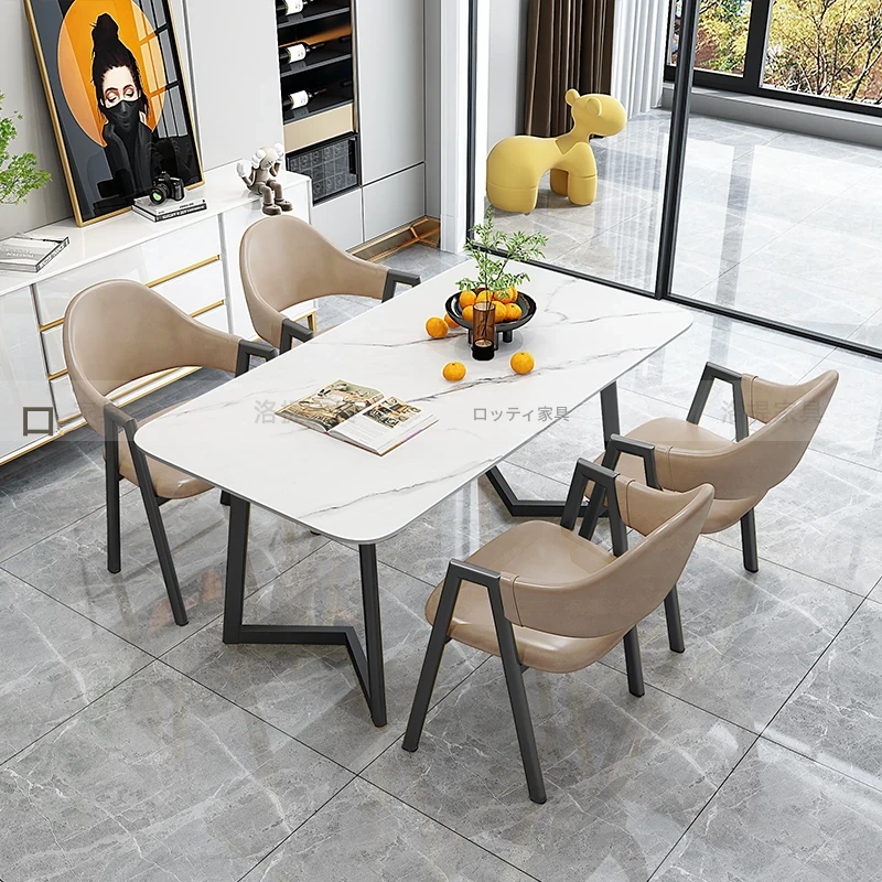 北欧スタイルの軽奢岩板ダイニングテーブル&チェアセット - 小型住宅に最適な正方形・丸型・楕円形の高級天然木製ダイニングテーブル!あなたの食卓を美しく演出します。