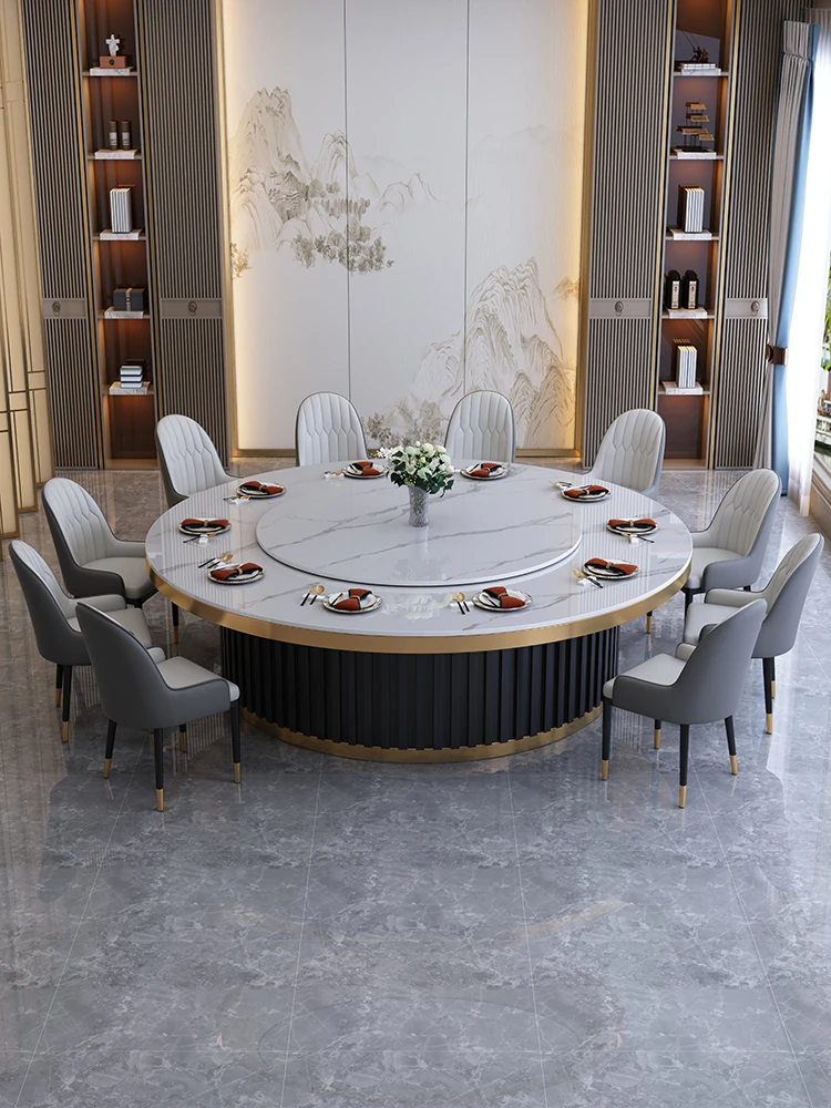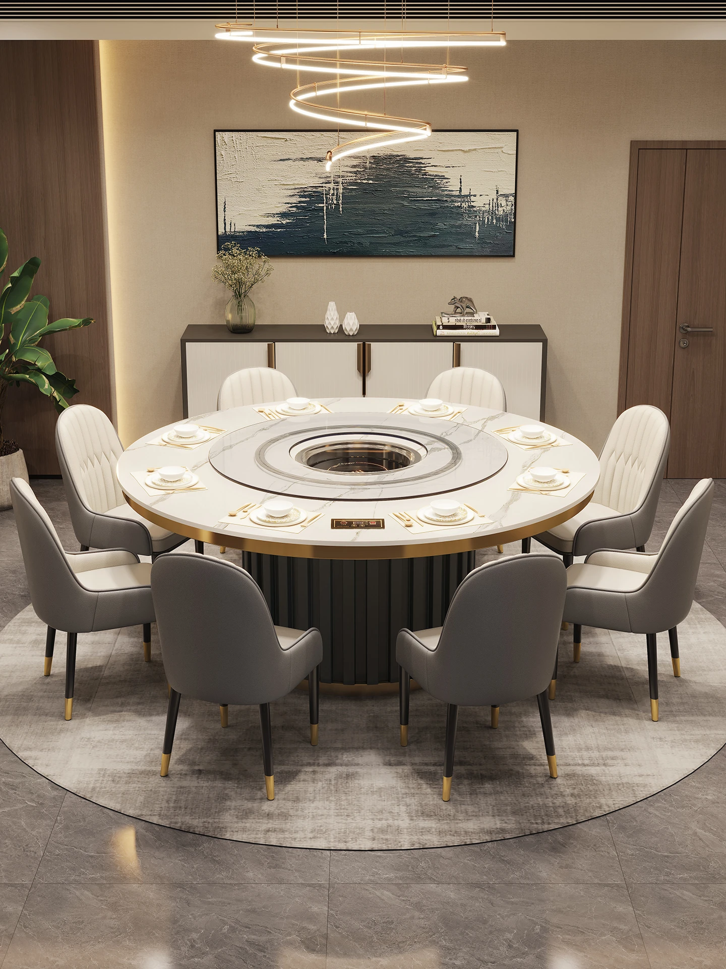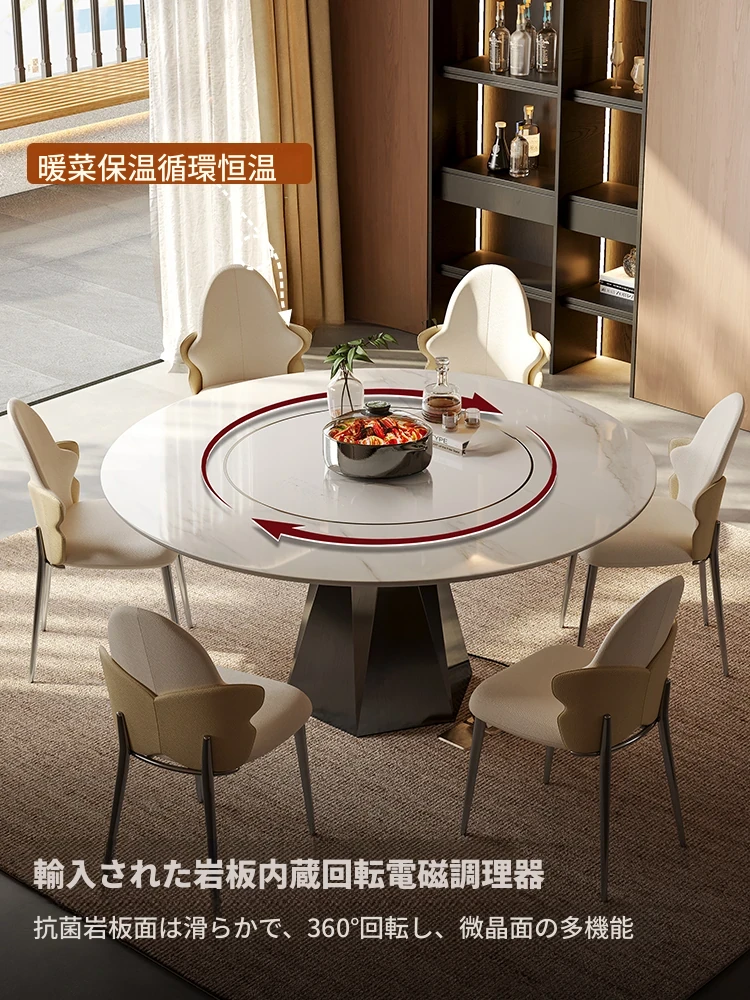 軽奢感漂う電動大丸テーブル|家庭用・ホテル用・別荘に最適!電磁炉付き回転式火鍋テーブルで、特別な食事体験をお楽しみください!