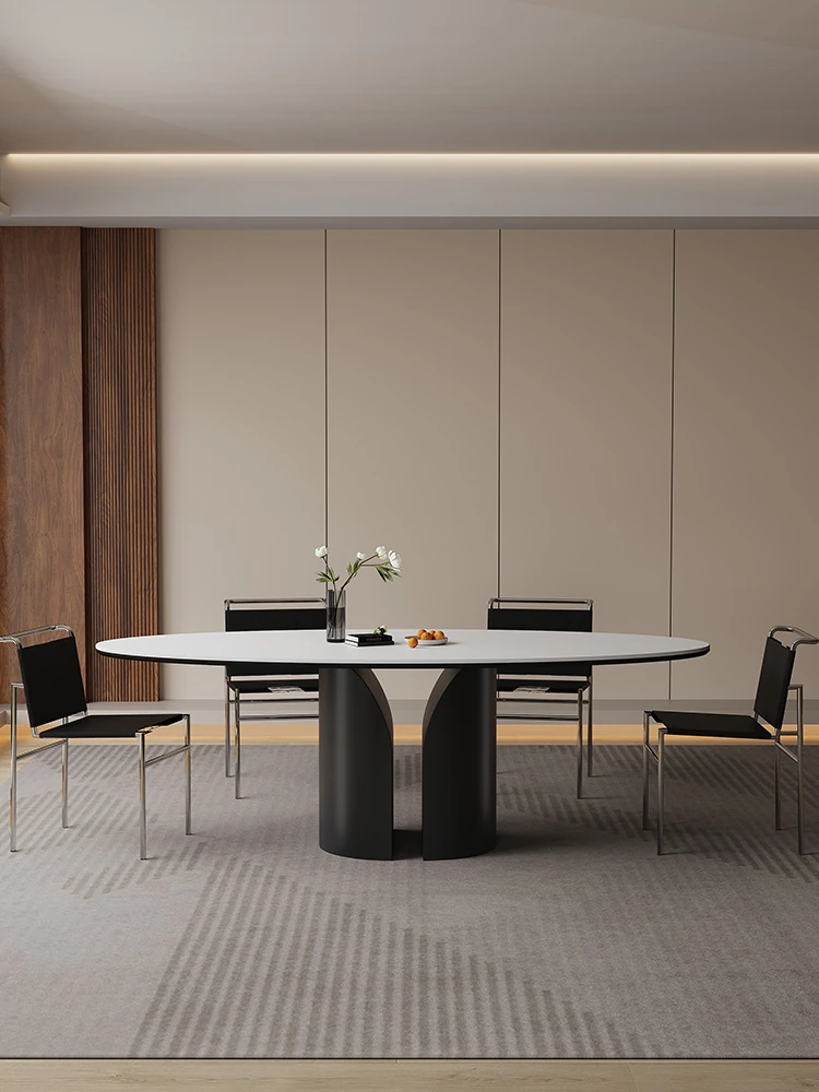 イタリアンミニマルデザインの楕円形ダイニングテーブル&チェアセット - 家庭用小型スペースに最適な高級感あふれるレトロモダンスタイルの食卓。