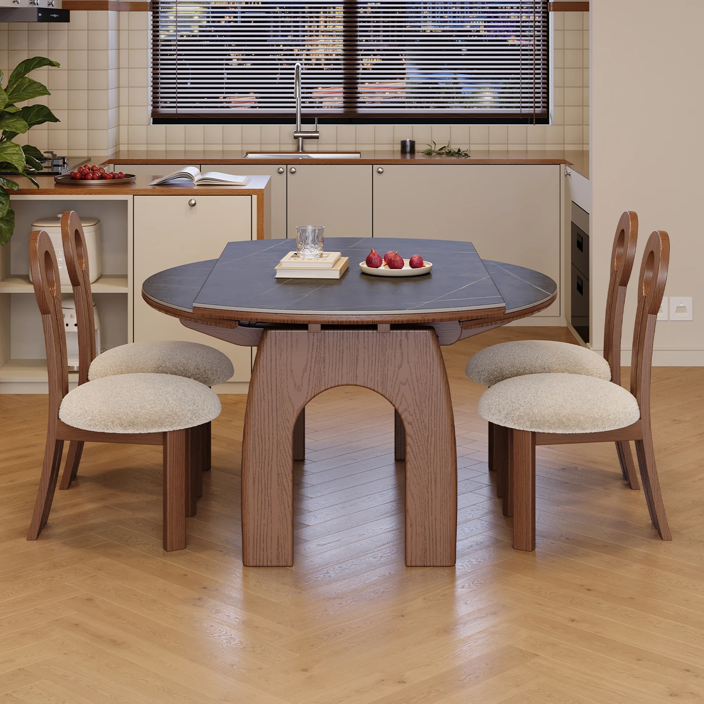 アンティーク風の伸縮式岩板ダイニングテーブルセット - 小スペースに最適!丸型・四角型両用、折りたたみ可能で、リビングでの食事にぴったり!