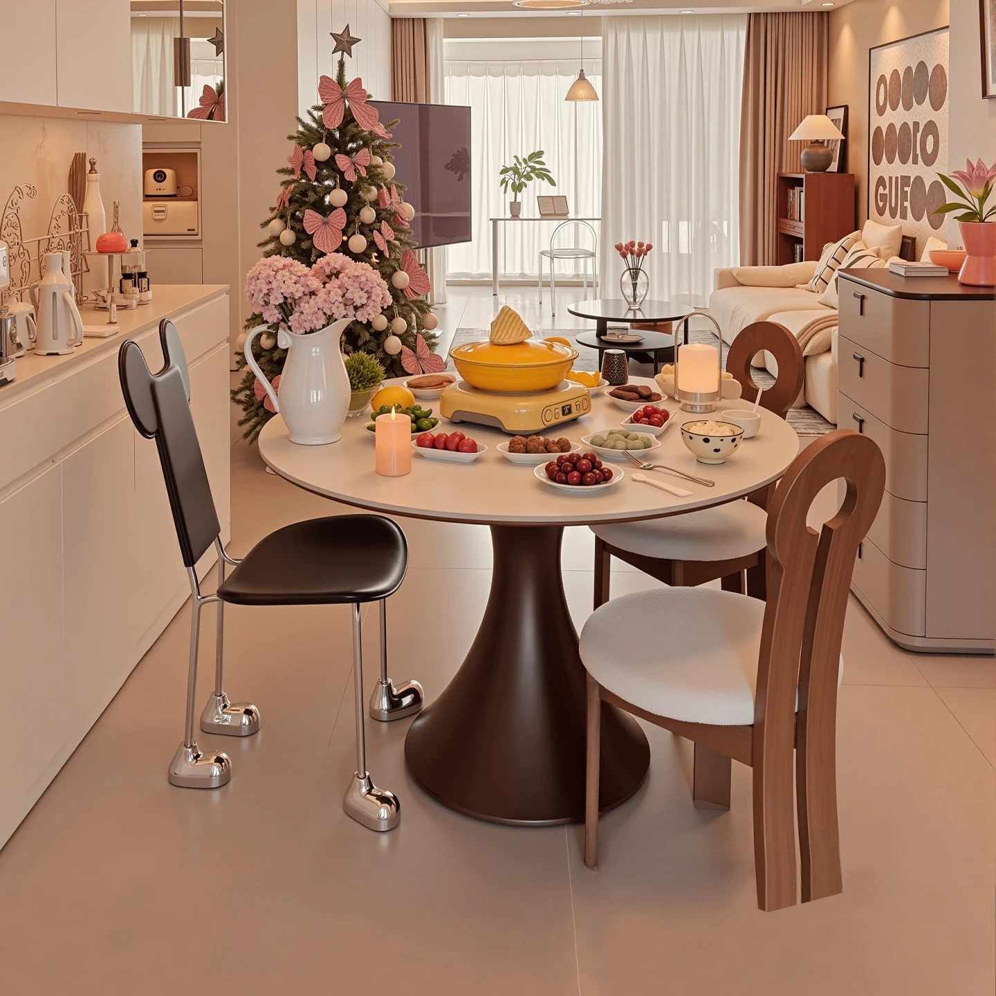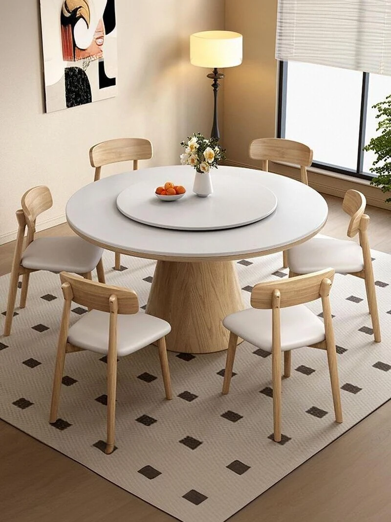 高級岩板ダイニングテーブルセット - シンプルでラグジュアリーな実木製の大丸テーブル、コンパクトな小型住宅に最適、内蔵暖かい料理用ボード付きの機能的な食卓。