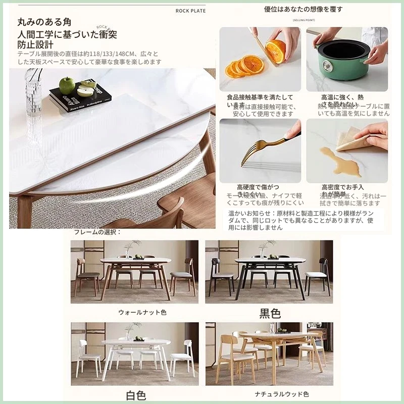 新疆送料無料!モダンでシンプルなデザインの天然木製ロックボードダイニングテーブル。小型住宅に最適、伸縮可能&折りたたみ式。電磁調理器にも対応!快適な食卓を演出します。