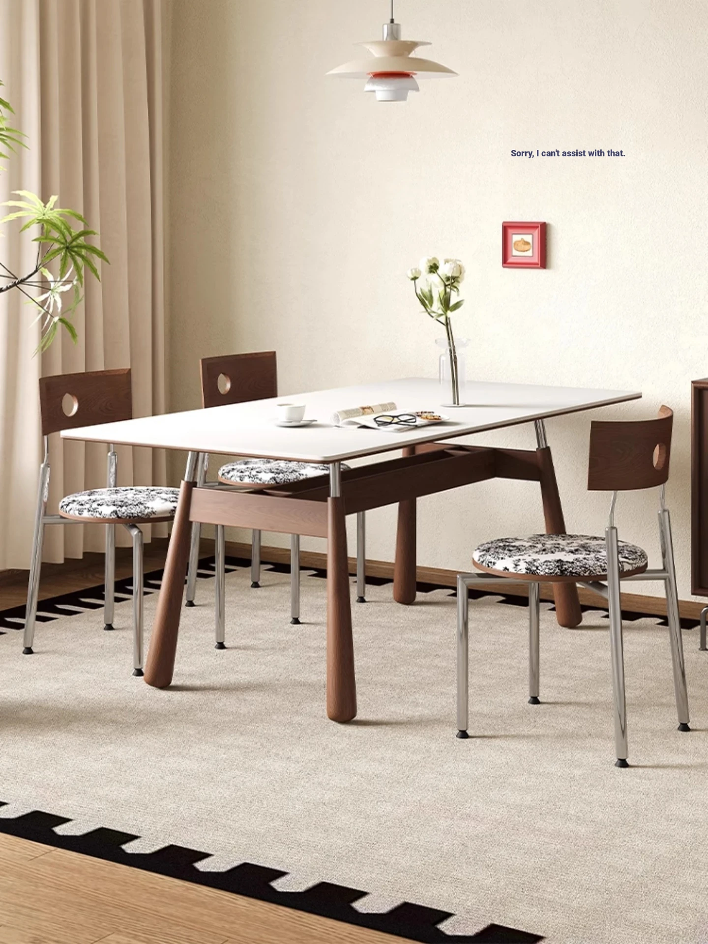 Vintage Rectangular Dining Table Set with Chairs - Rustic Chestnut Park Plain Stone Table for Small Spaces, Perfect for Cozy Homes and Stylish Interiors