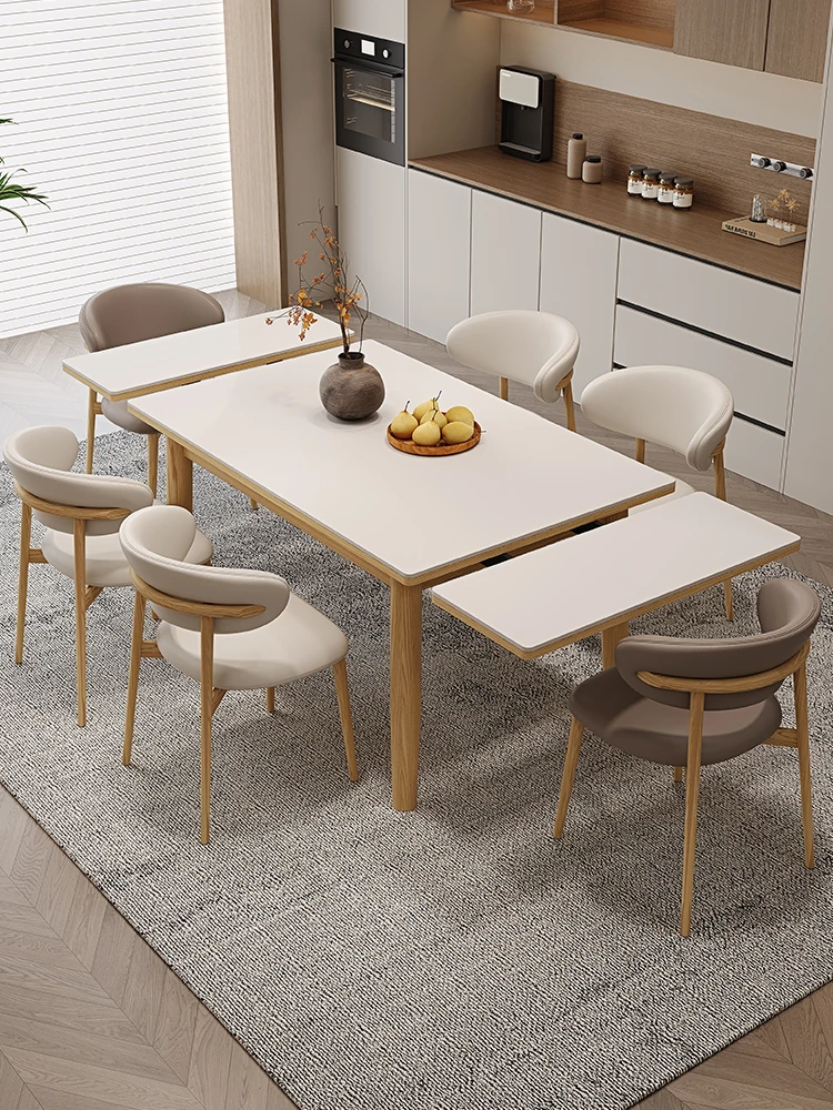 Free Shipping on Xinjiang Solid Wood Rock Plate Dining Table and Chair Set - Modern Minimalist Folding and Extensible Dining Table for Small Spaces, Perfect for Luxurious Home Dining Experience!