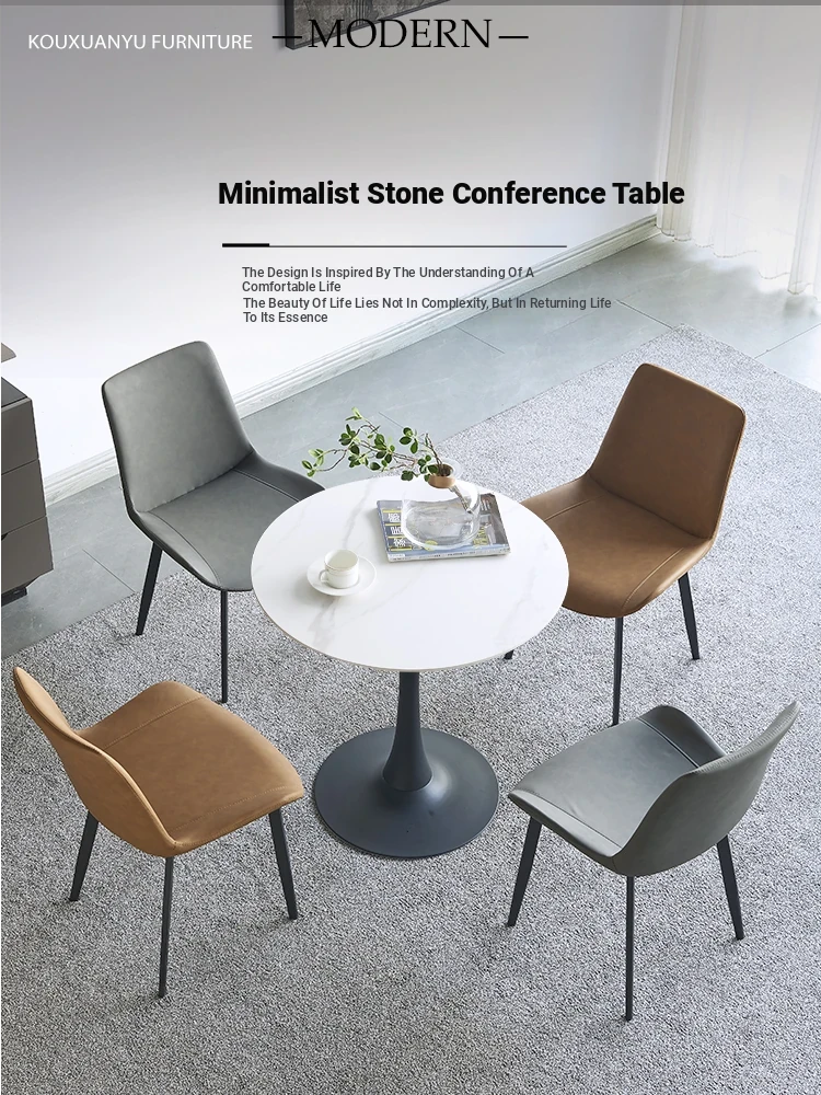 Elegant Round Dining Table and Chair Set with Stone Surface - Perfect for Reception Areas, Balconies, and Coffee Shops. Ideal for a Touch of Luxury in Casual Spaces!