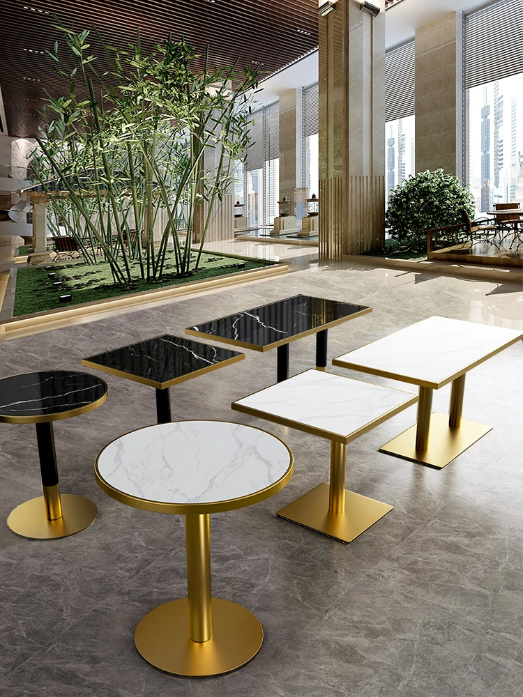 Commercial Marble-Look Stainless Steel Dining Table Set - Square & Round Tables for Restaurants, Cafés, and Hotels - Perfect for Meetings and Dining Experiences