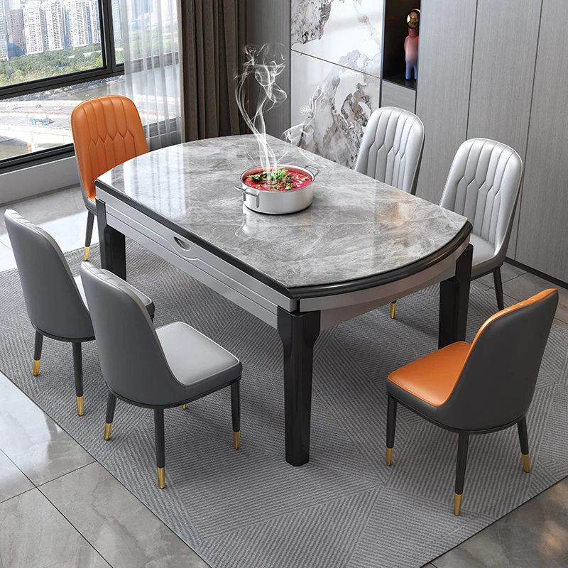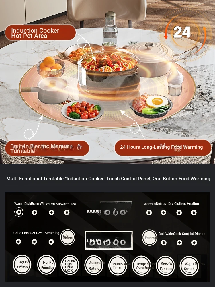 Stylish Round Dining Table Set with Electric Rotating Induction Cooktop – Modern Minimalist Design for Warm Meals and Entertaining