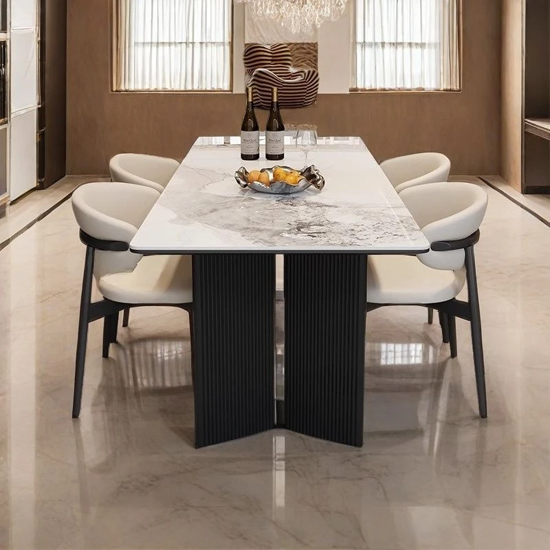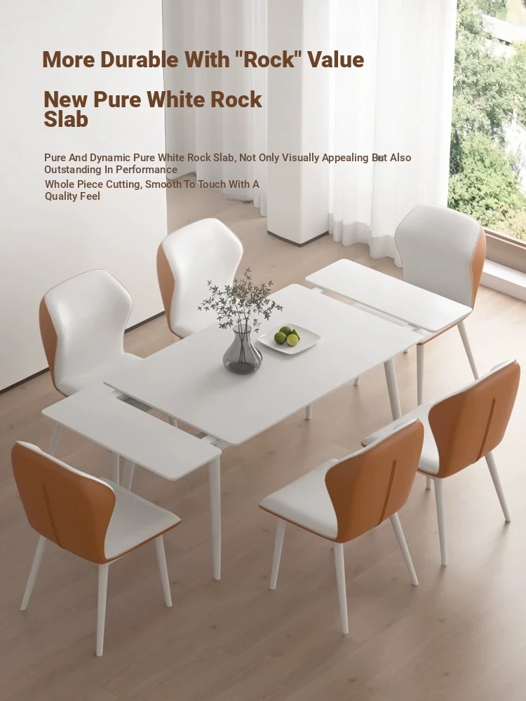 Thickened All-Base Rock Plate Dining Table with Aluminum Alloy Legs - Stylish and Compact Dining Set for Small Homes and Families