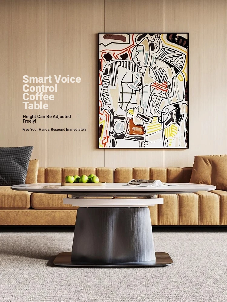 Multifunctional Electric Smart Dining Table & Coffee Table - Space-Saving Adjustable Round & Square Design for Small Homes, Featuring Elegant Rock-Solid Surface. Perfect for Versatile Dining Experiences!