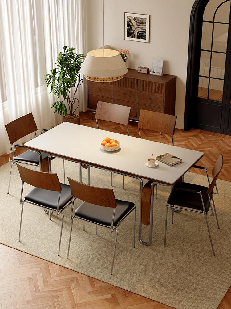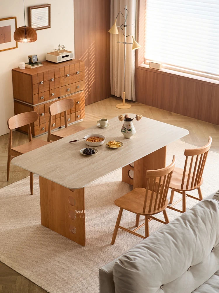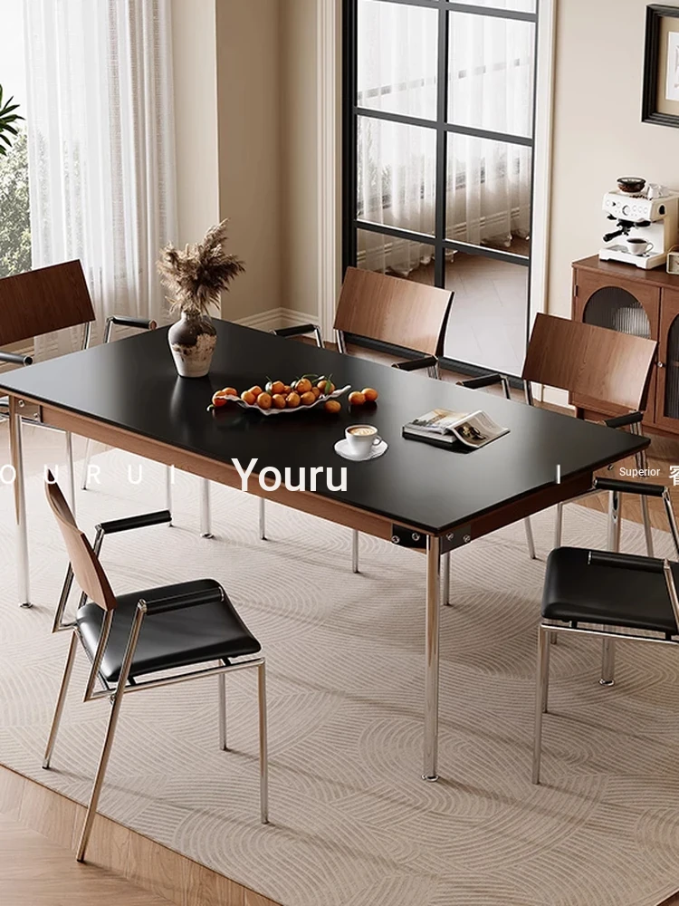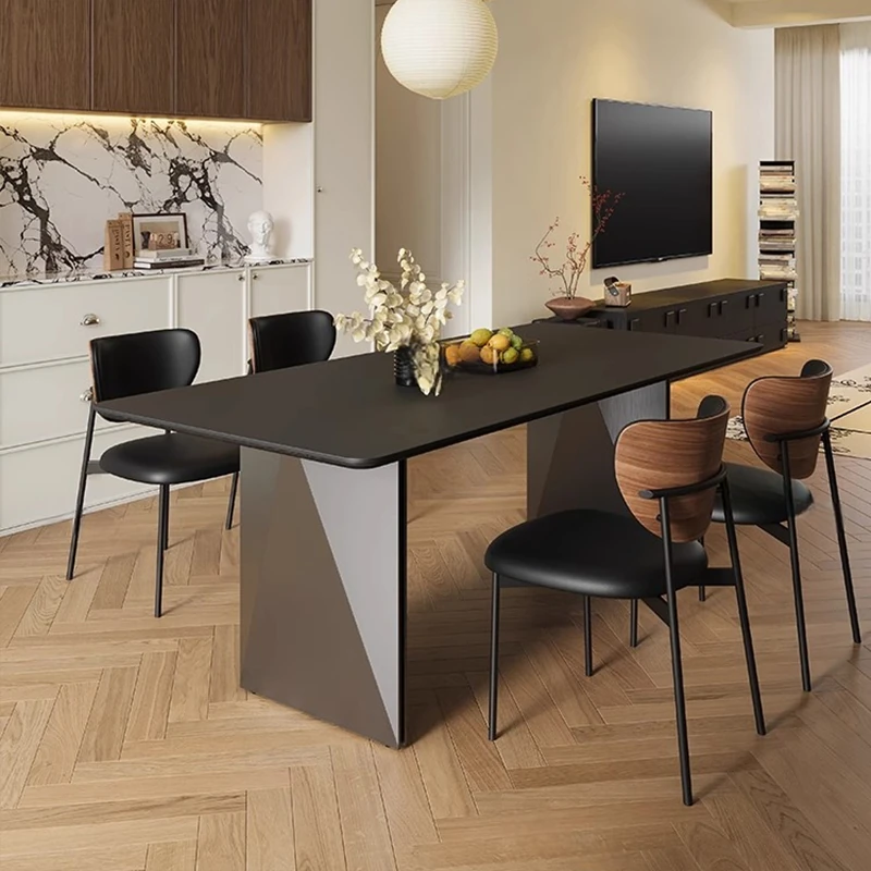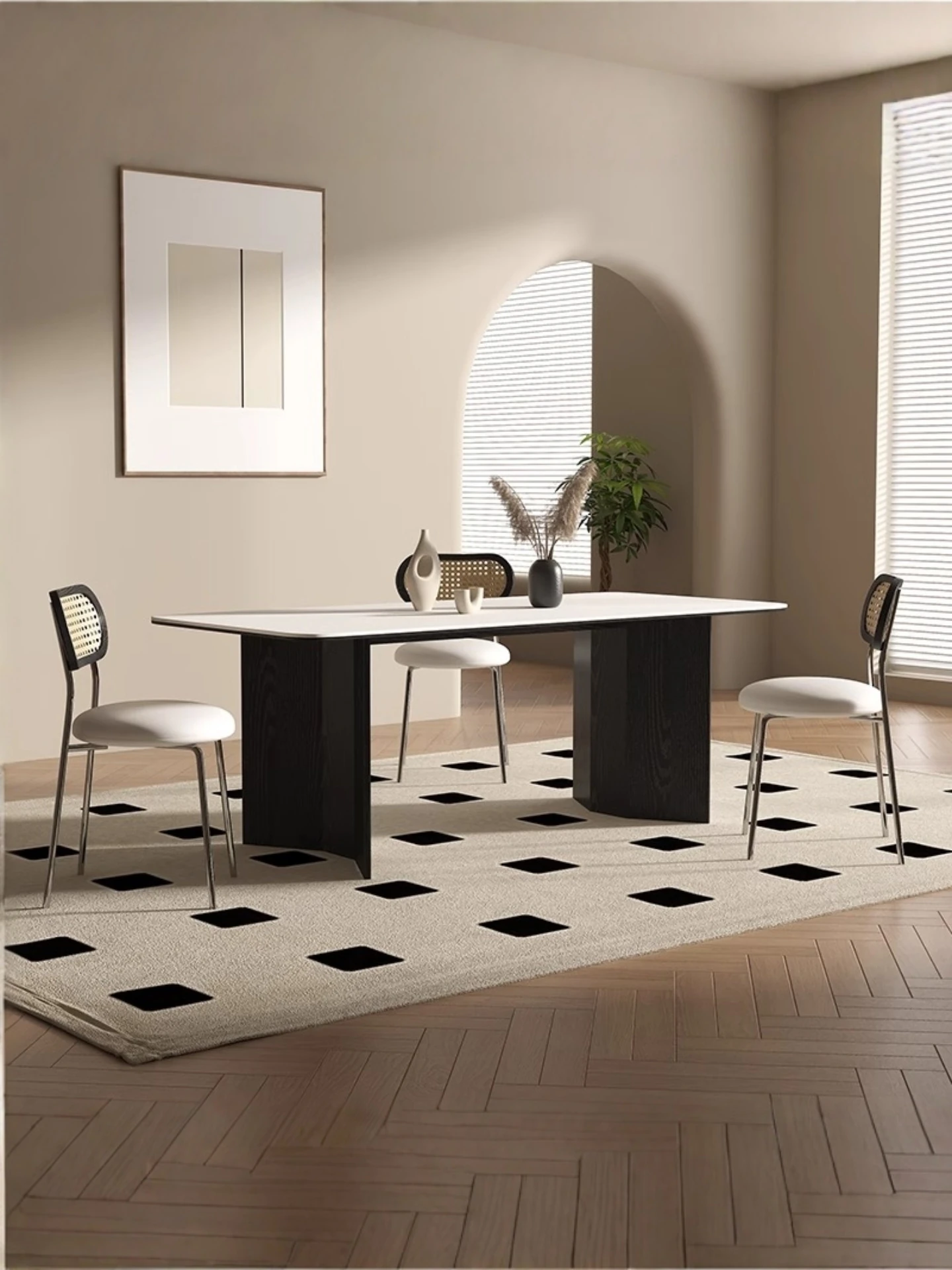 2024 New Italian Minimalist High-End Rock Slab Dining Table and Chair Set for Small Spaces - Stylish Rectangular Table Perfect for Home Dining