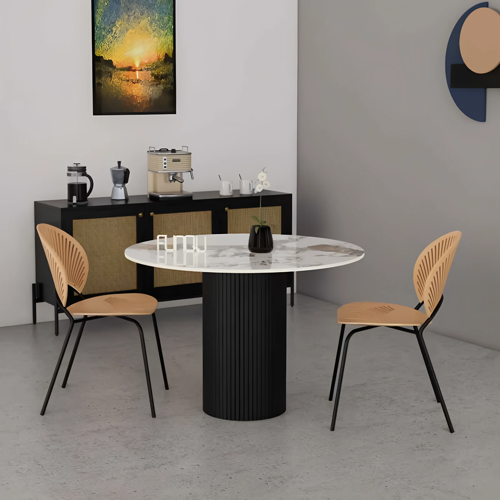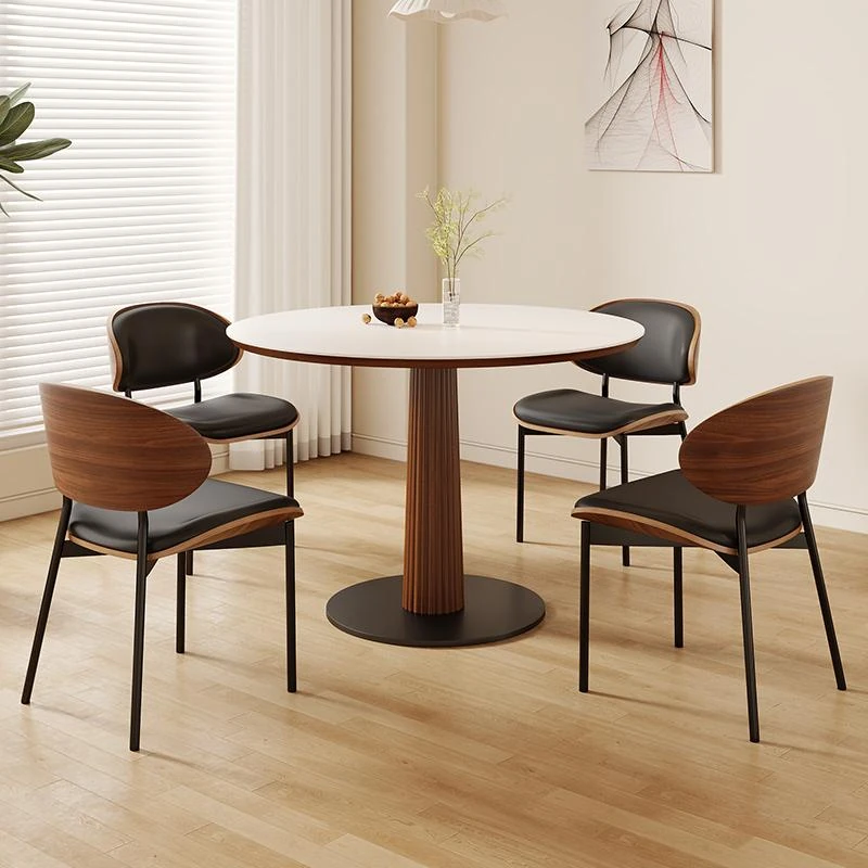 Nordic Vintage Solid Wood Round Dining Table Set with Chairs - Chestnut Park Stone Top Ideal for Small Spaces