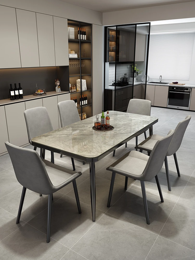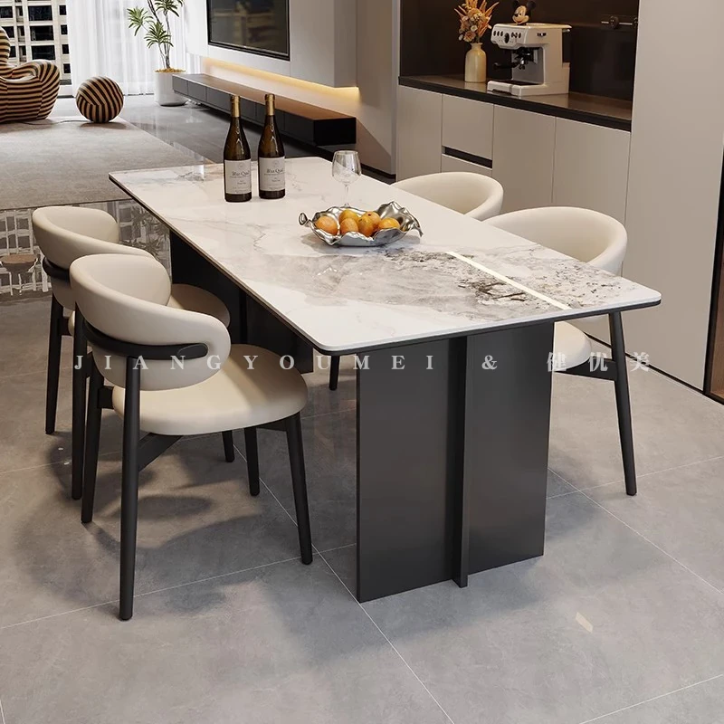 Jianyoumei Thickened Rock Plate Dining Table with Stainless Steel Legs - Italian Style Light Luxury Dining Set for Living Room, Perfect for Home Use