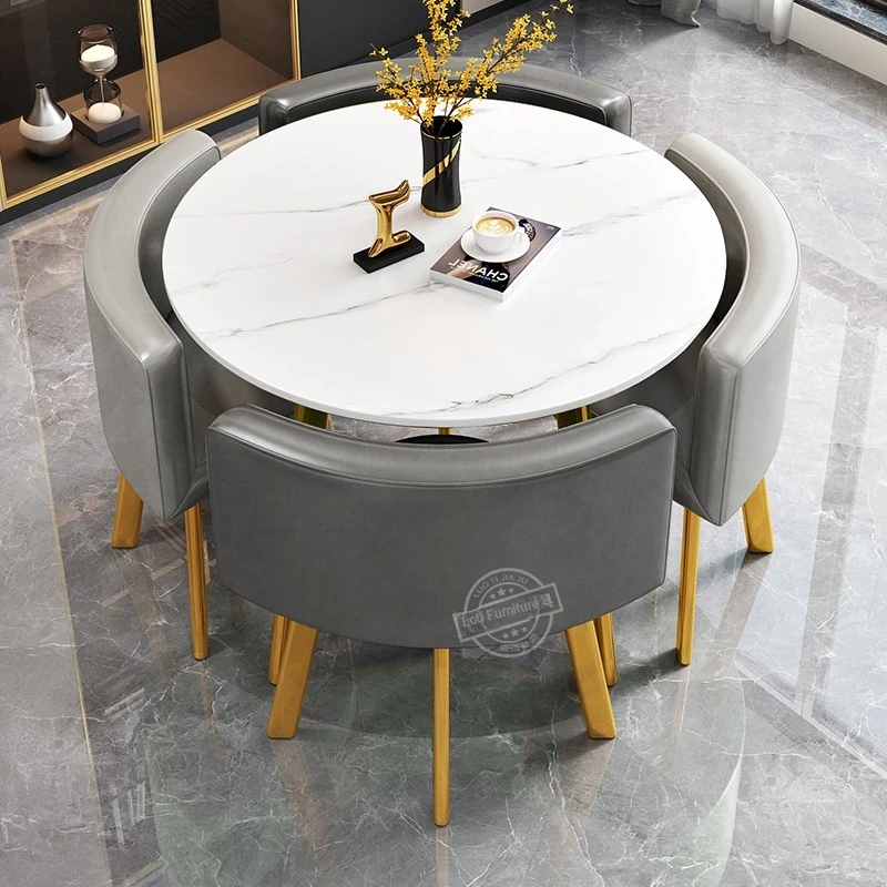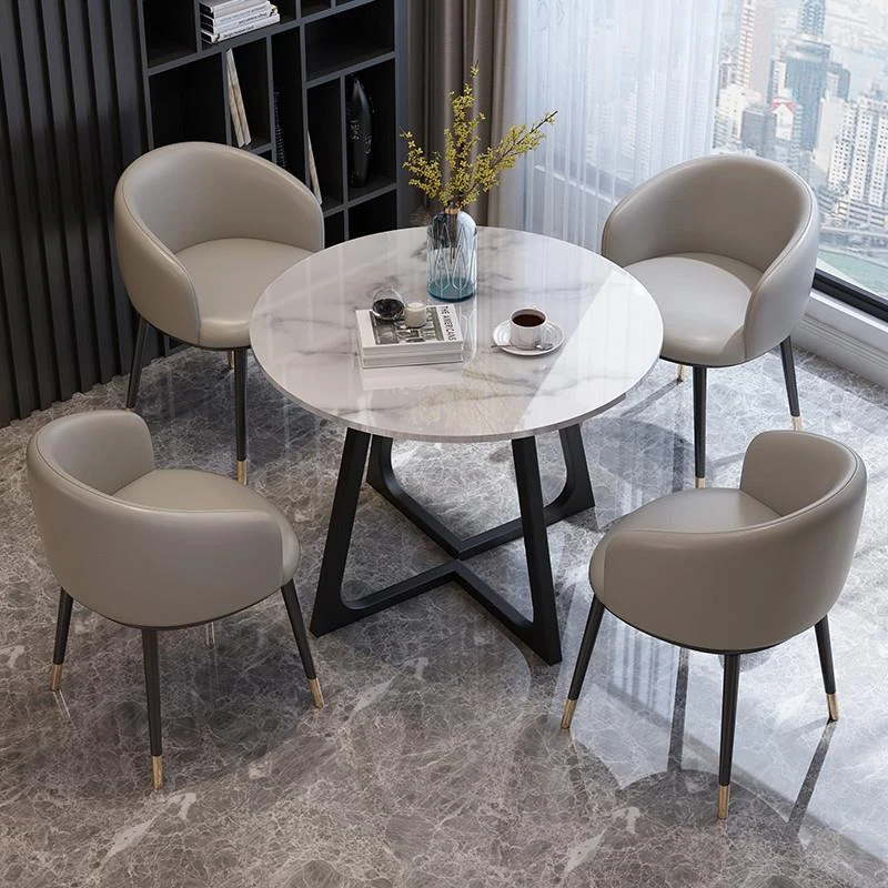 Light Luxury Leisure Rock Plate Conference Table and Chair Set - Perfect for Hotel Sales Offices, 4S Stores, and Lounge Areas. Ideal Round Table for Tea, Meetings, and Reception in Balconies and Relaxation Spaces.