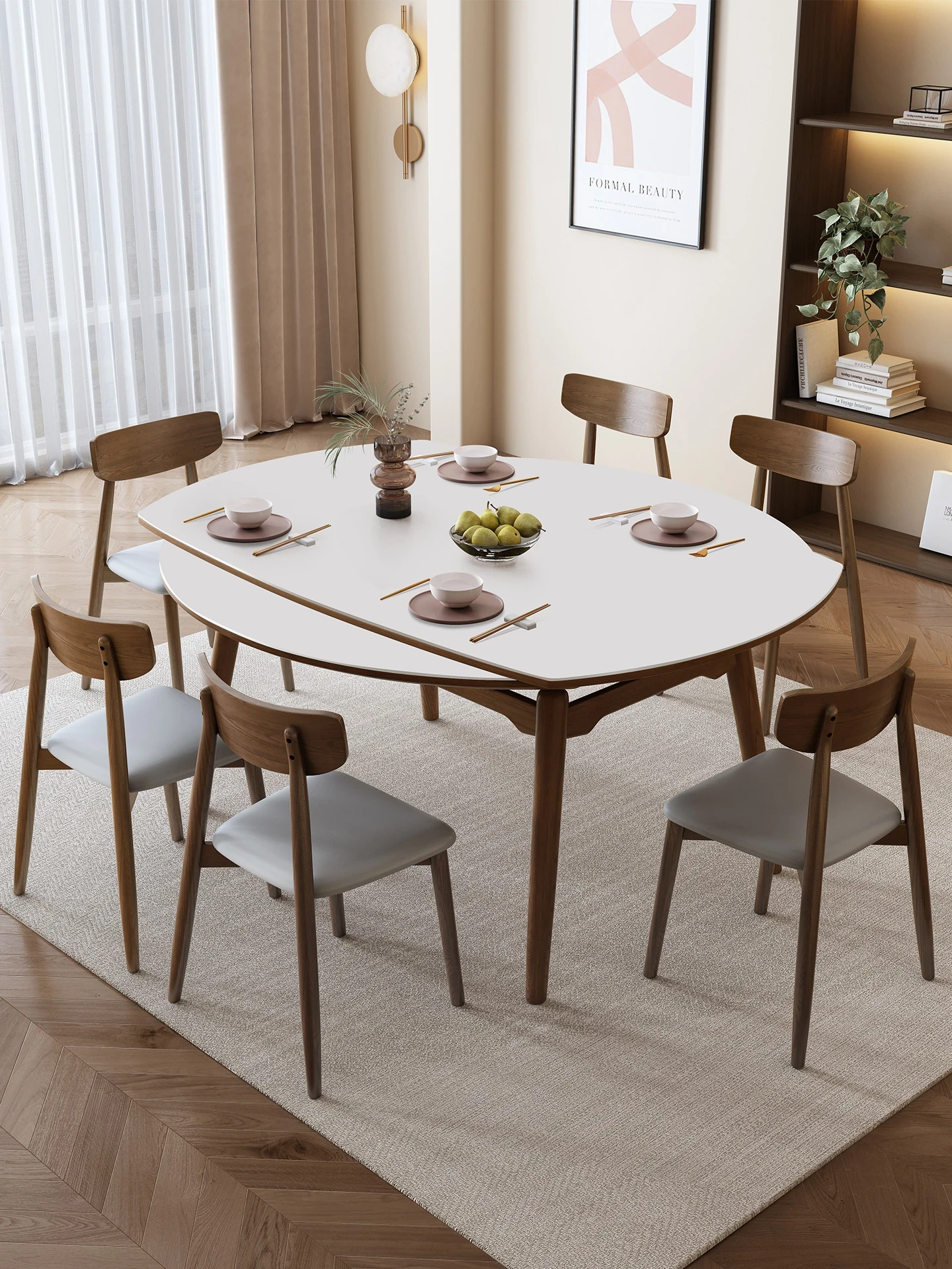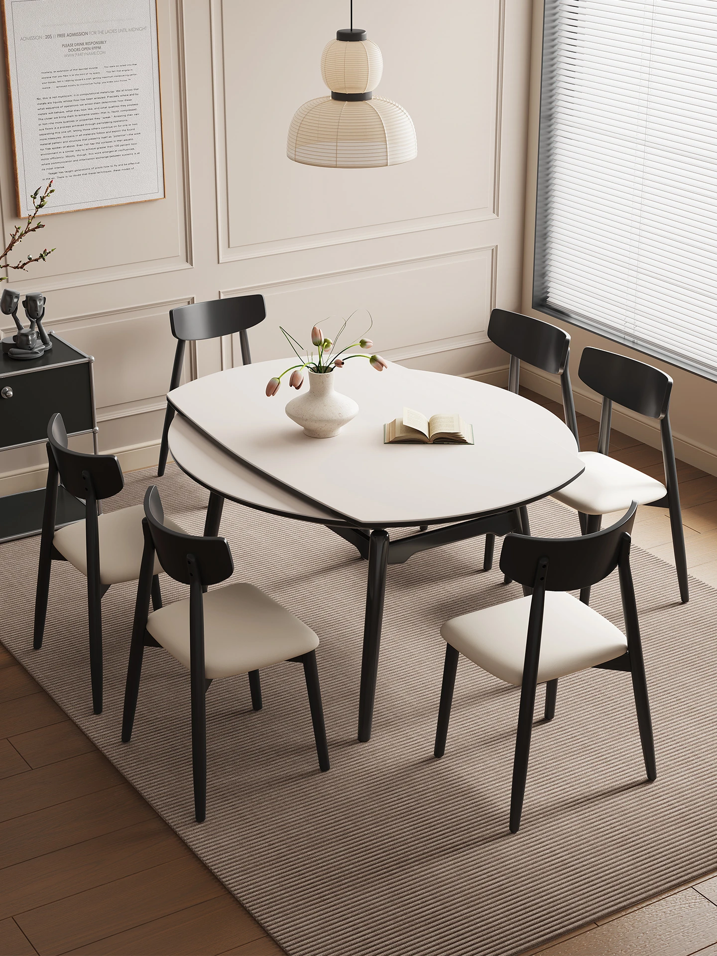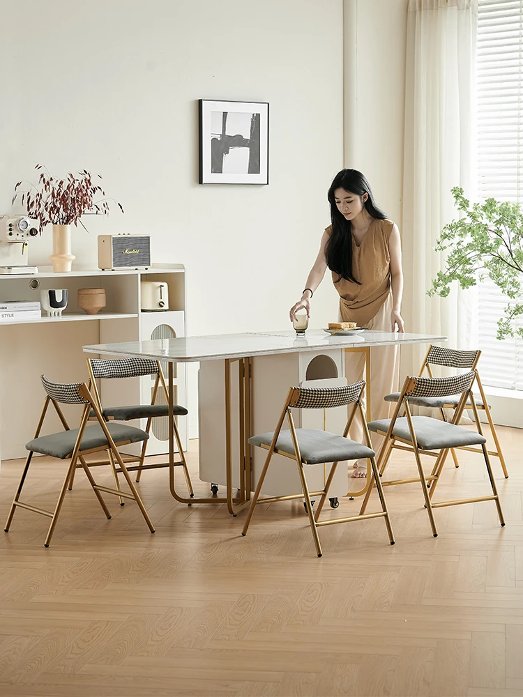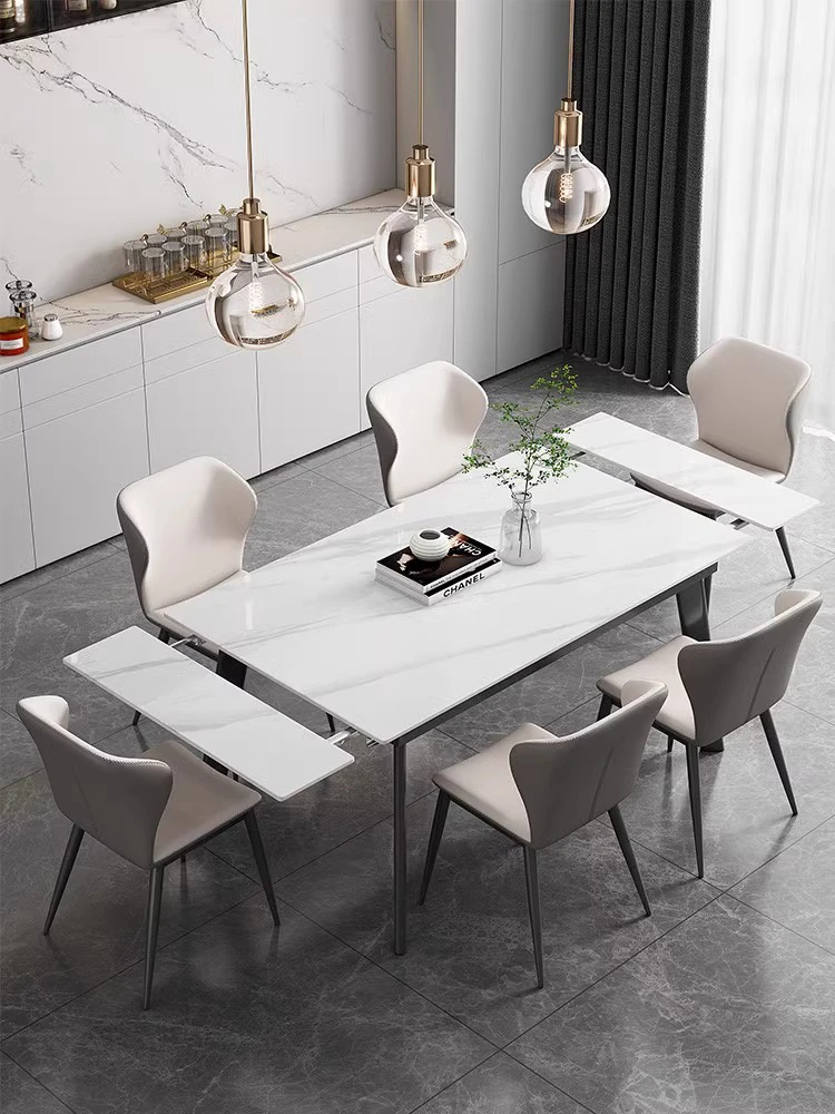 Modern Luxury Extendable Folding Dining Table and Chair Set - Minimalist Rectangular Rock Plate Dining Table for Small Spaces