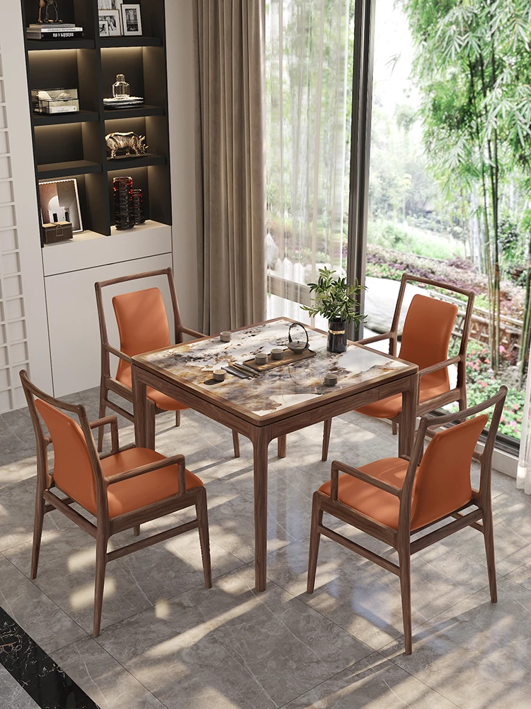 Modern Chinese Style Solid Wood Square Dining Table - Elegant and Minimalist Design for Small Spaces, Featuring Durable Rock Plate Top - Perfect for Family Gatherings and Entertaining.