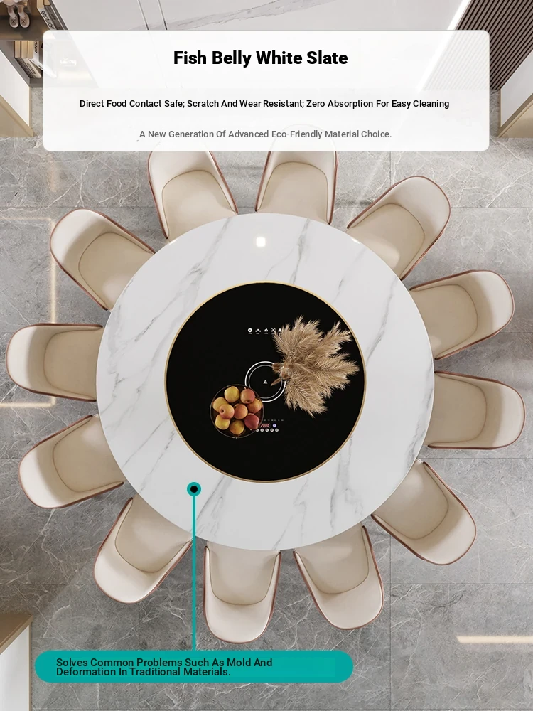 Elegant Round Dining Table for 12 - Luxurious 2m/1.8m High-End Circular Table for Spacious Homes, Perfect for Family Gatherings and Entertaining Guests.