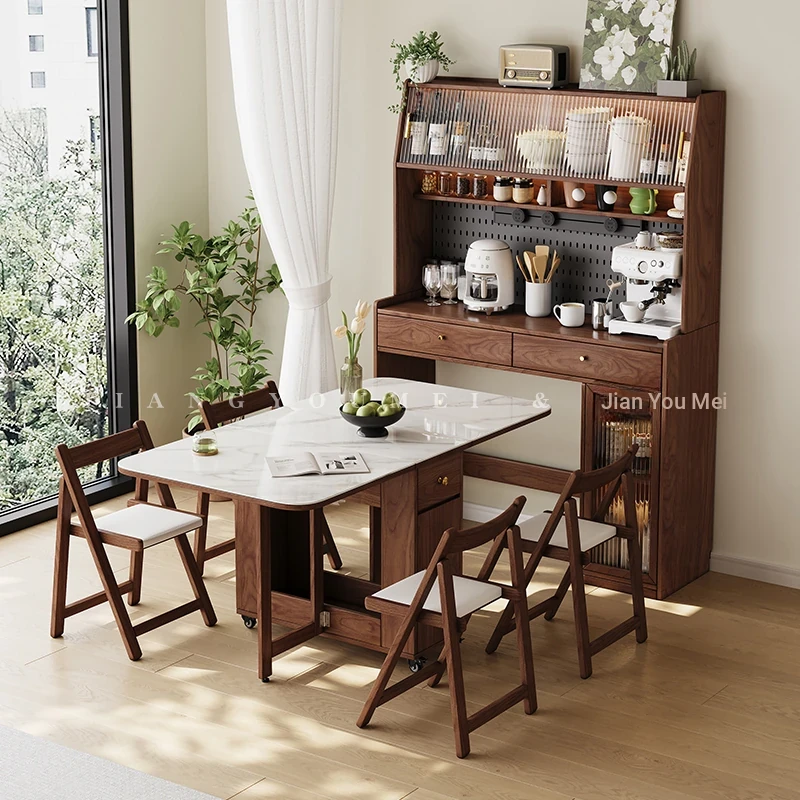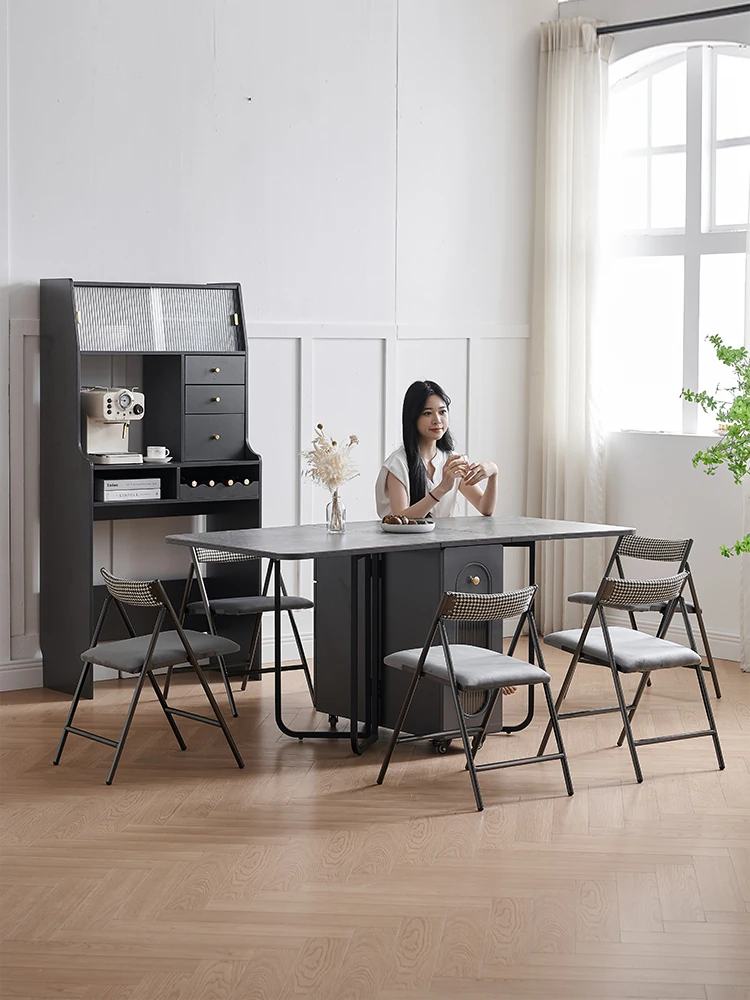 Elegant Foldable Dining Table with Integrated Multifunctional Wine Cabinet – Space-Saving, Expandable Rectangular Table for Small Homes. Perfect for Stylish Dining Experiences!