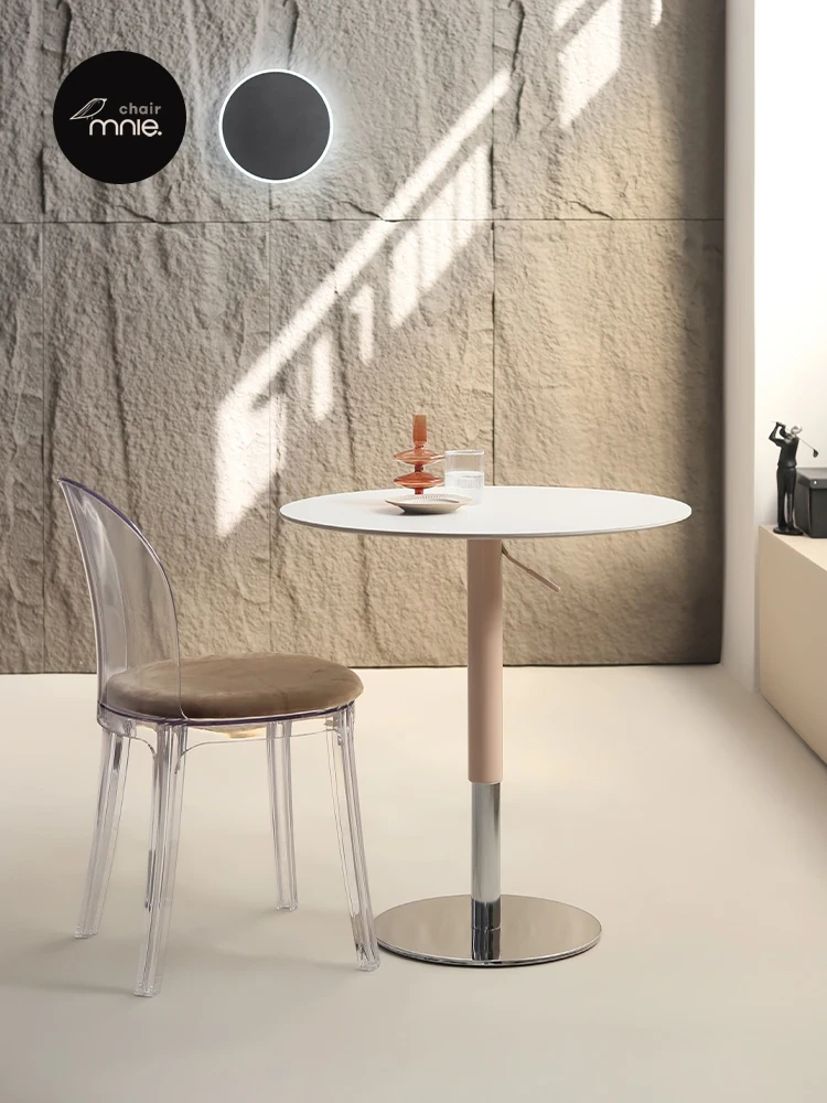 Nordic Minimalist Adjustable Round Stone Table - Elegant Conversation Table for Home, Balcony, and Casual Tea Time; Perfect for Mobile Office Use