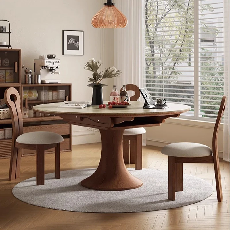 Black Walnut Color Expandable Dining Table - Vintage Style, Versatile Round Design for Small Spaces, Solid Wood Dining Table for Home Use
