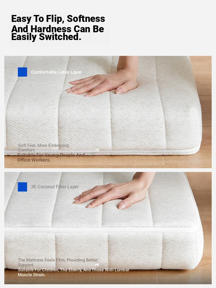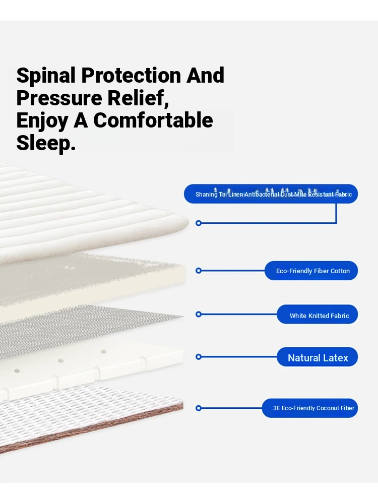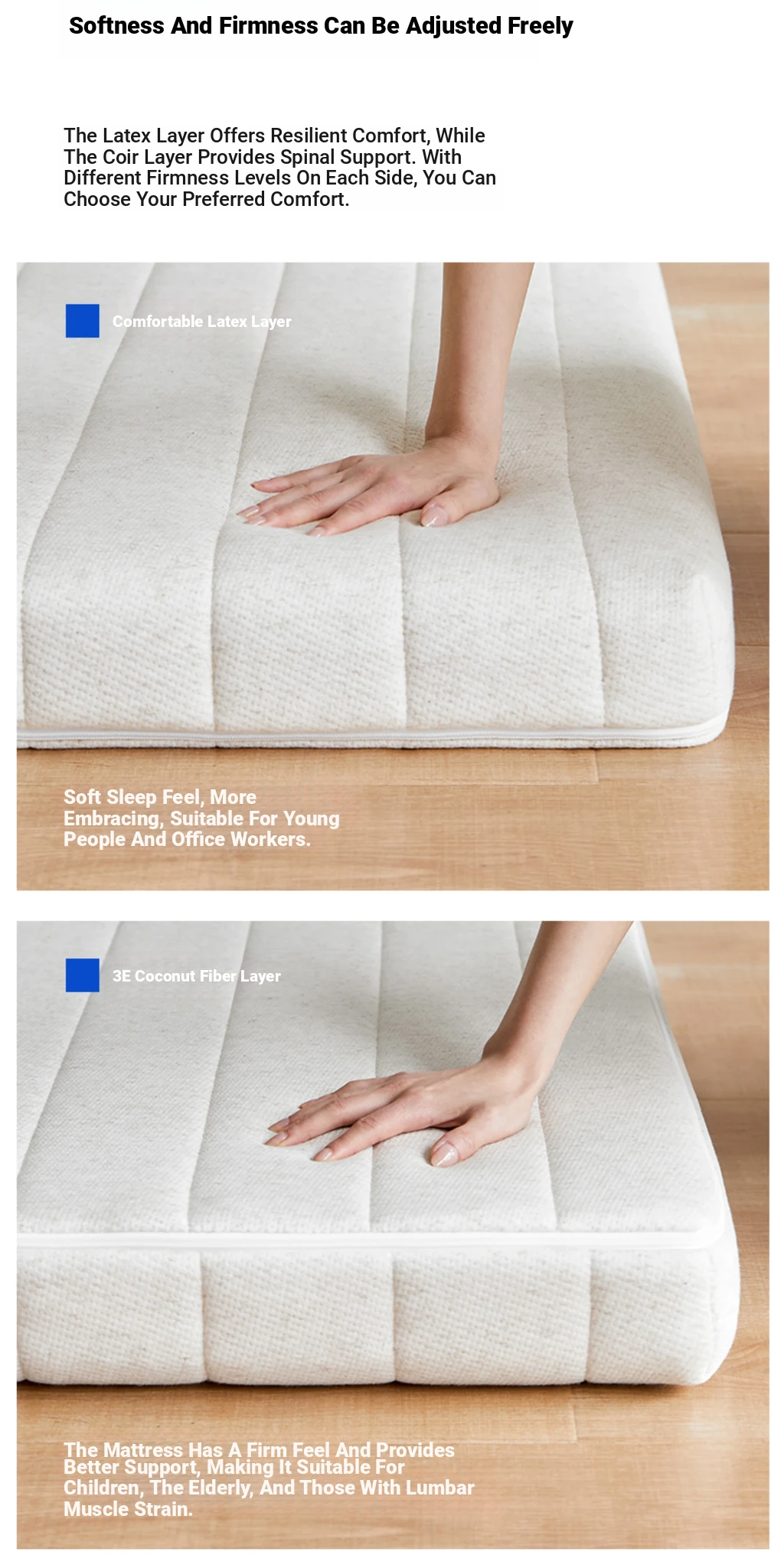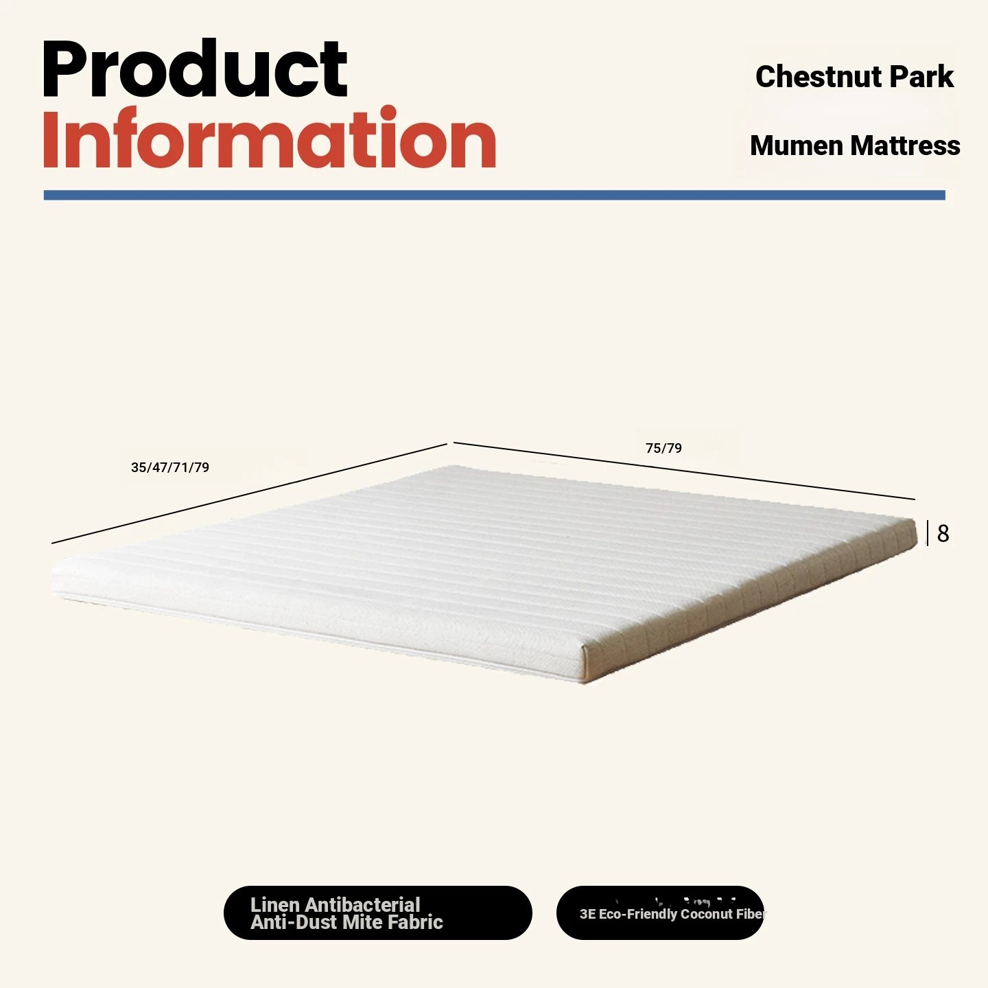 Chestnut Park Natural Latex Mattress - Eco-Friendly 3E Coconut Fiber Supportive Bed for Couples - Thin Firm Mattress for Spine Protection, Perfect for Home Use