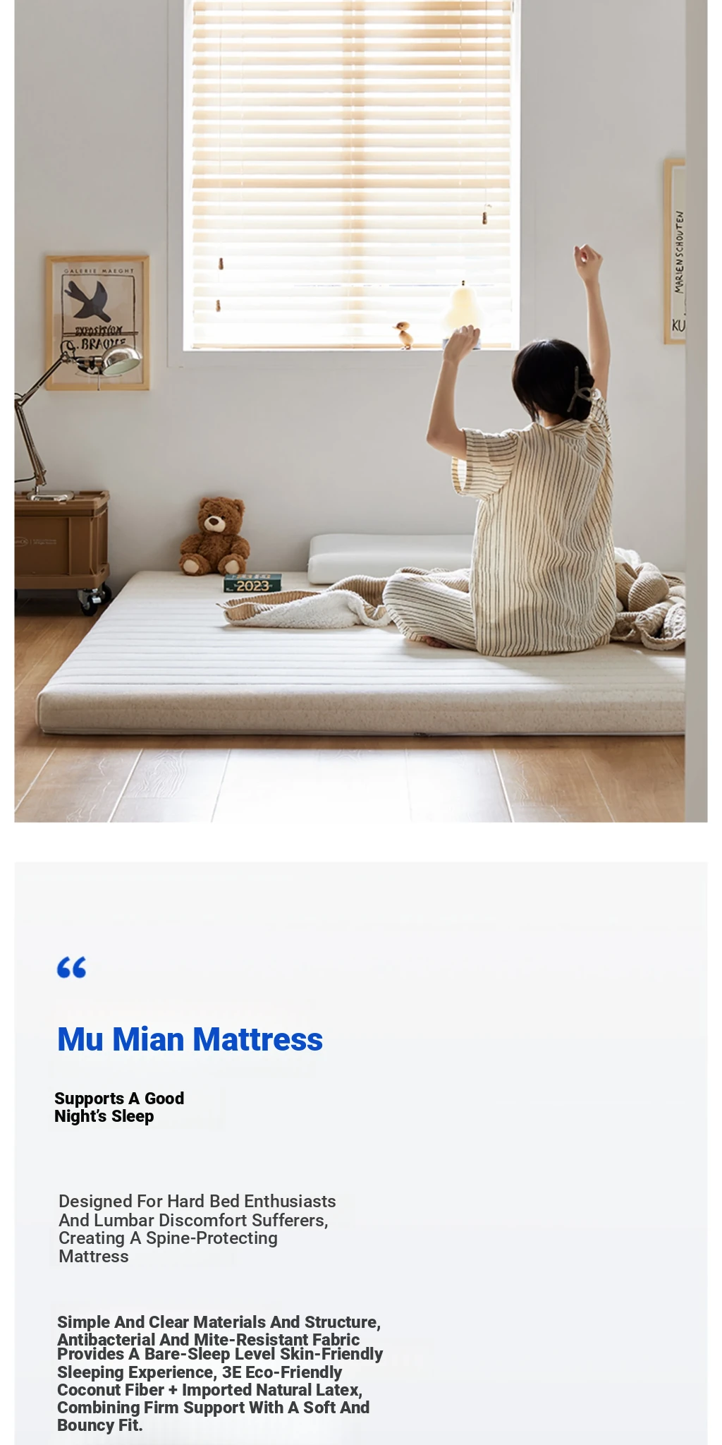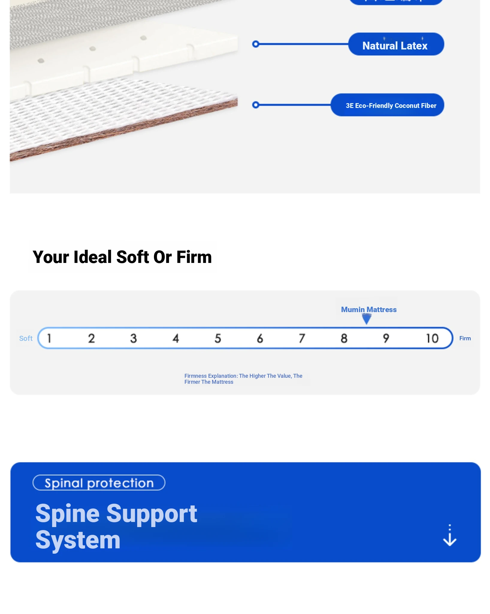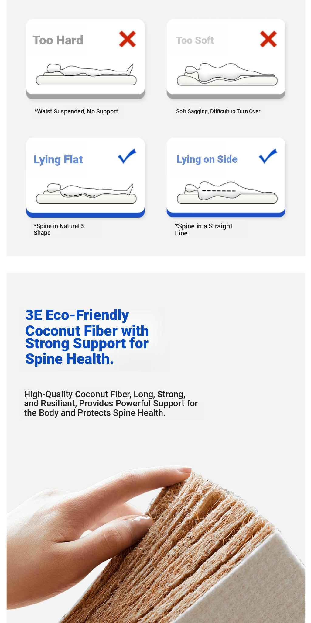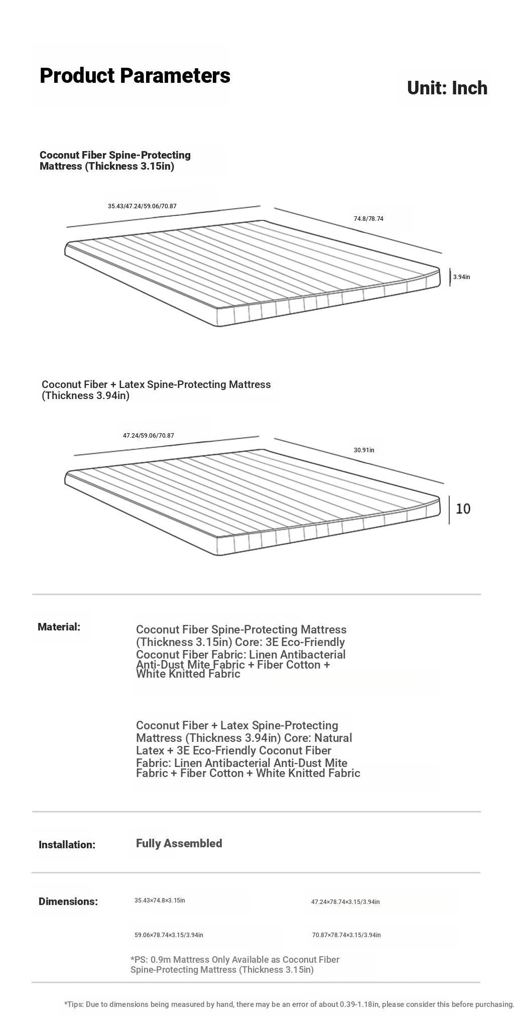 Chestnut Park Natural Latex Mattress - Eco-Friendly 3E Coconut Fiber Supportive Bed for Couples - Thin Firm Mattress for Spine Protection, Perfect for Home Use