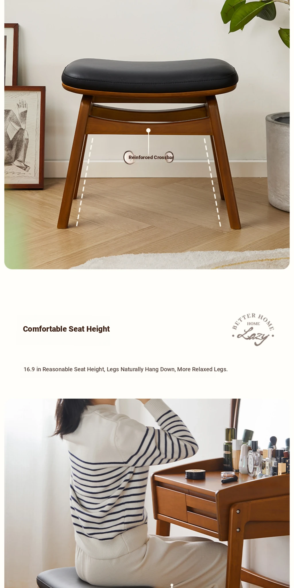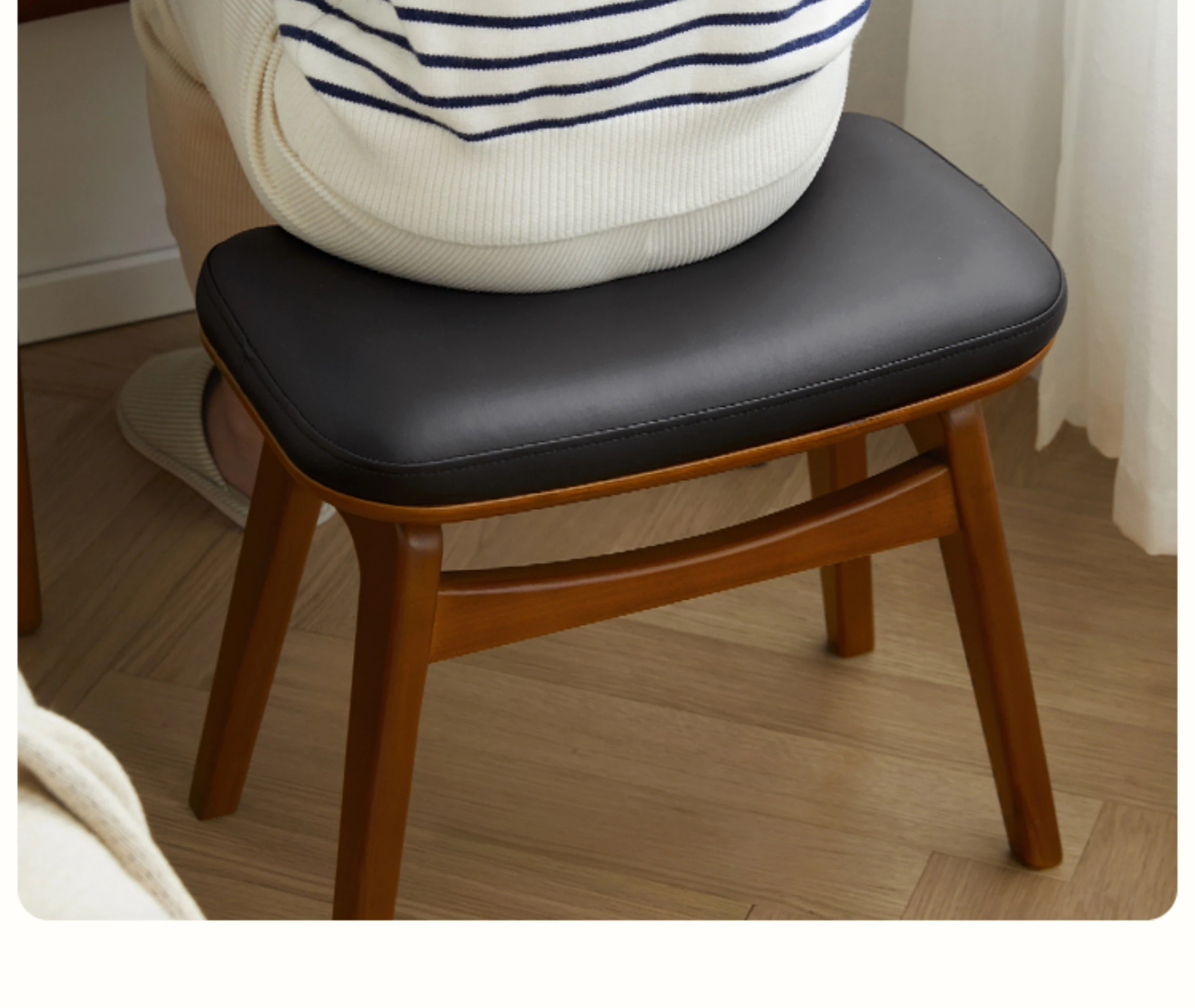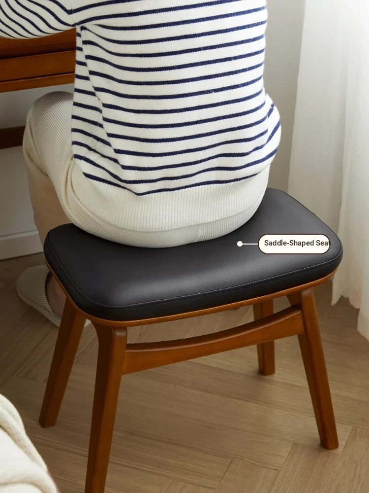 Chestnut Park Relaxed Dressing Stool - Solid Wood Nordic Retro Soft-Padded Entryway Shoe Bench - Low Minimalist Makeup Stool, Perfect for Chic Home Decor