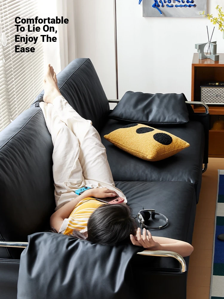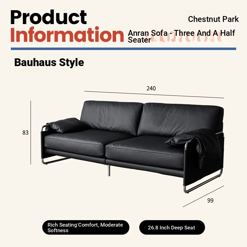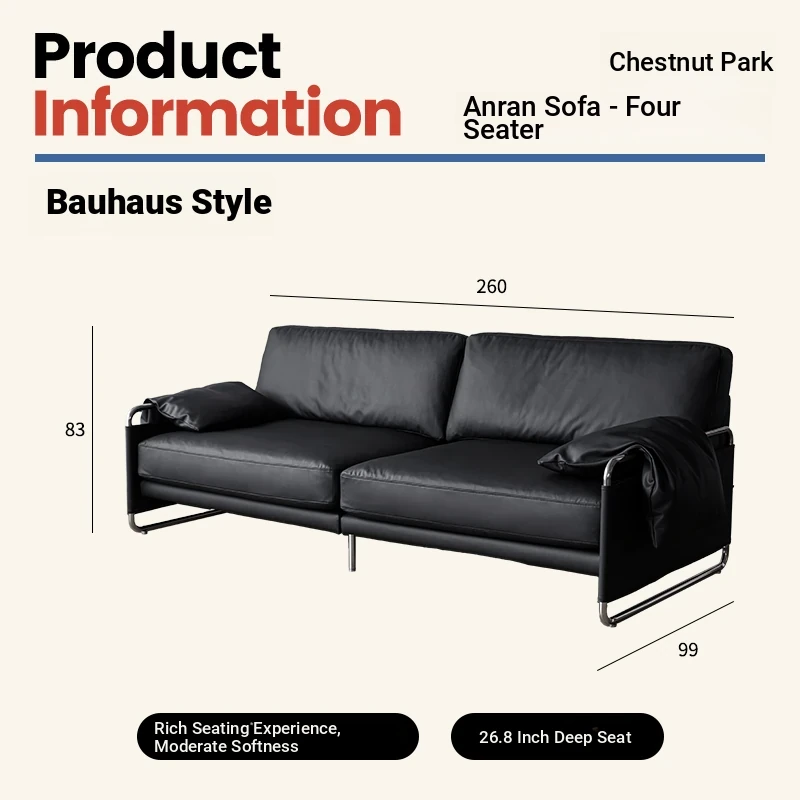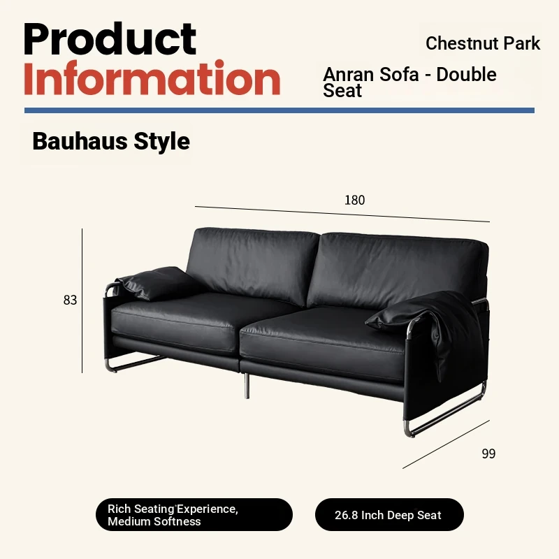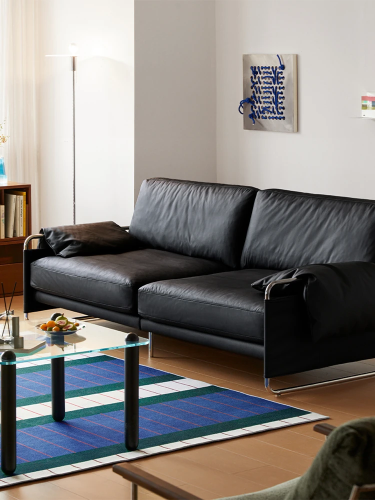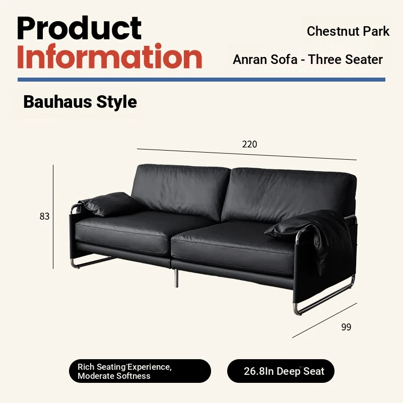Chic Retro Nordic Leather Sofa - Anran Series, Stylish Bauhaus Design, Minimalist Black for Living Room, Luxurious Faux Leather Comfort