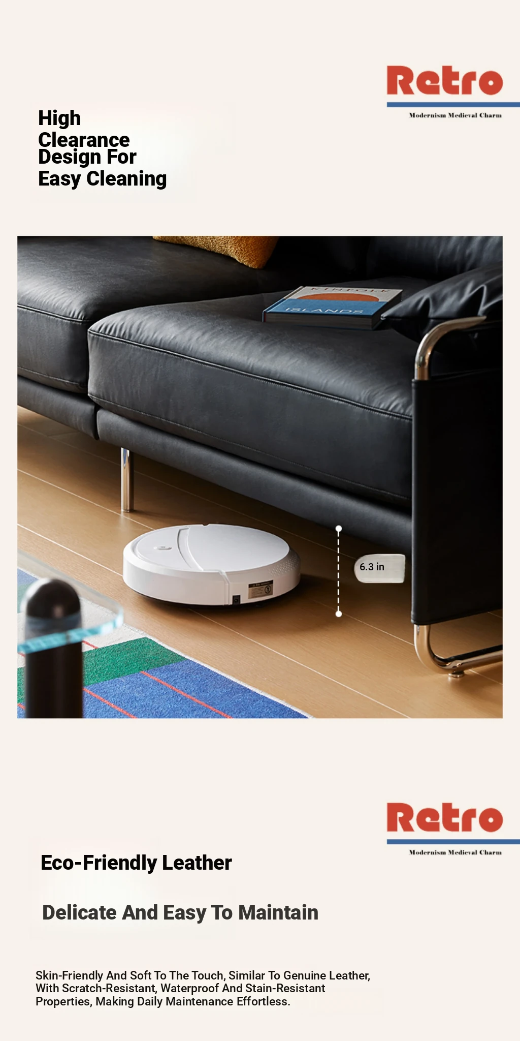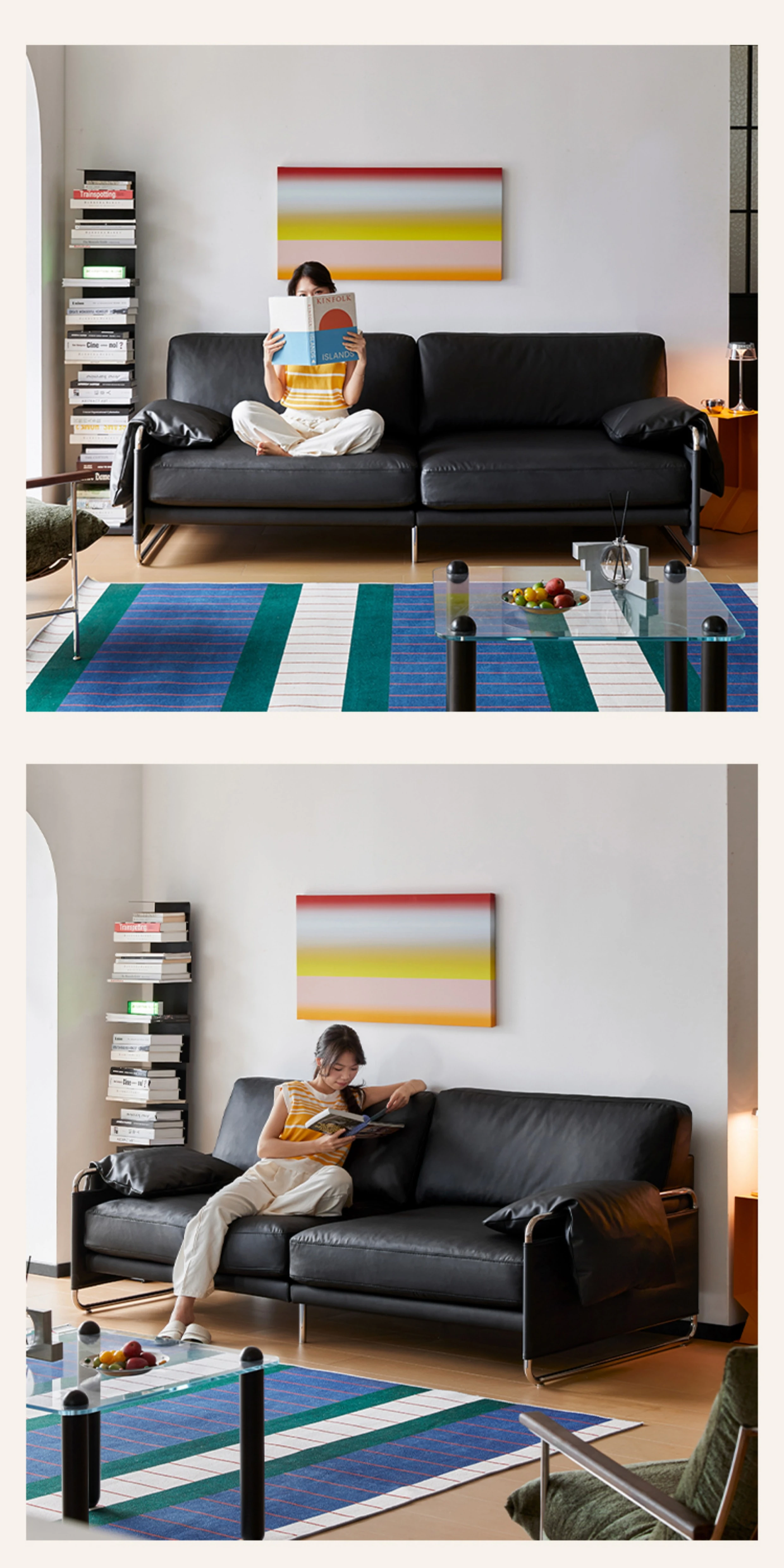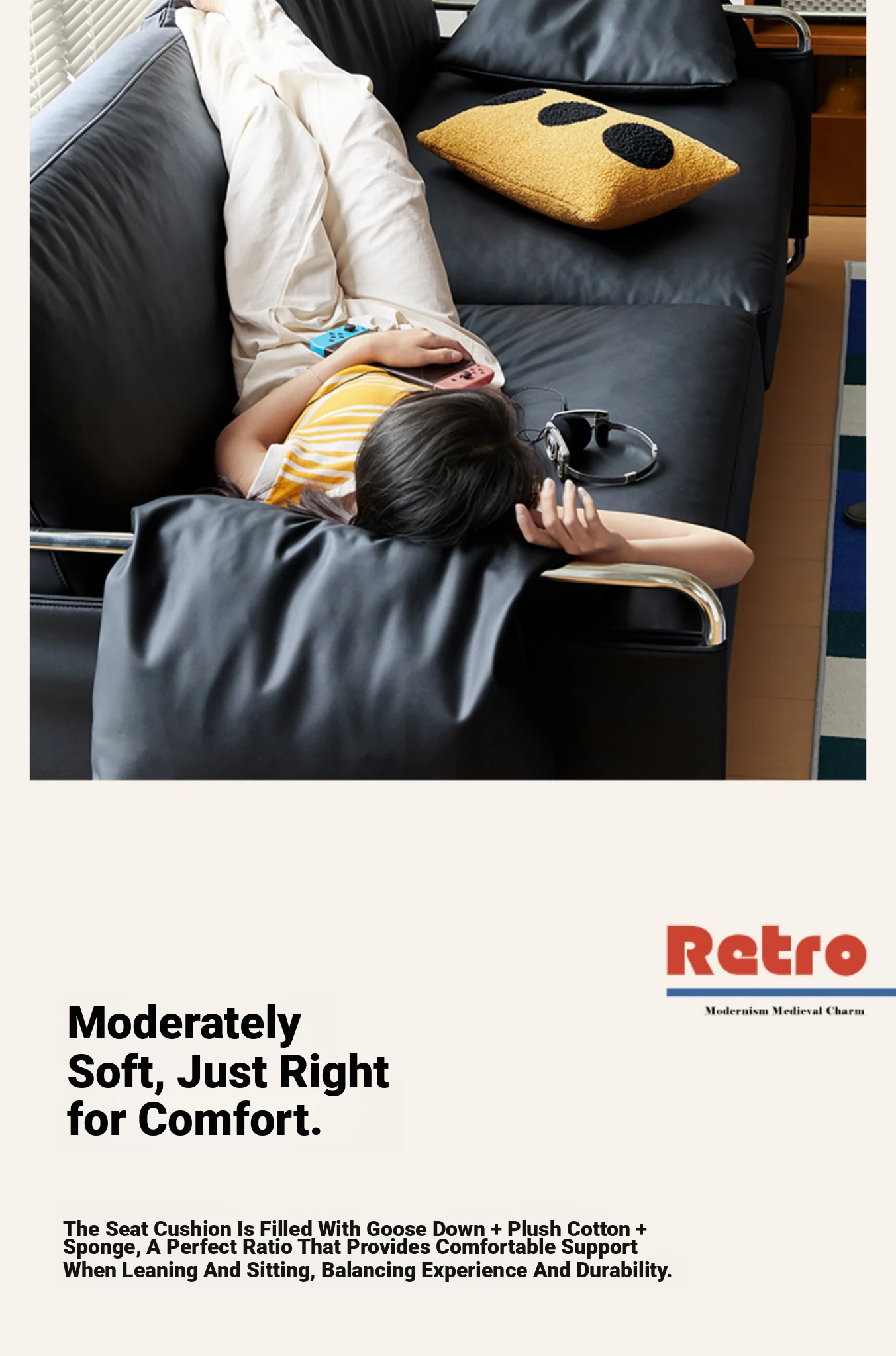 Chic Retro Nordic Leather Sofa - Anran Series, Stylish Bauhaus Design, Minimalist Black for Living Room, Luxurious Faux Leather Comfort