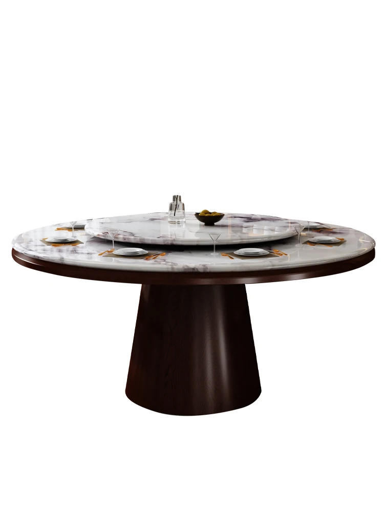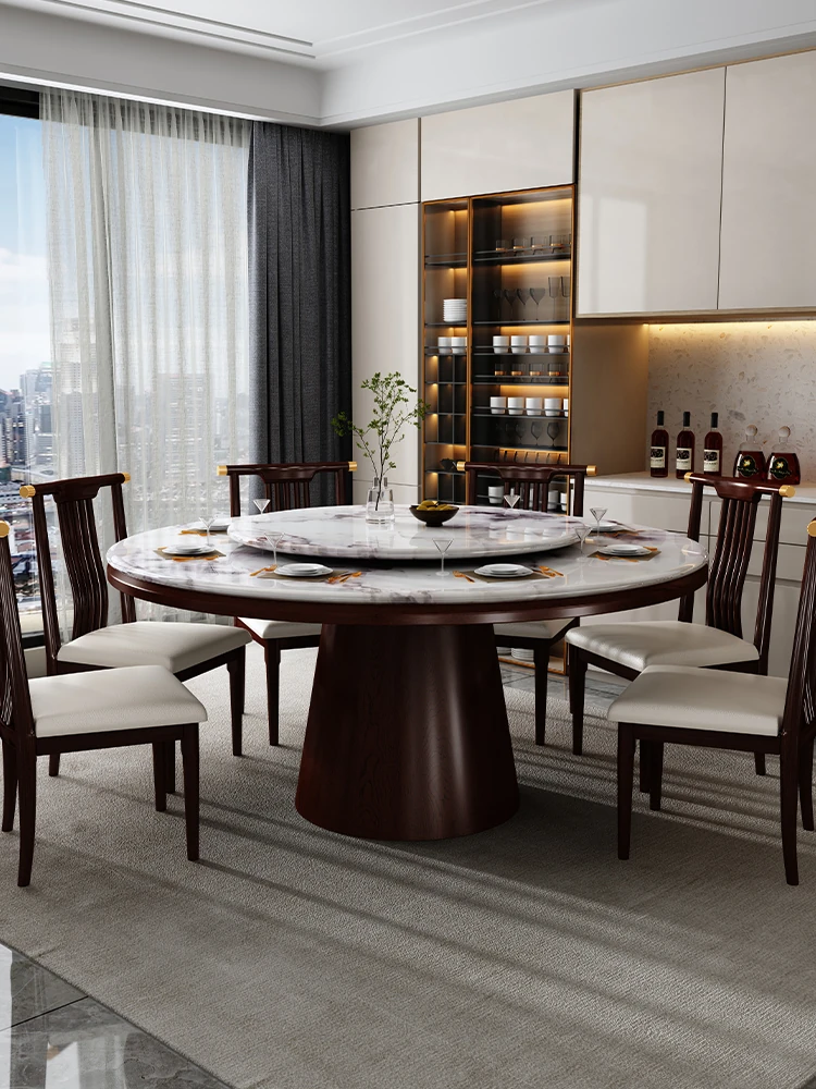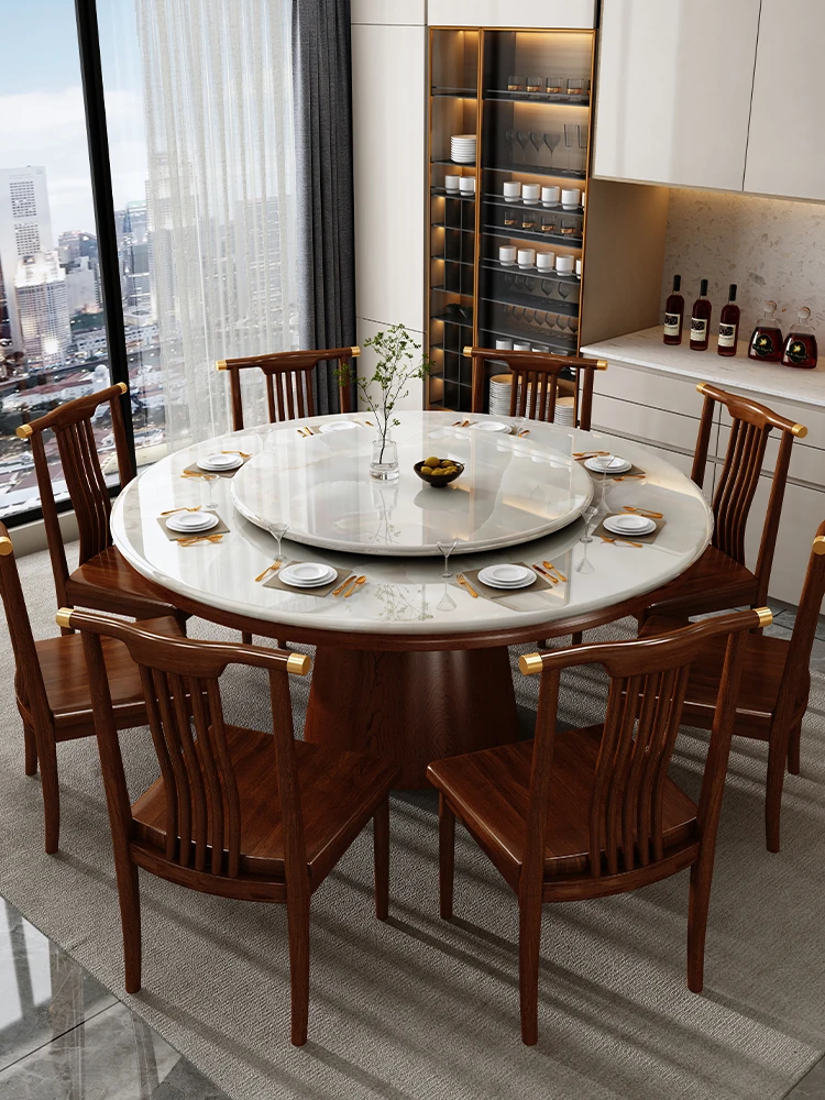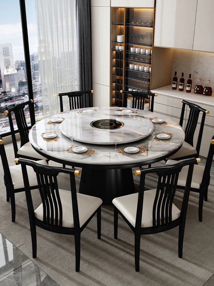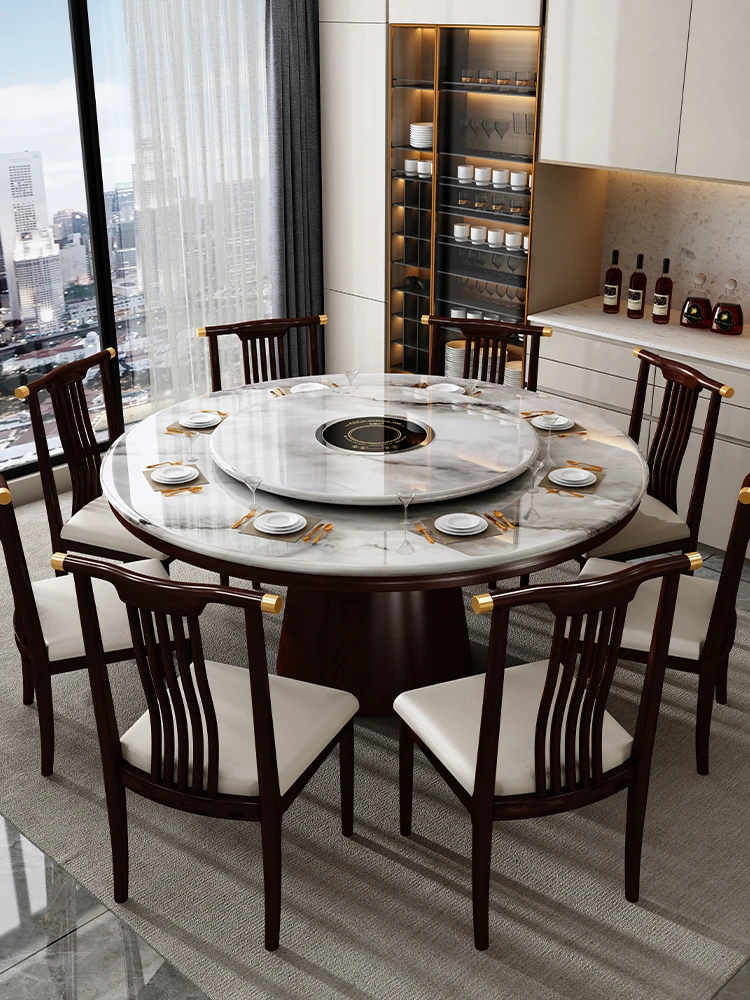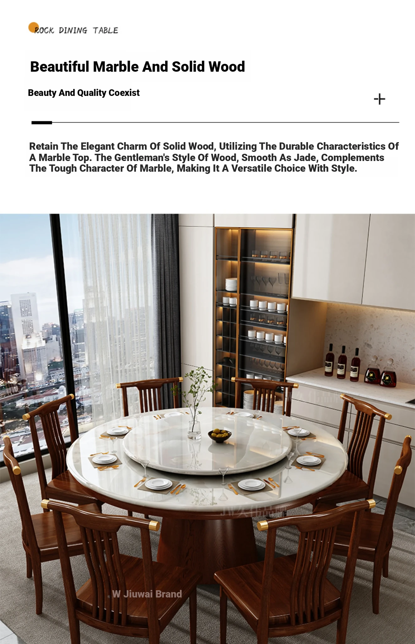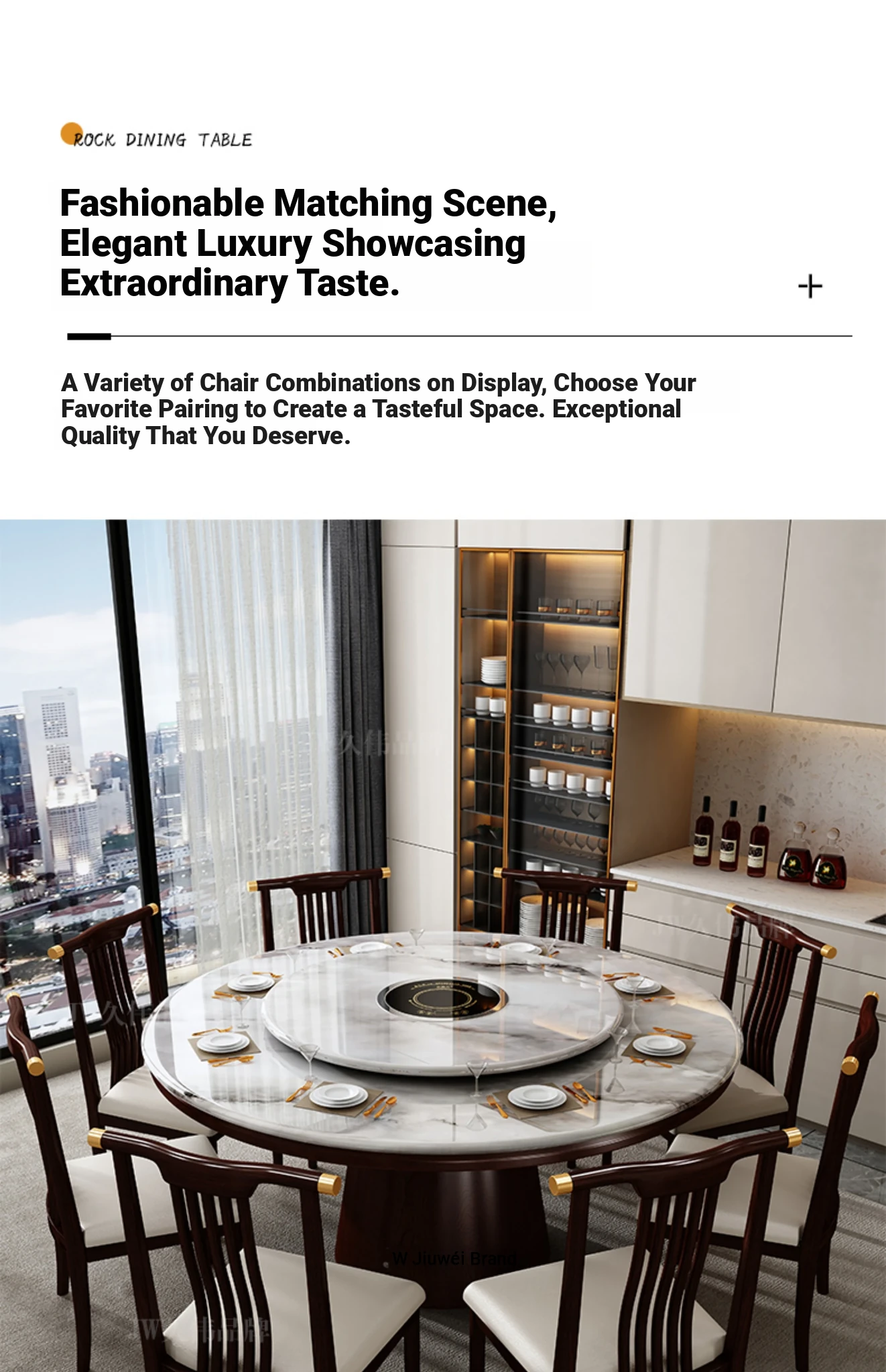 Elegant Natural Super Crystal Stone Dining Table and Chair Set - Luxurious Minimalist Round Marble Table with Solid Wood, Ideal for Home Use with Induction Cooktop.
