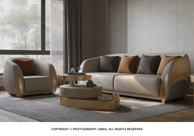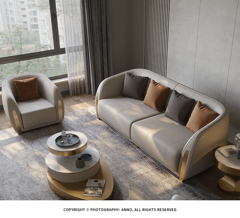 Italian Luxury Genuine Leather Sofa - Premium Top-Grain Cowhide for Modern Living Rooms, Perfect for Small to Large Spaces, Minimalist Design, Elegance Meets Comfort.