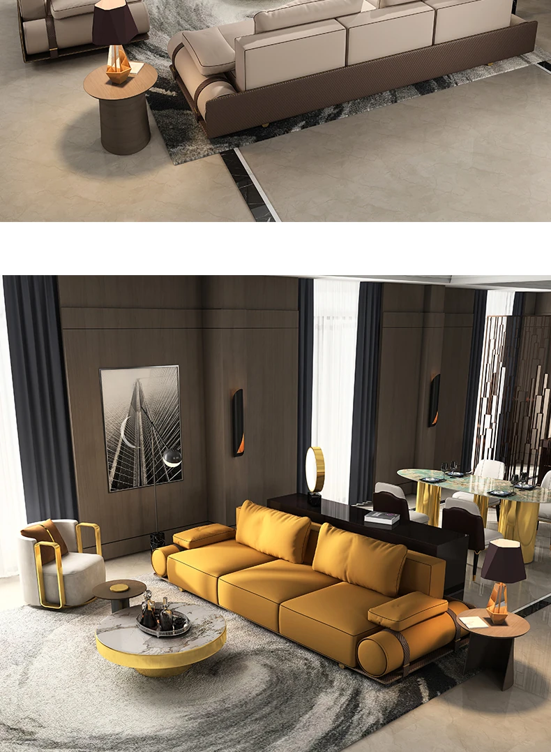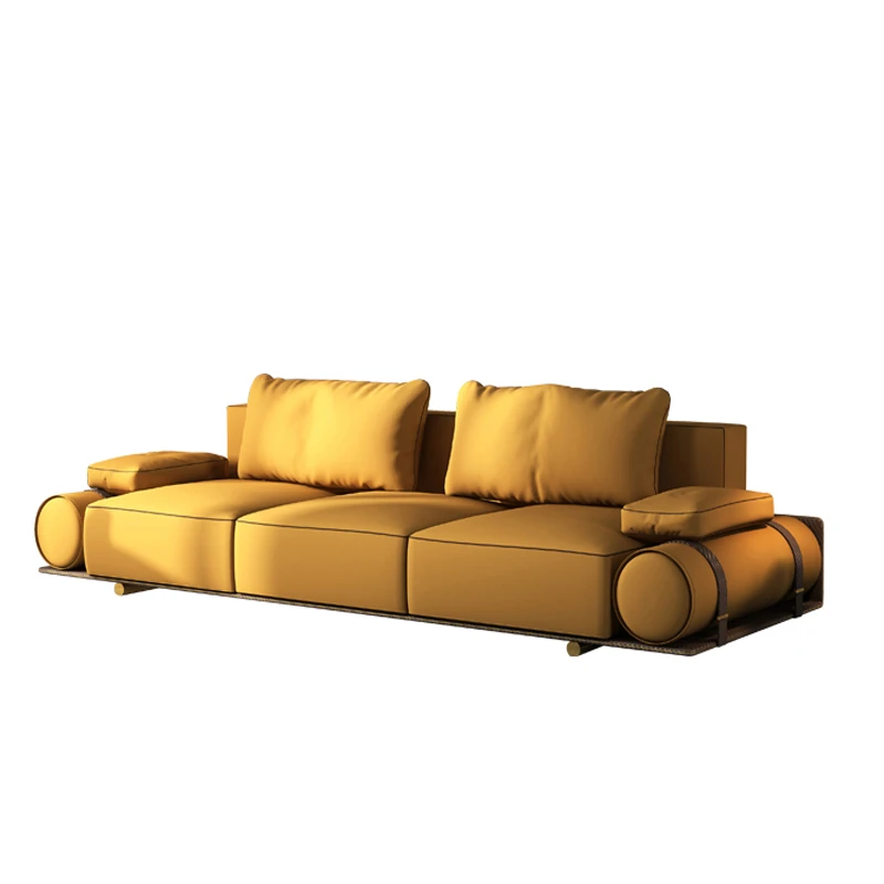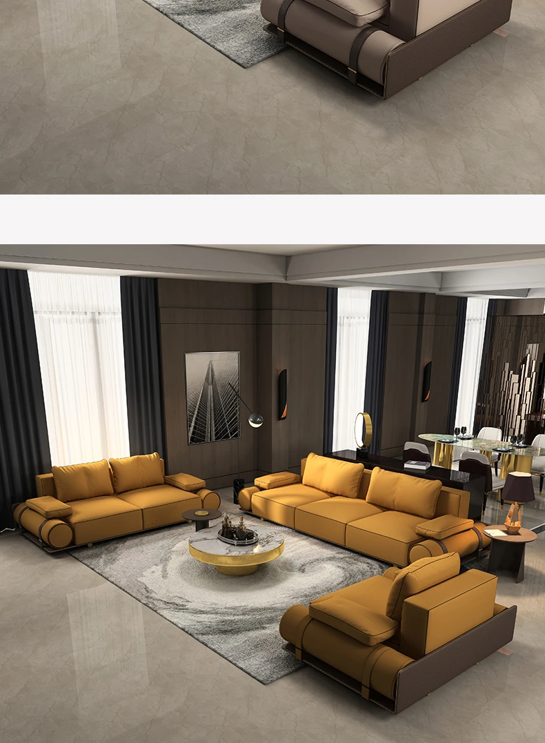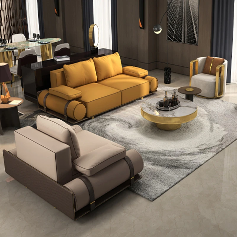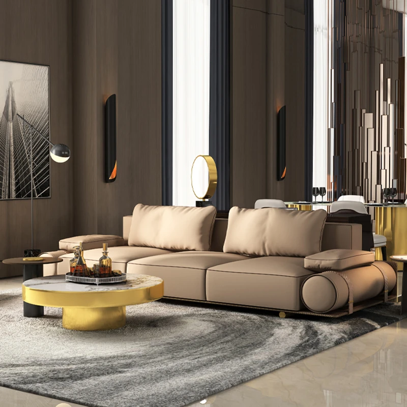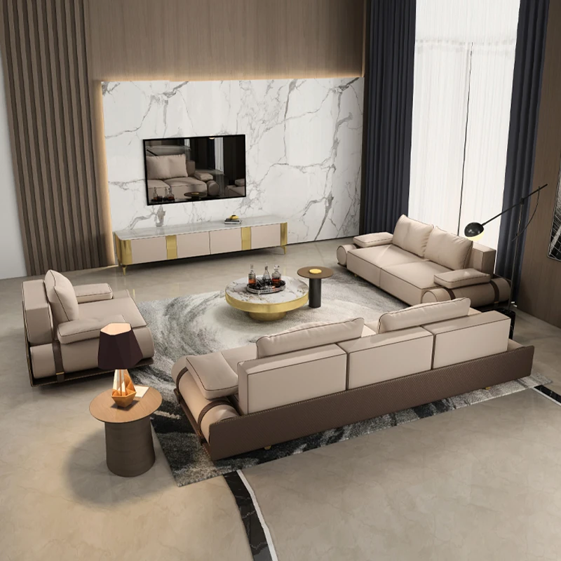 Italian Luxury Genuine Leather Sofa - Velvet Touch, Minimalist Design, High-End Sophistication for Expansive Villas and Luxury Living Rooms - Complete Home Furniture Collection.