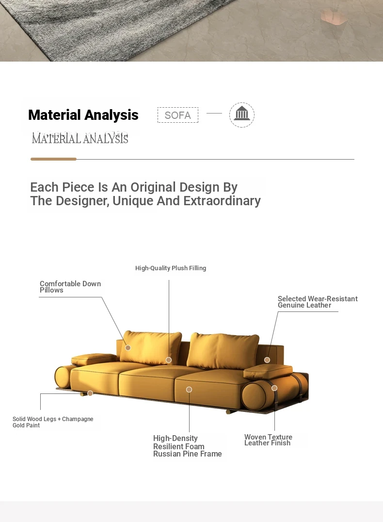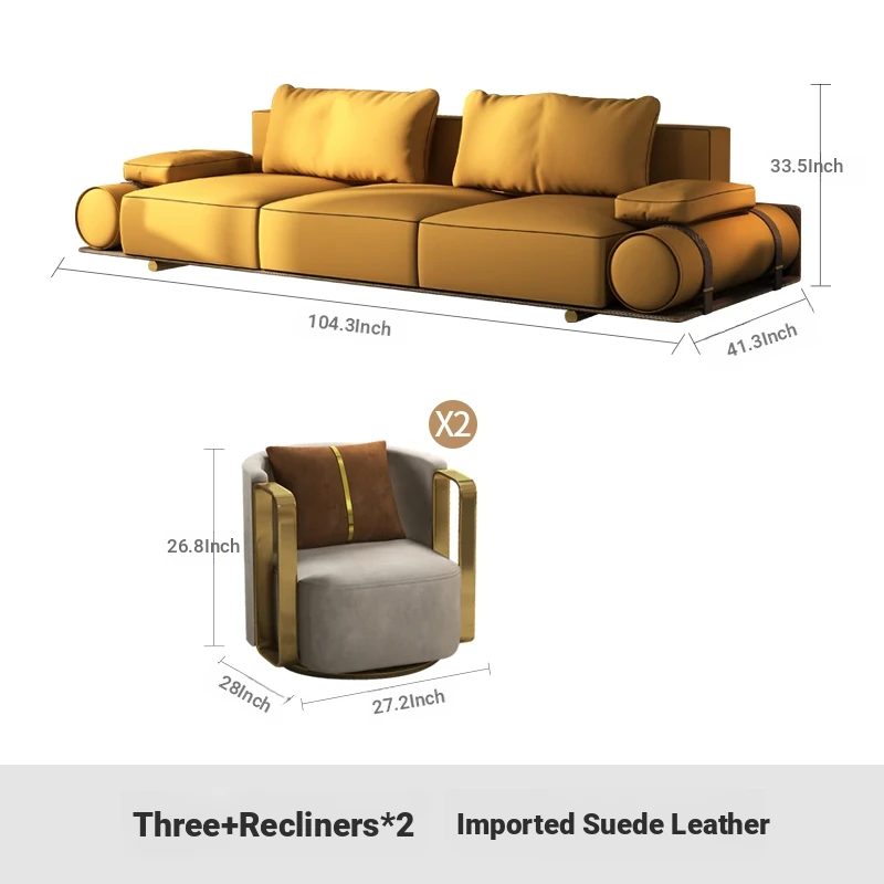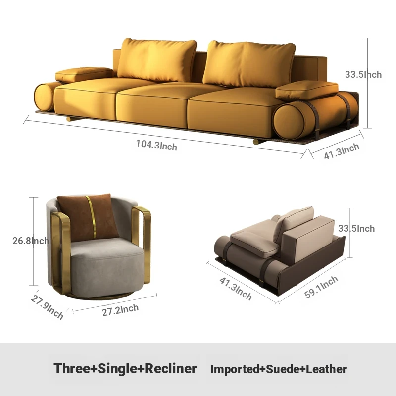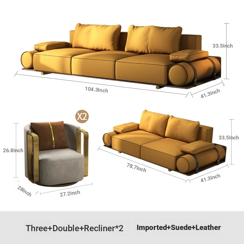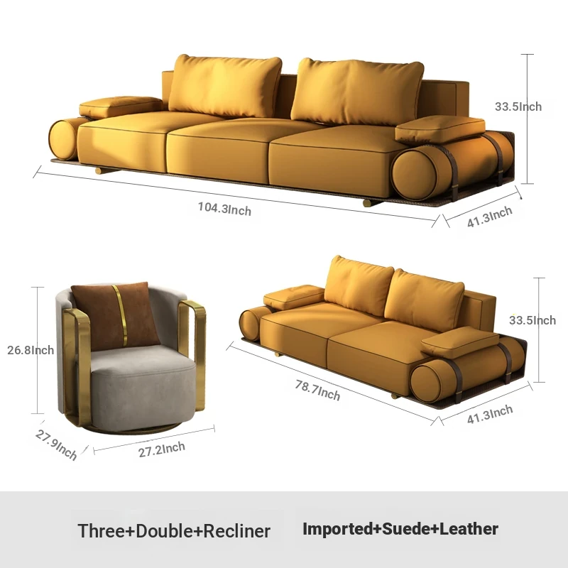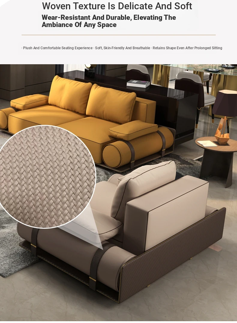 Italian Luxury Genuine Leather Sofa - Velvet Touch, Minimalist Design, High-End Sophistication for Expansive Villas and Luxury Living Rooms - Complete Home Furniture Collection.
