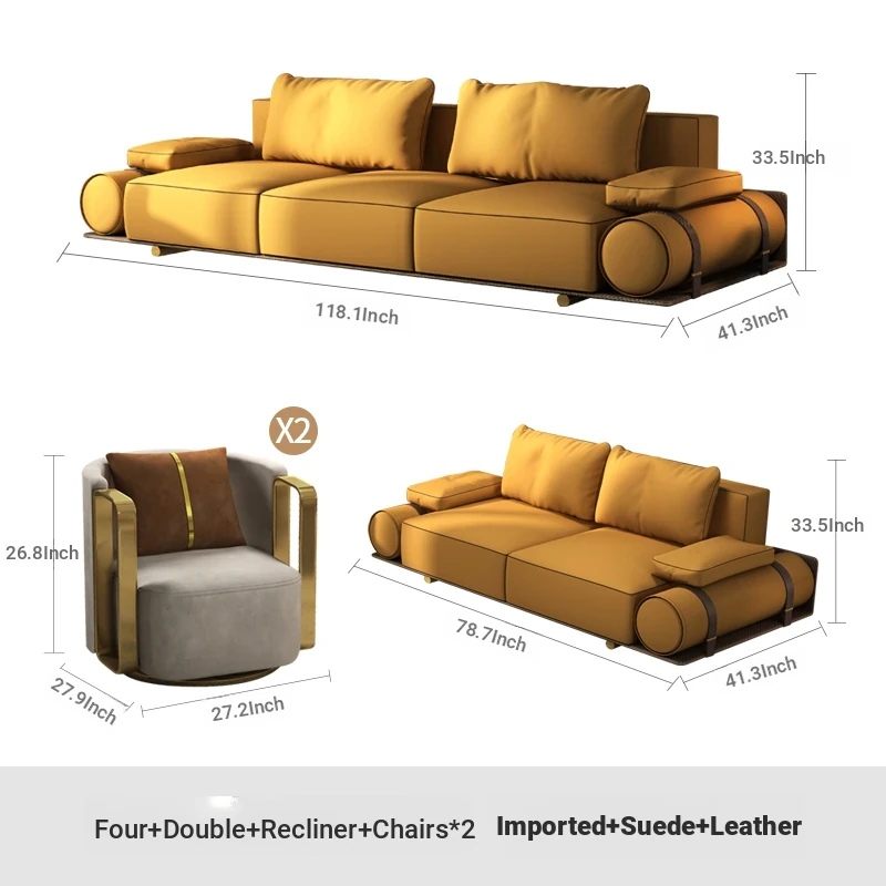 Four + double + leisure chair * 2 [Import sanding leather]]