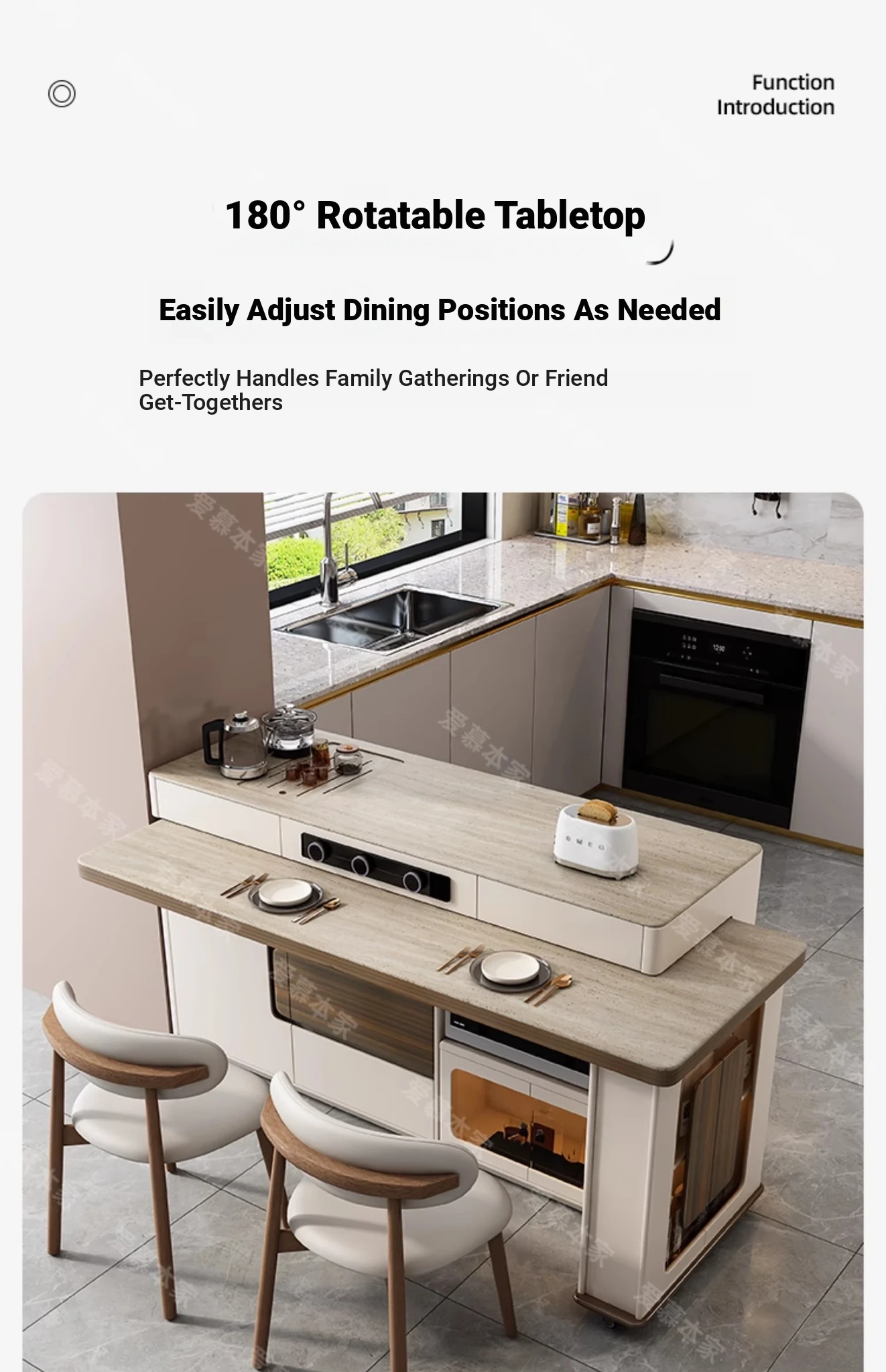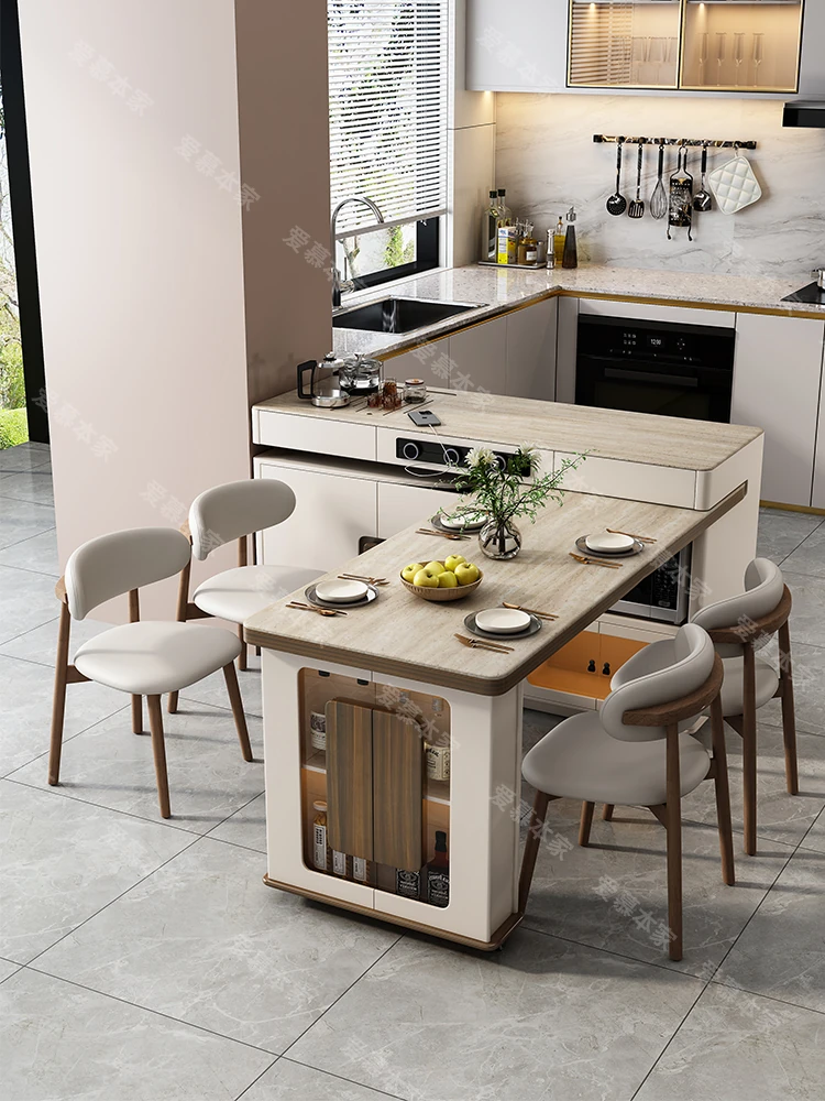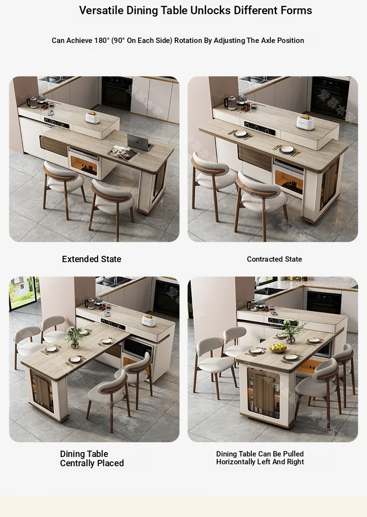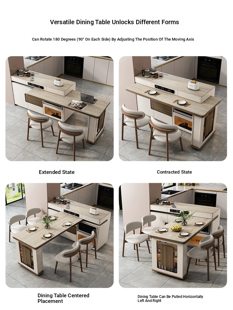 Modern Minimalist Multi-Functional Rotating Island Dining Table - Elegant Stone Design for Home and Kitchen, Perfect for Entertaining and Dining Experience