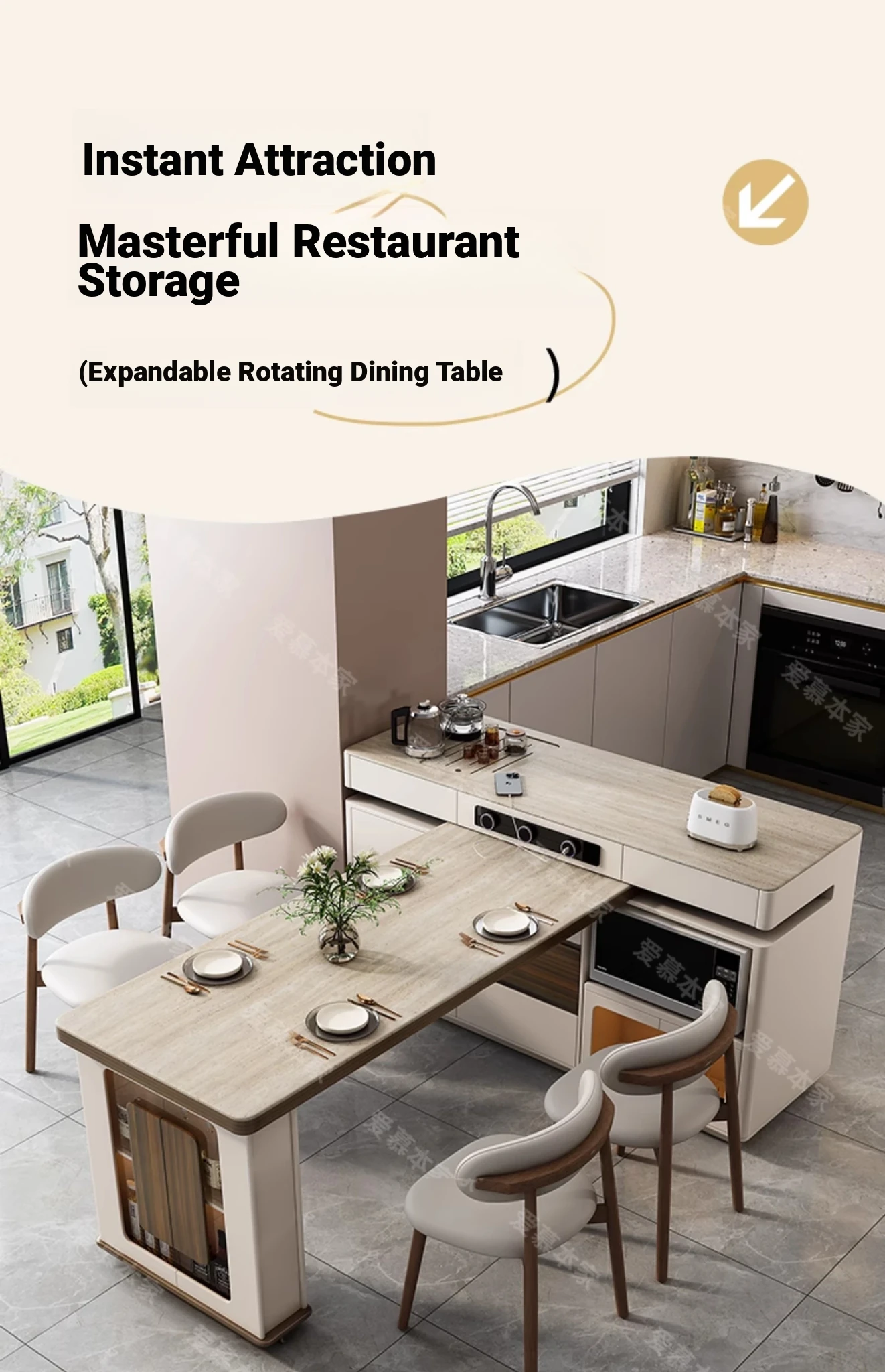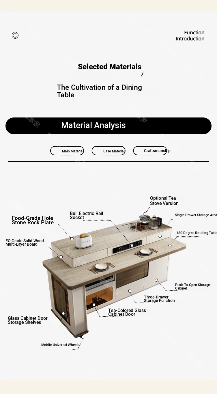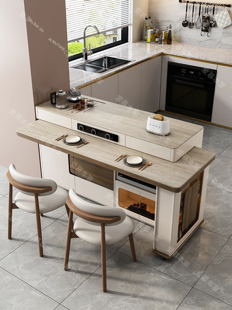 Modern Minimalist Multi-Functional Rotating Island Dining Table - Elegant Stone Design for Home and Kitchen, Perfect for Entertaining and Dining Experience