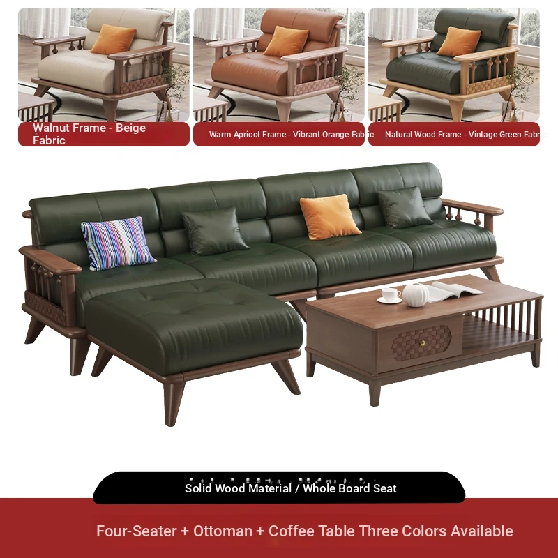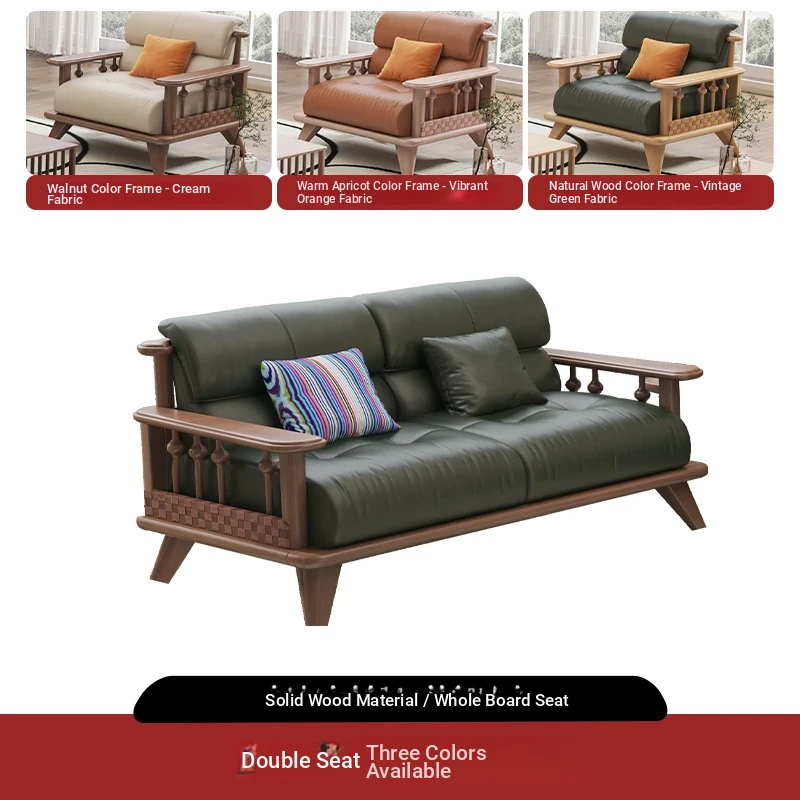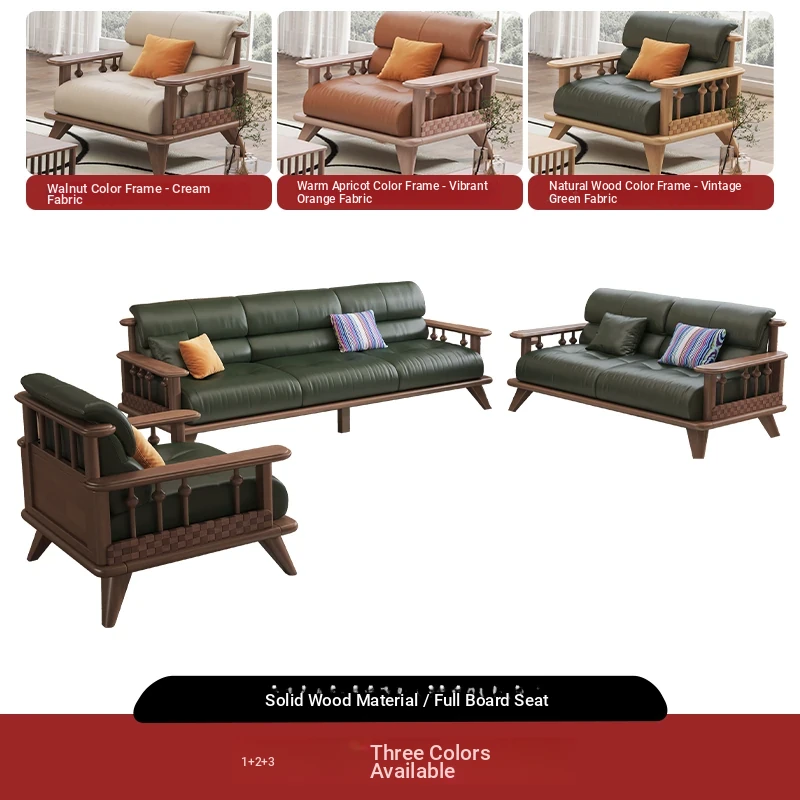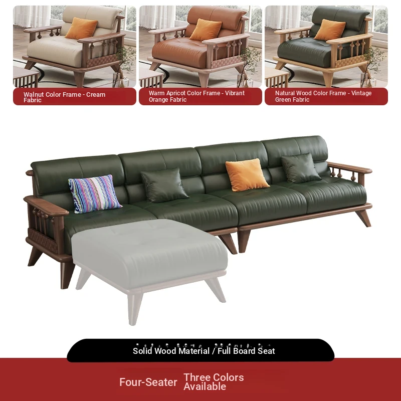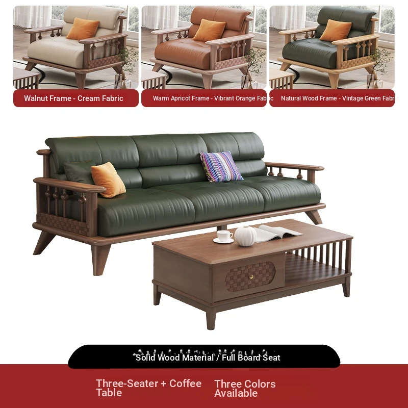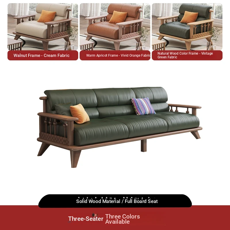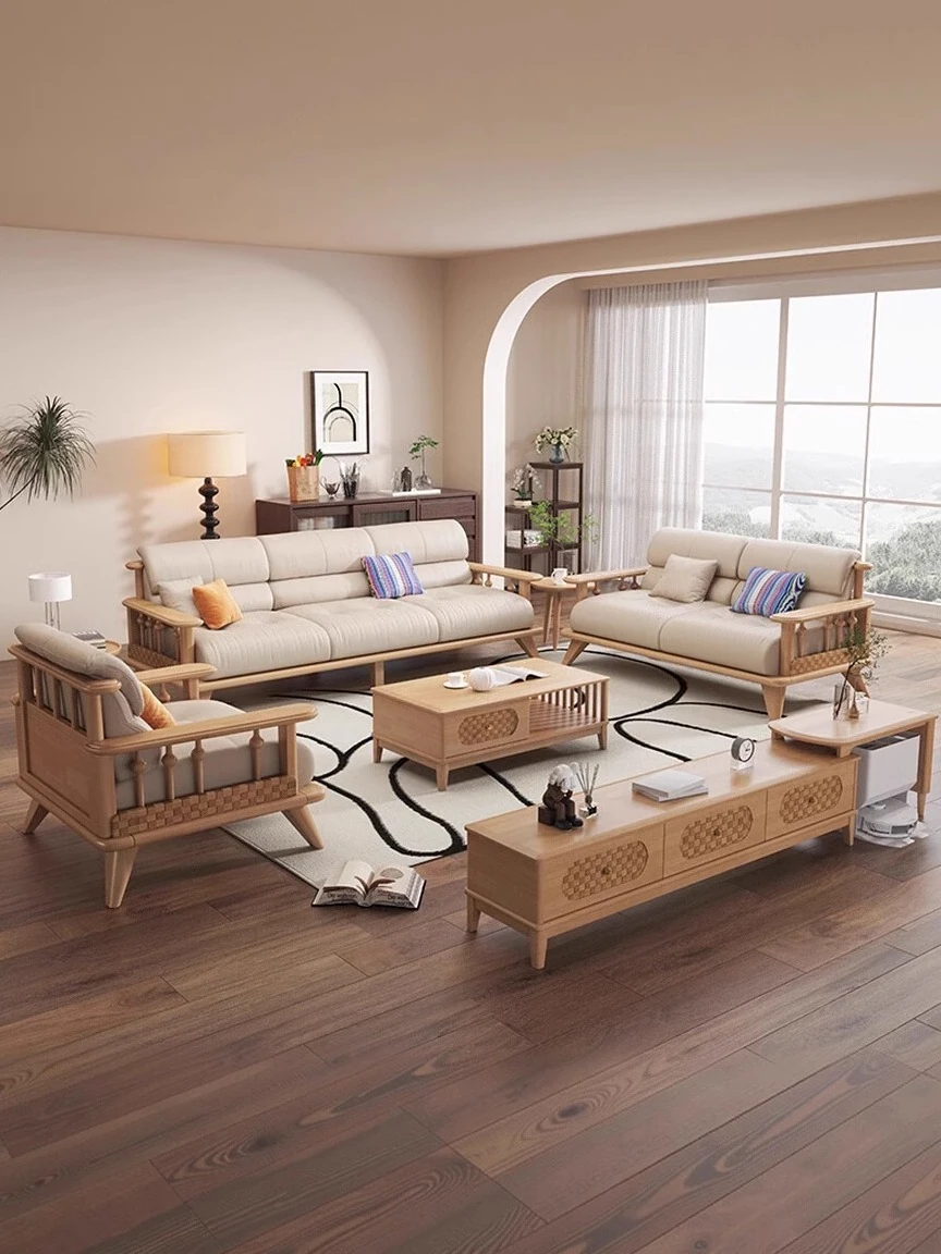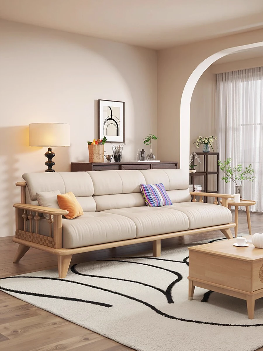 Modern Minimalist Solid Wood Sofa Set for Small Living Rooms - Straight Three to Four-Seater Scandinavian Design in Natural Wood Finish