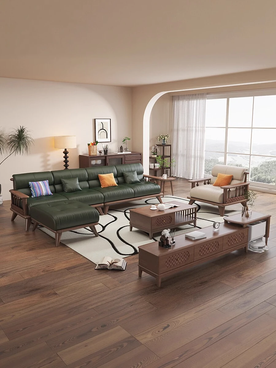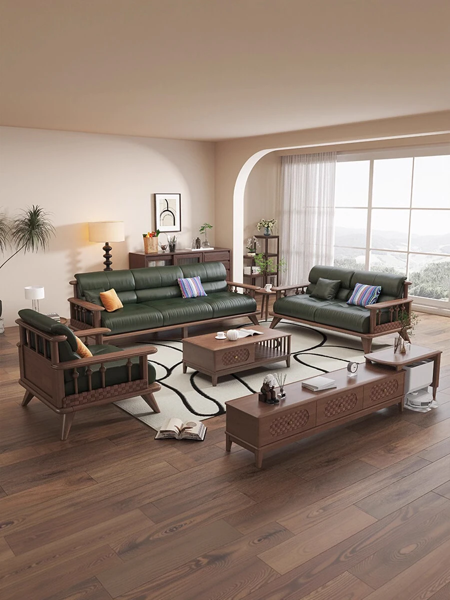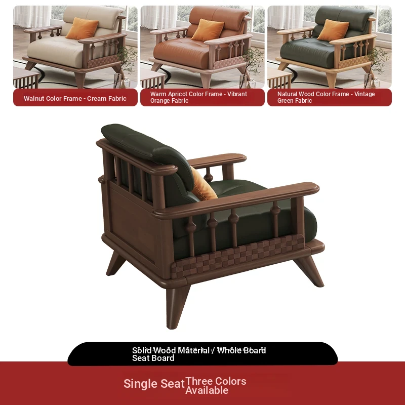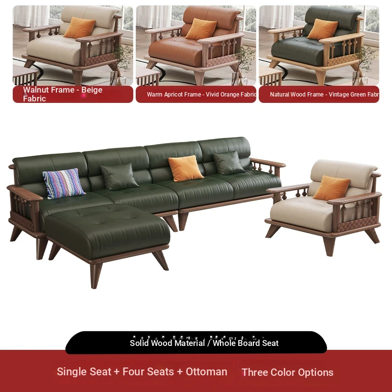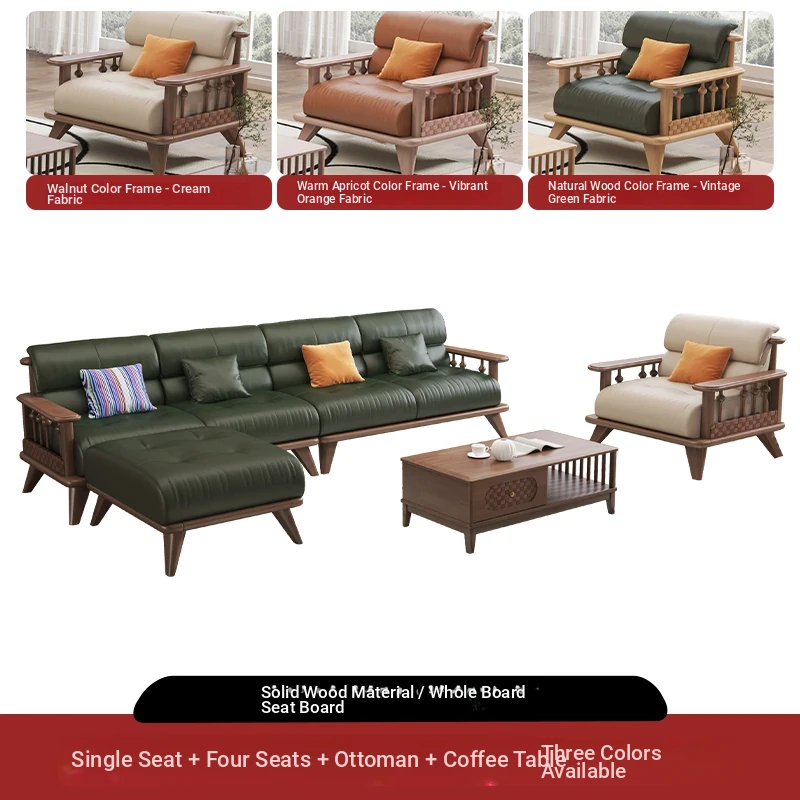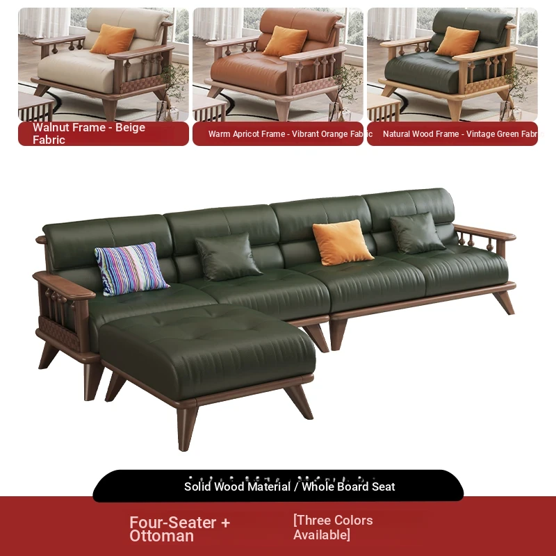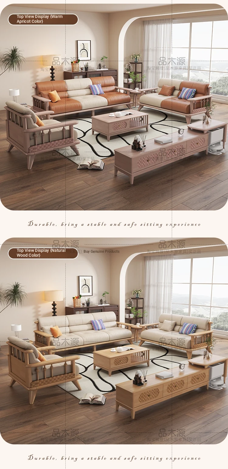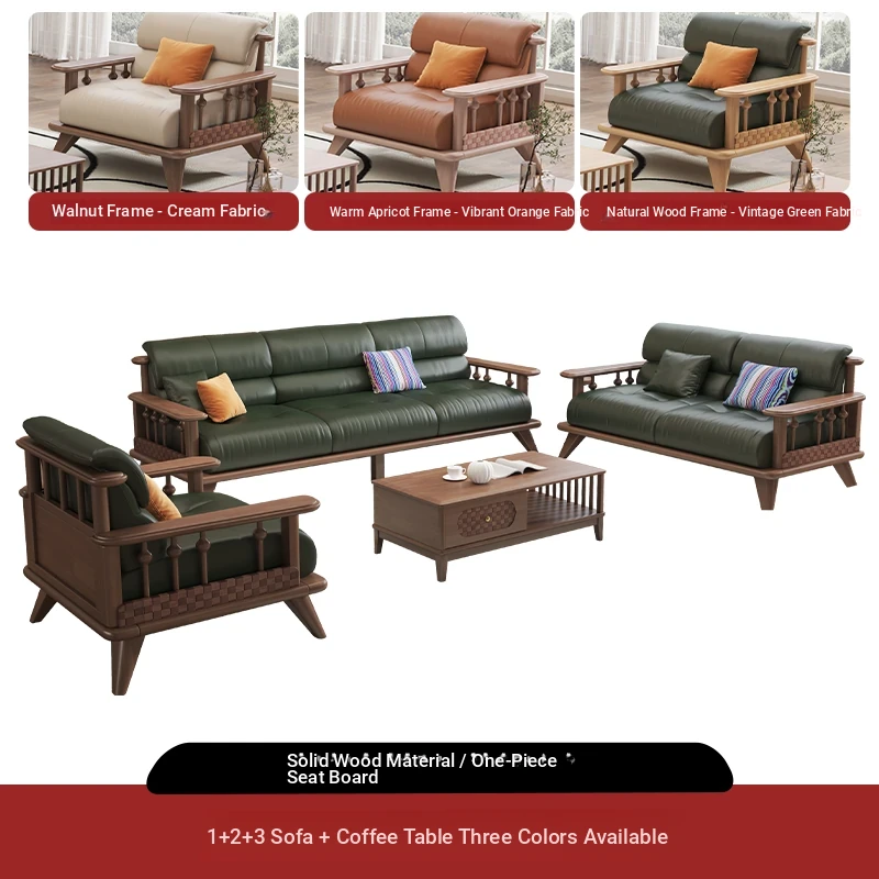 Modern Minimalist Solid Wood Sofa Set for Small Living Rooms - Straight Three to Four-Seater Scandinavian Design in Natural Wood Finish