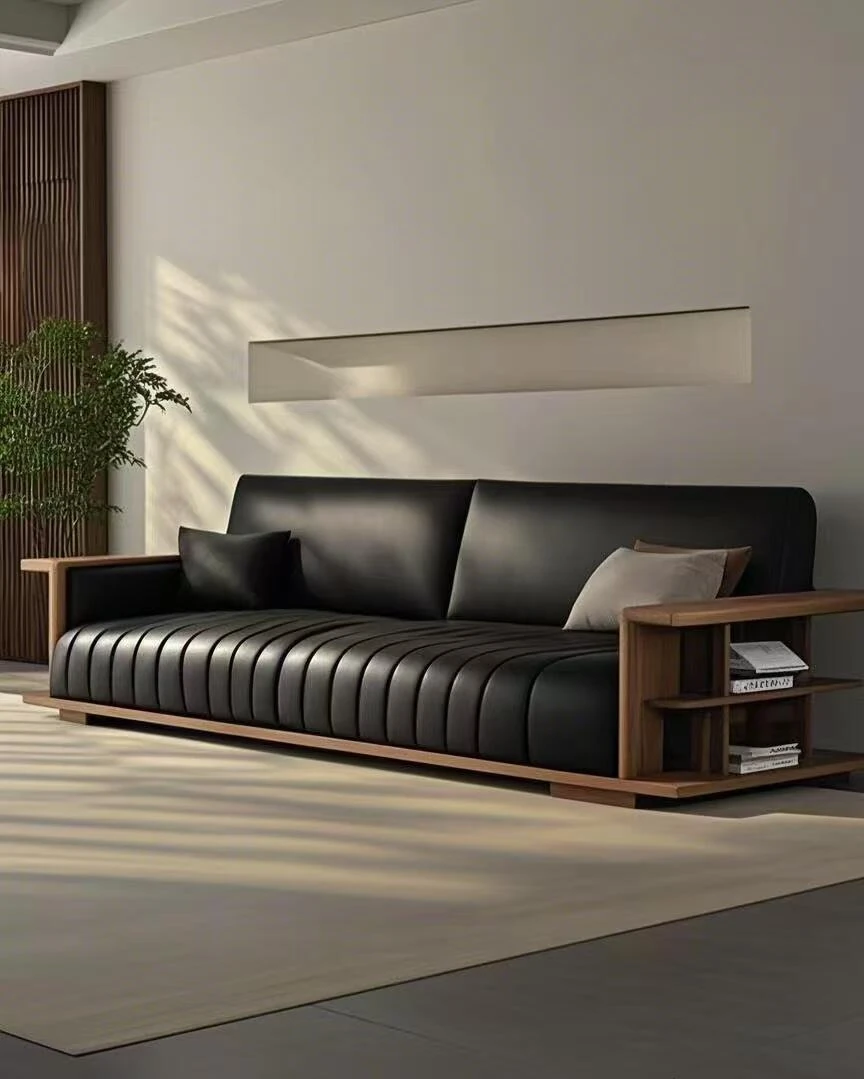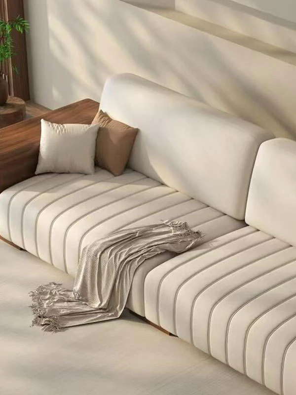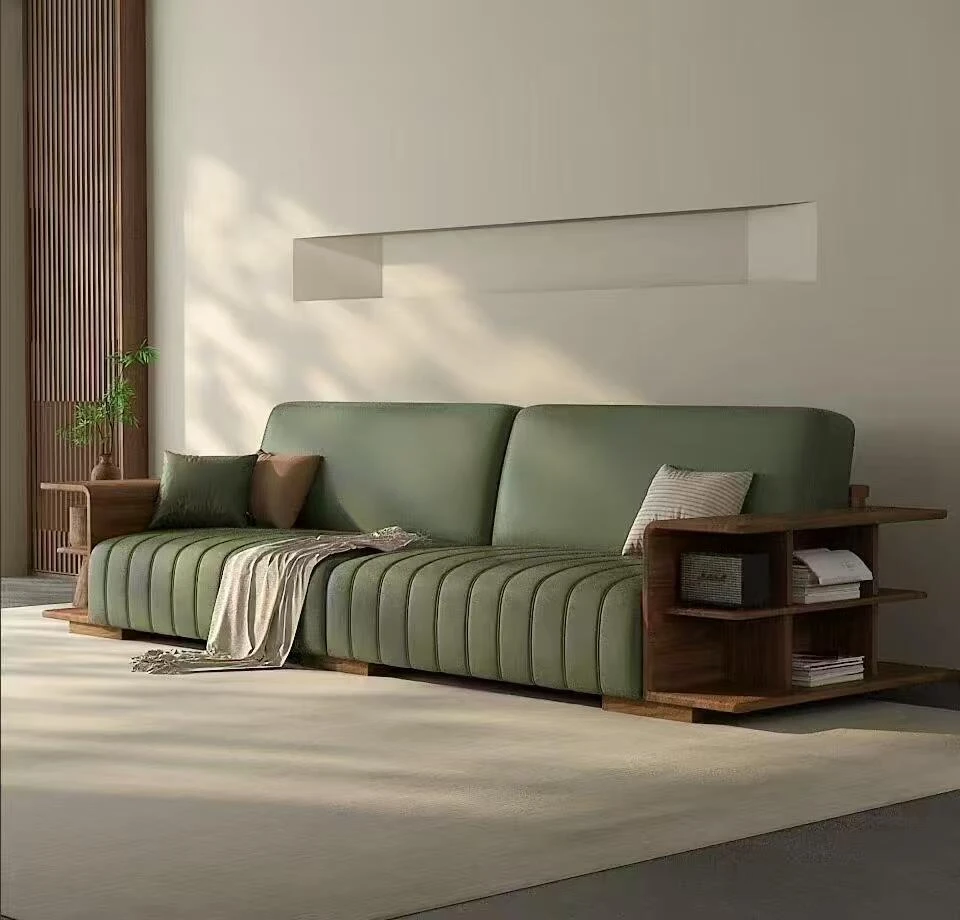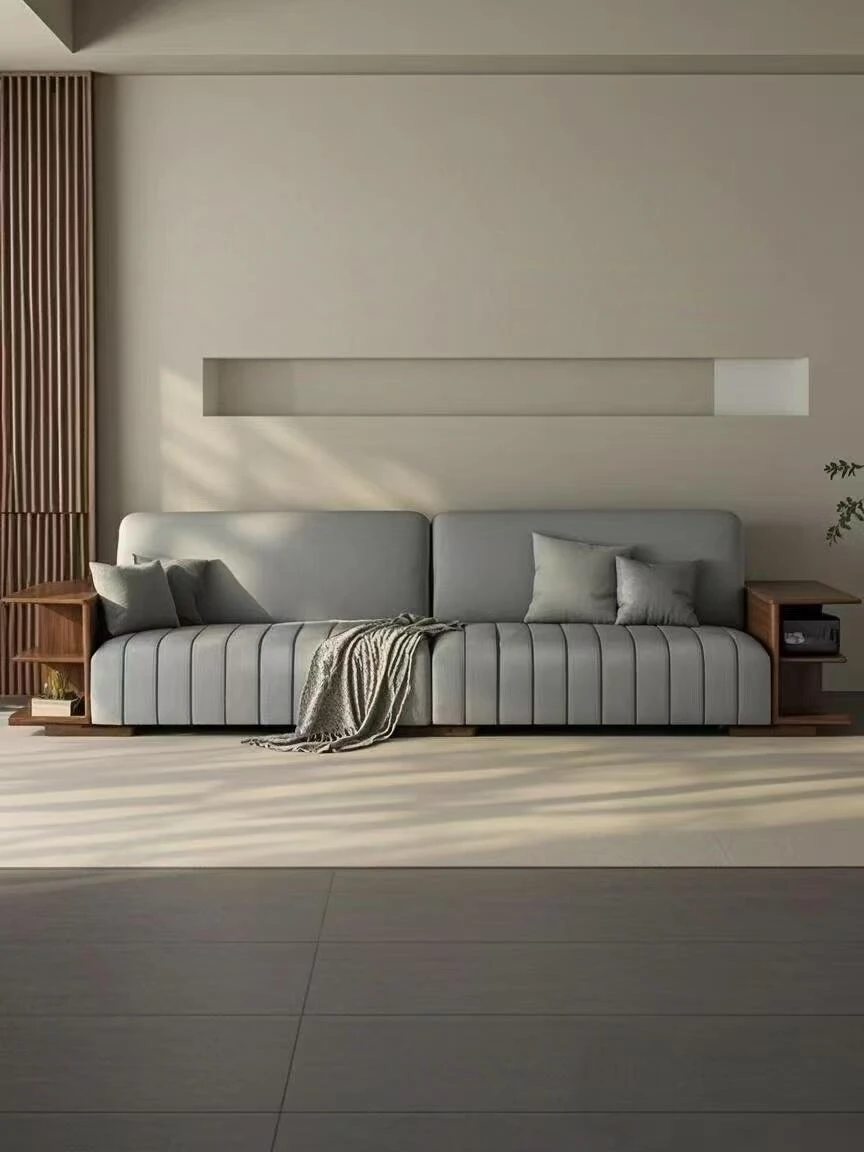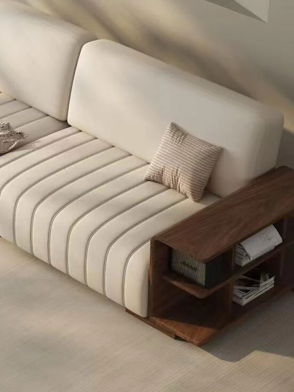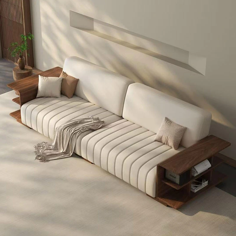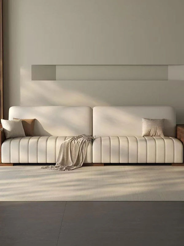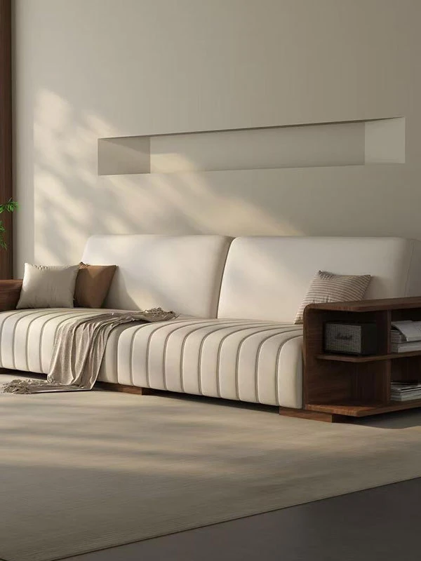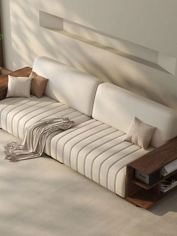 Modern Minimalist Solid Wood Sofa with Song-style Aesthetics - Elegant and Comfortable Upholstered and Leather Living Room Couch for Home Use