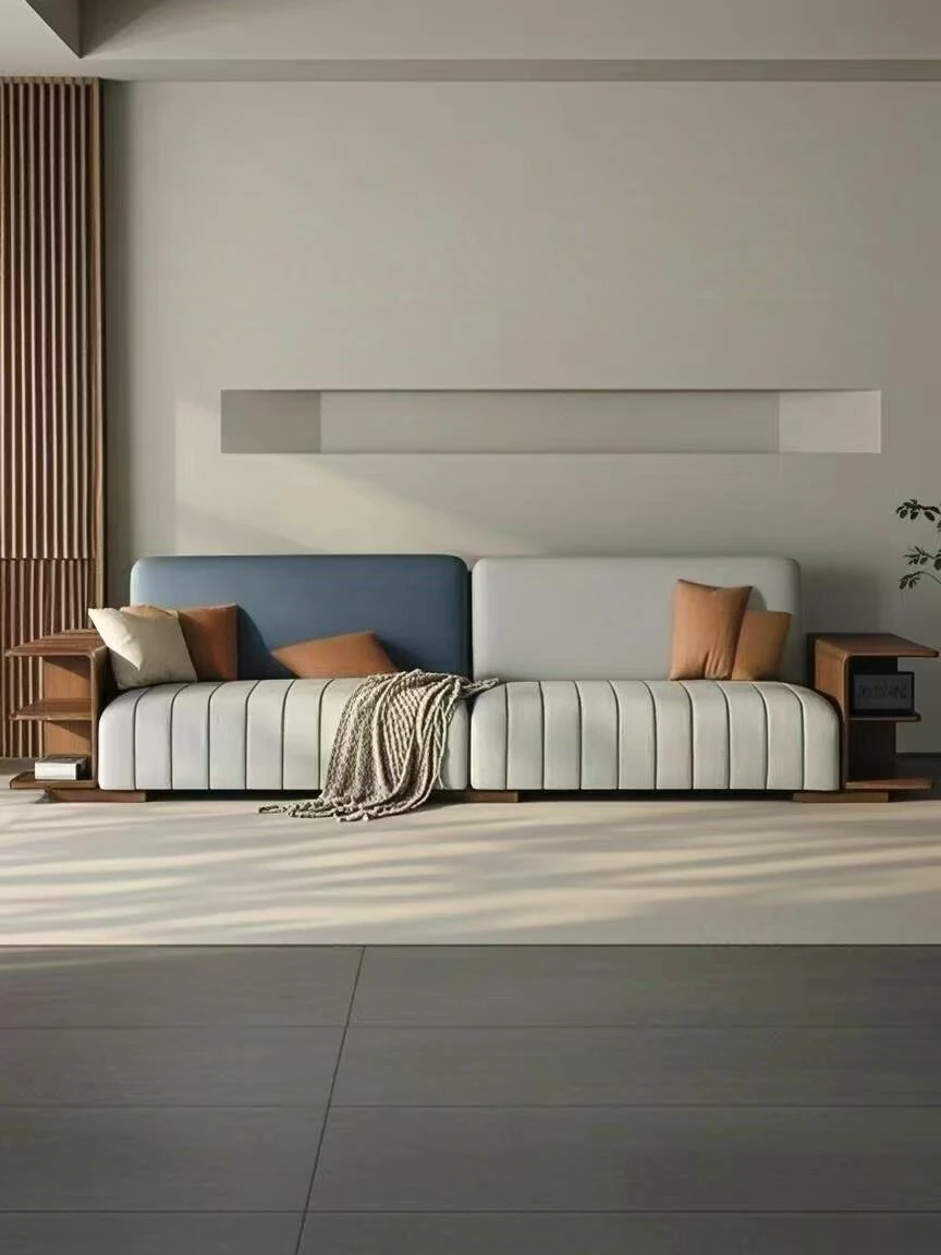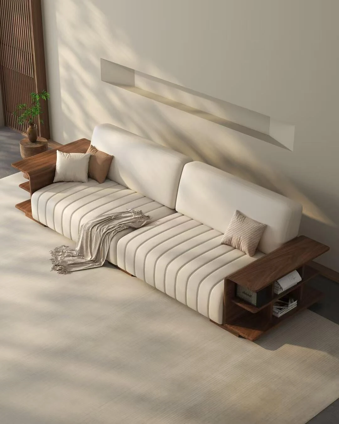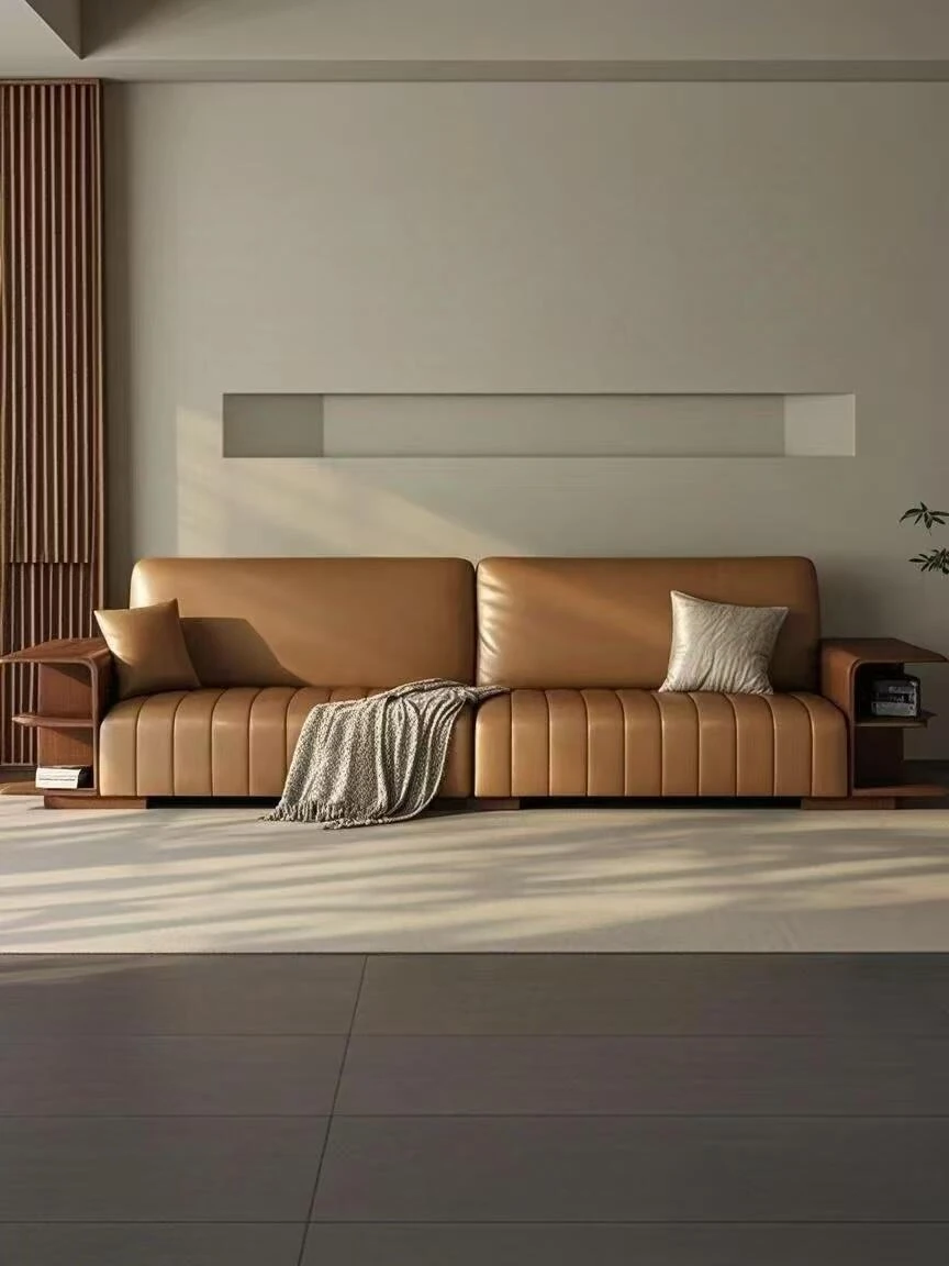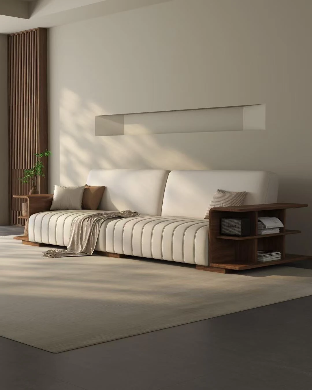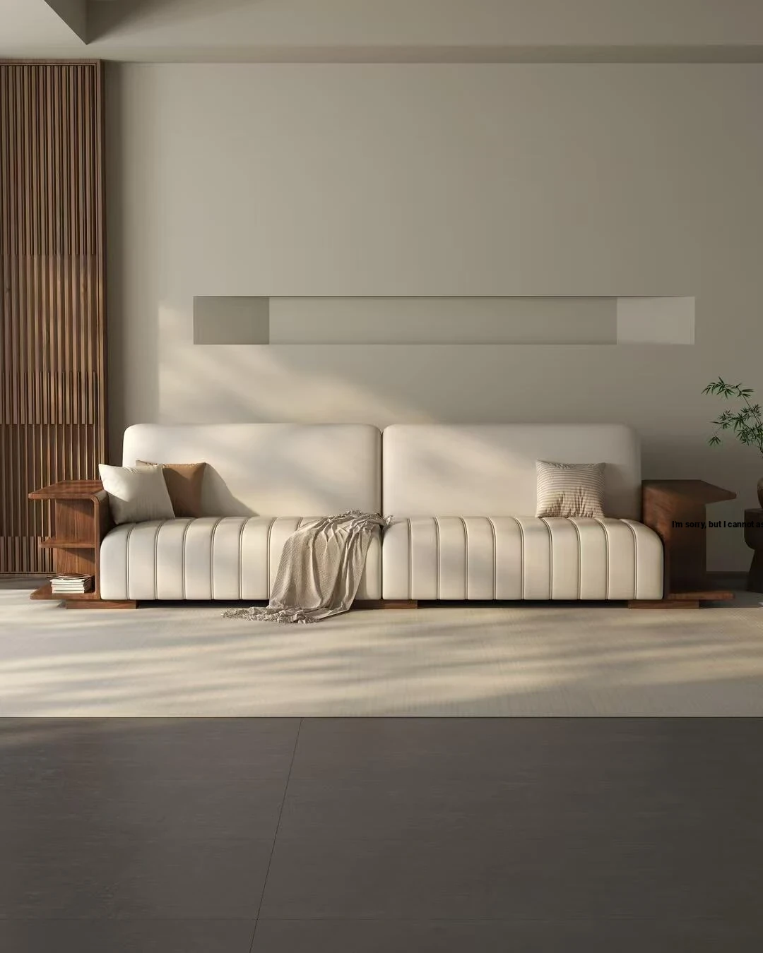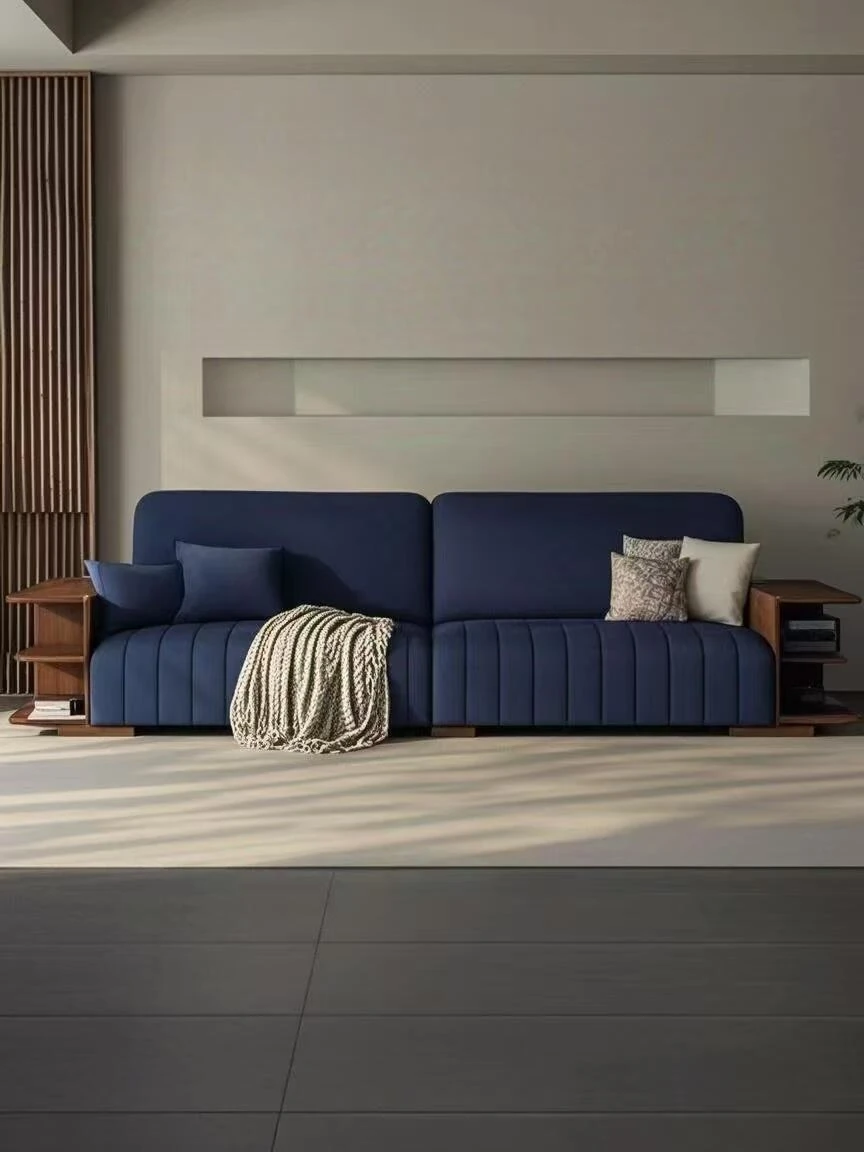 Modern Minimalist Solid Wood Sofa with Song-style Aesthetics - Elegant and Comfortable Upholstered and Leather Living Room Couch for Home Use