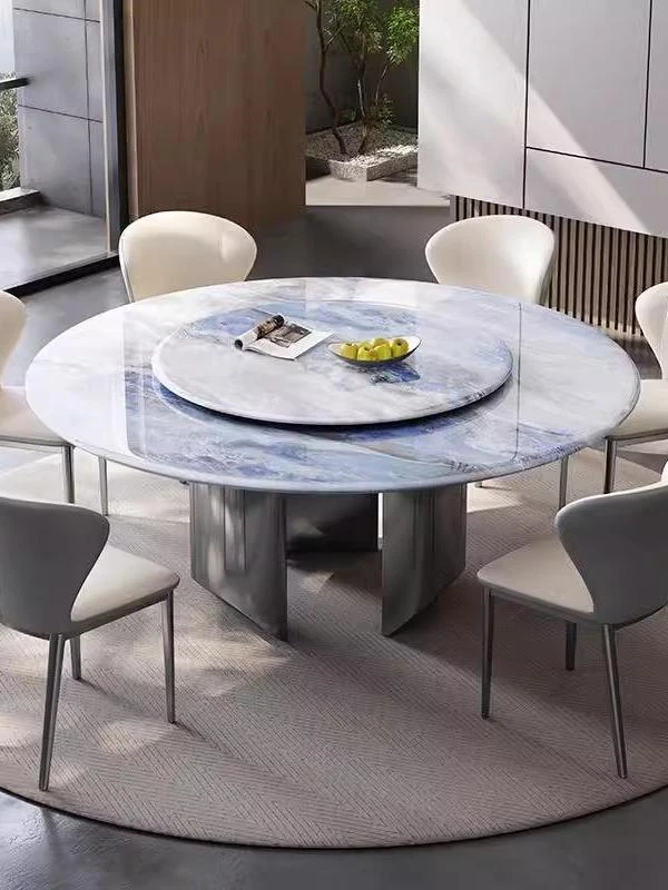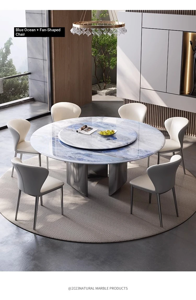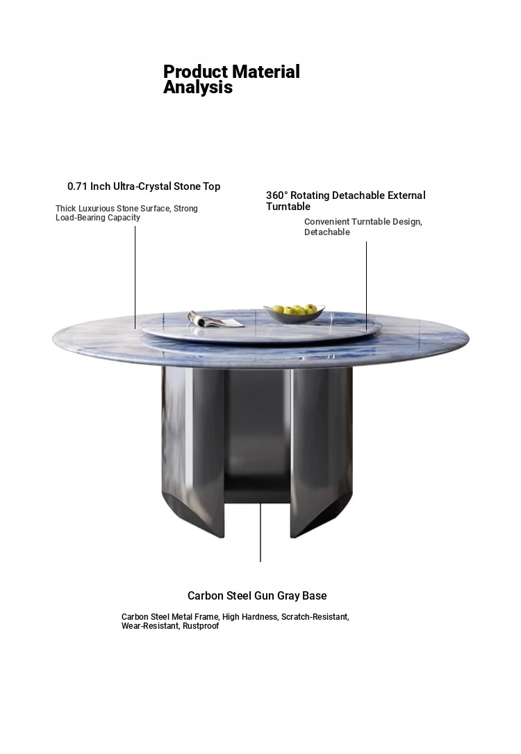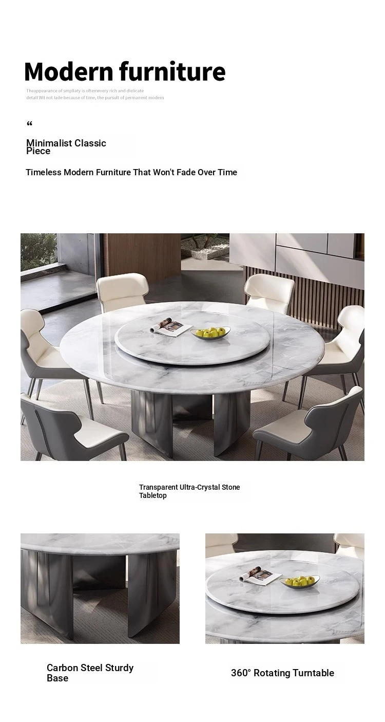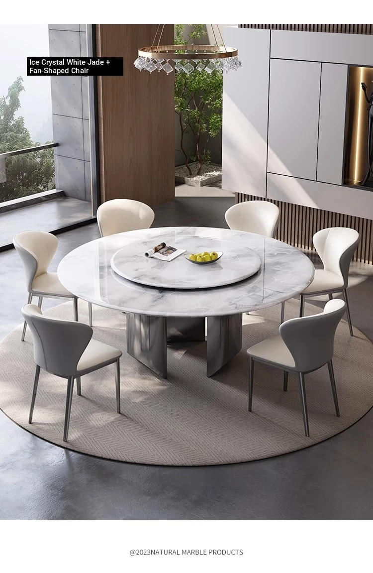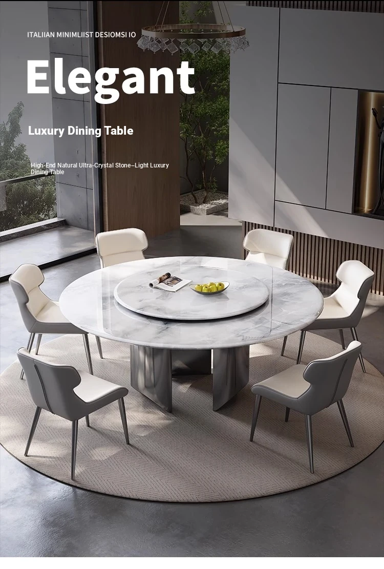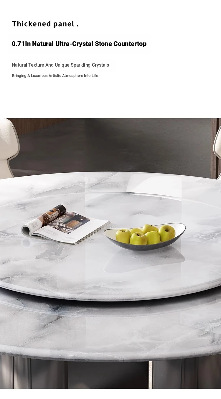 New Luxury Ultra-Crystal Stone Dining Table and Chair Set - 1.8m Round Table with Natural Micro-Crystal Marble for Home Use - Elegant and Durable Design for Stylish Dining Experience