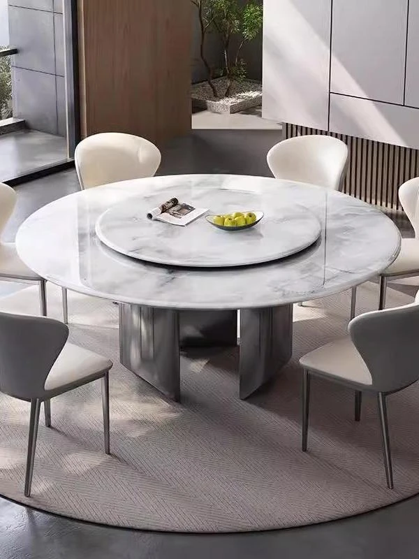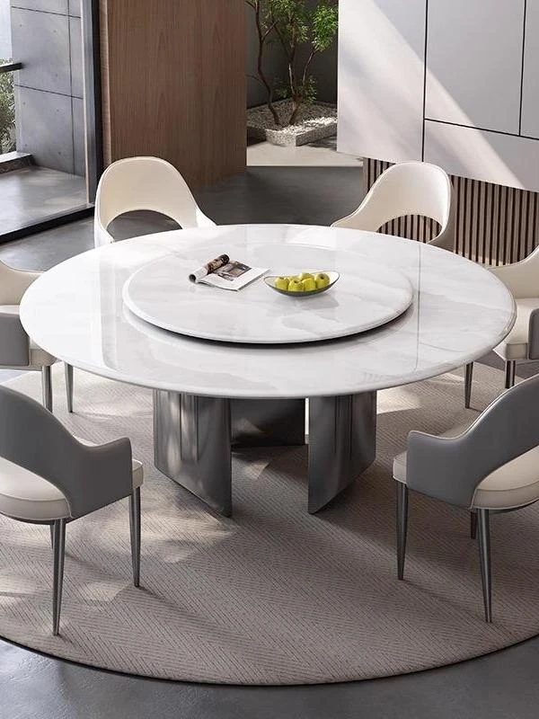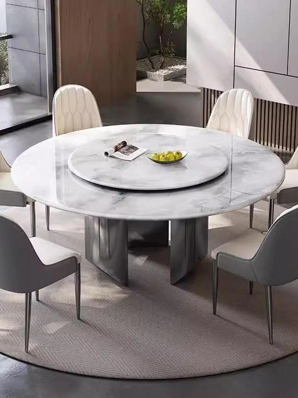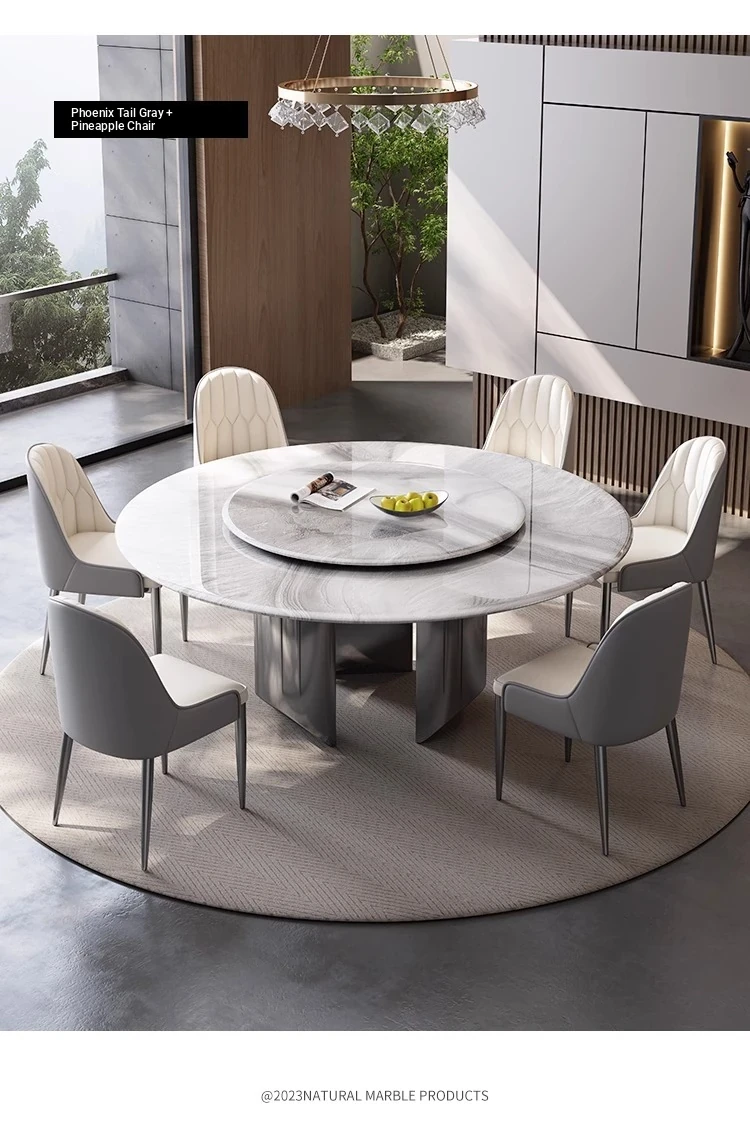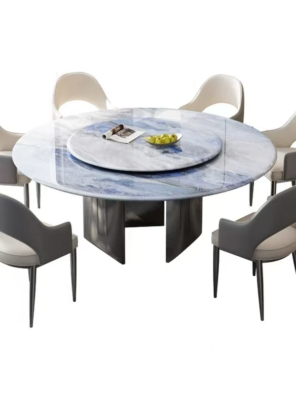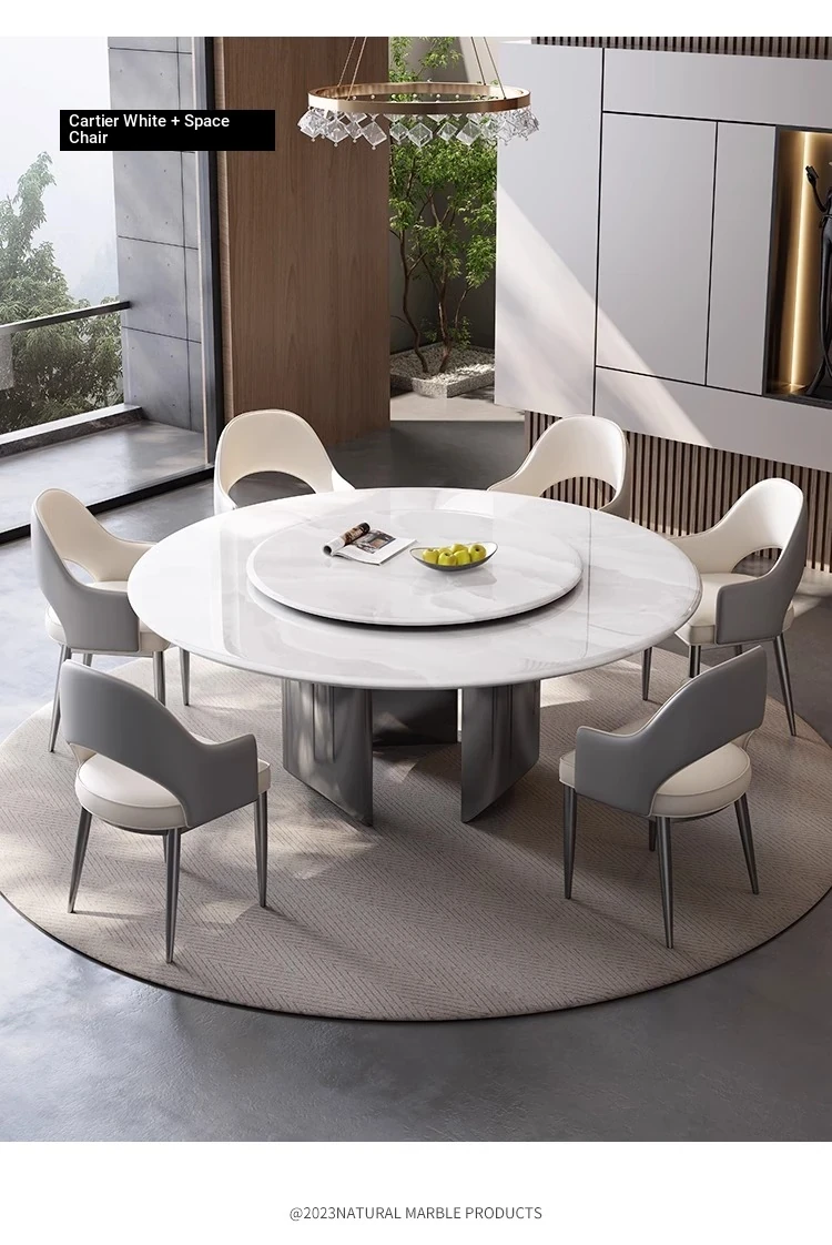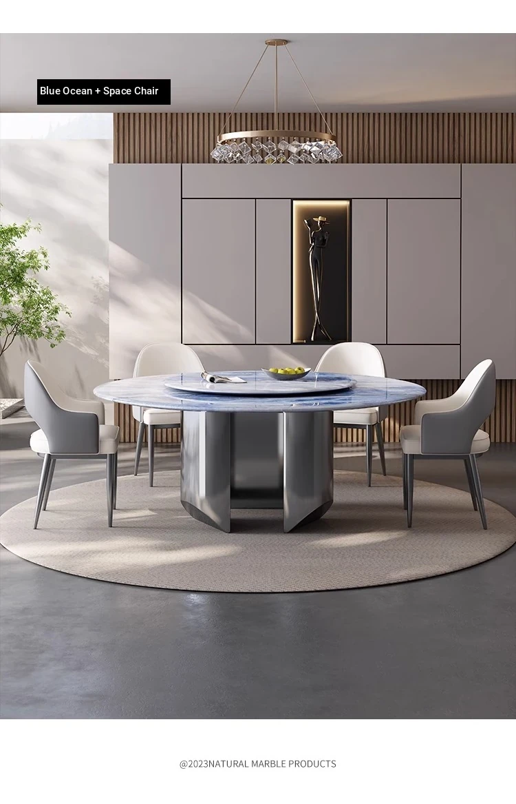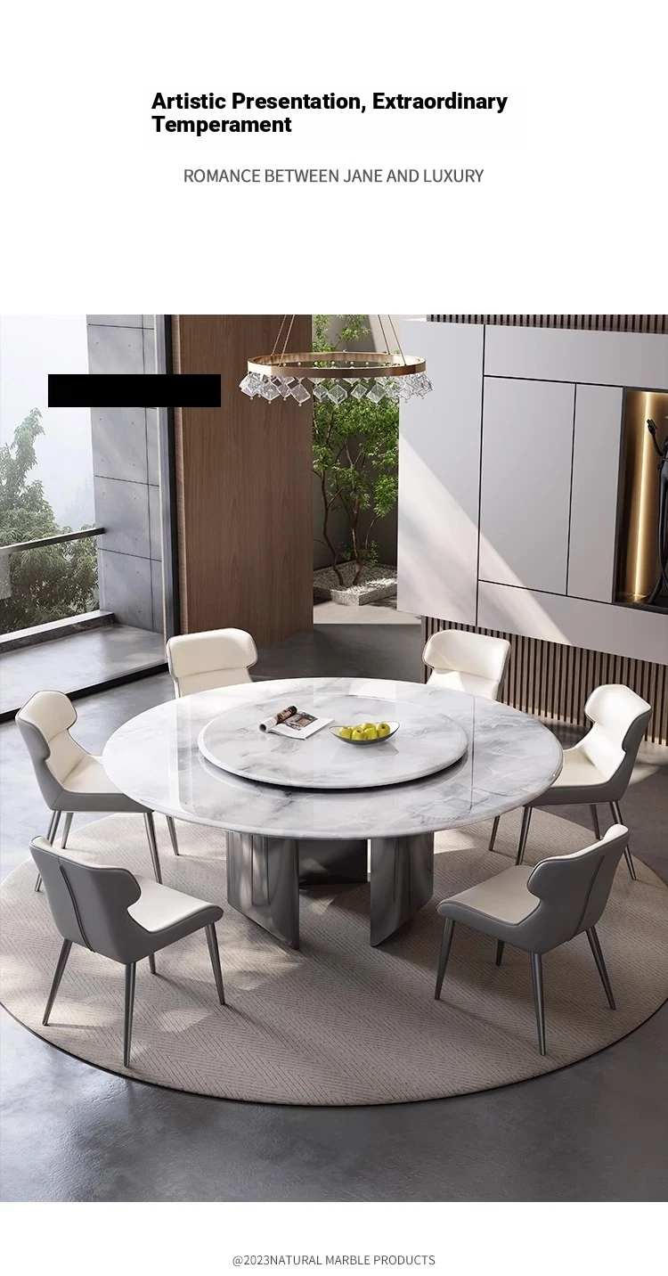 New Luxury Ultra-Crystal Stone Dining Table and Chair Set - 1.8m Round Table with Natural Micro-Crystal Marble for Home Use - Elegant and Durable Design for Stylish Dining Experience