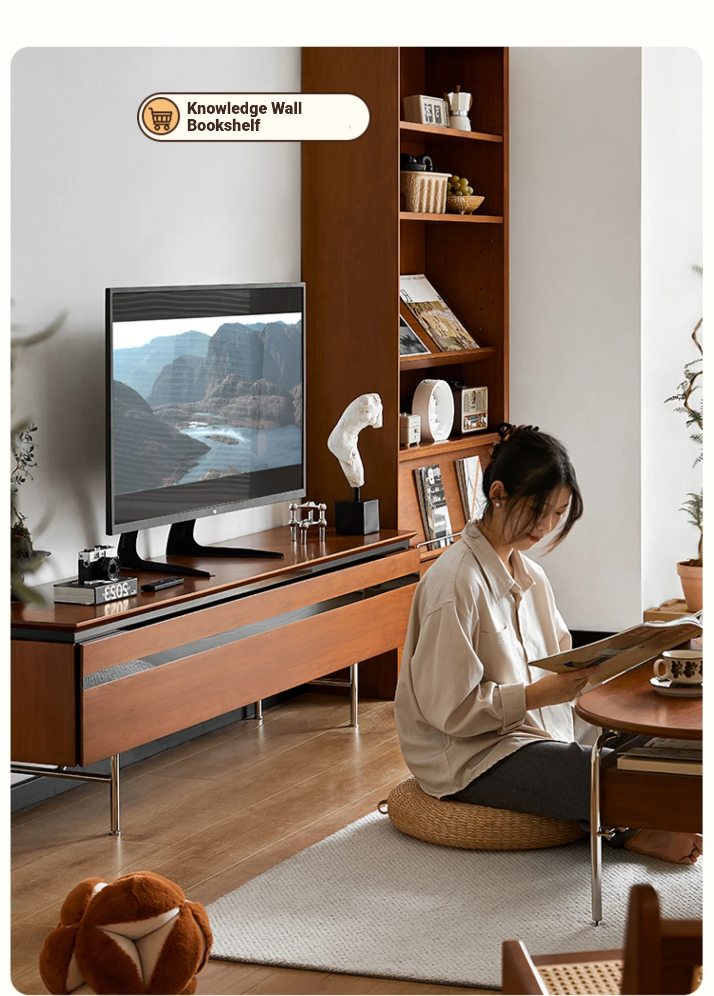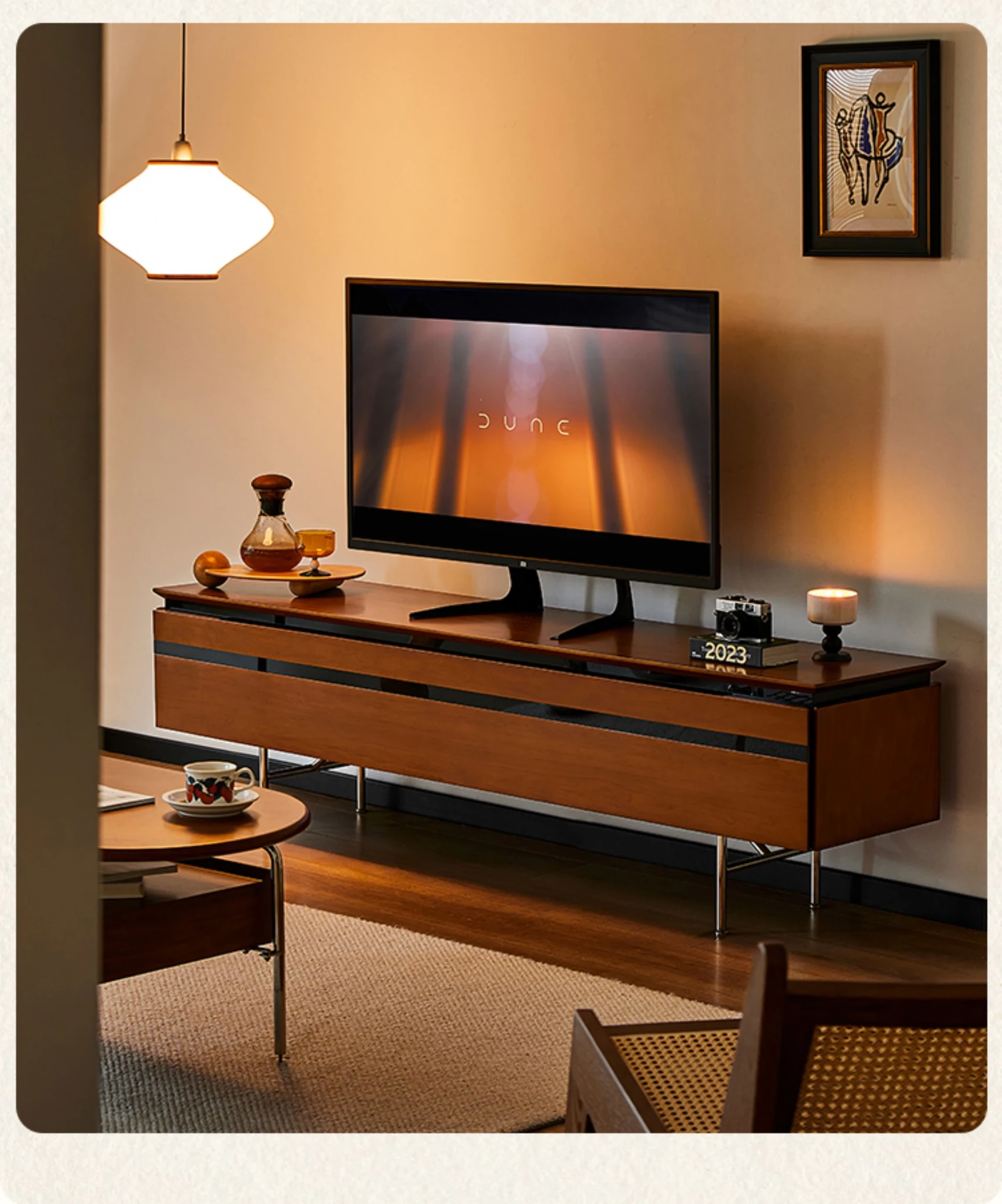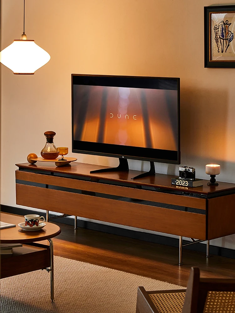 Retro Solid Wood TV Stand - Chestnut Park Mid-Century Modern Side Cabinet for Small Living Rooms - Bauhaus Inspired Design, Perfect for Cozy Spaces
