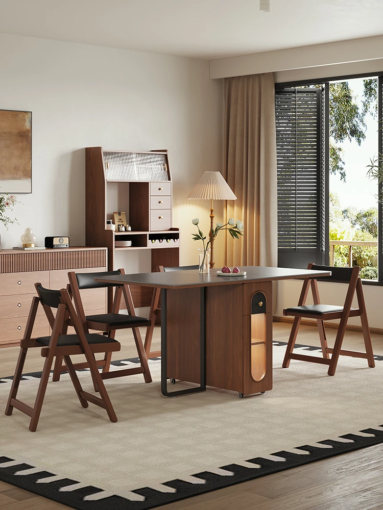 2025 New Folding Dining Table for Small Spaces - Versatile 3-in-1 Side Cabinet and Dining Table with Vintage Rock Plate and Extendable Solid Wood Design